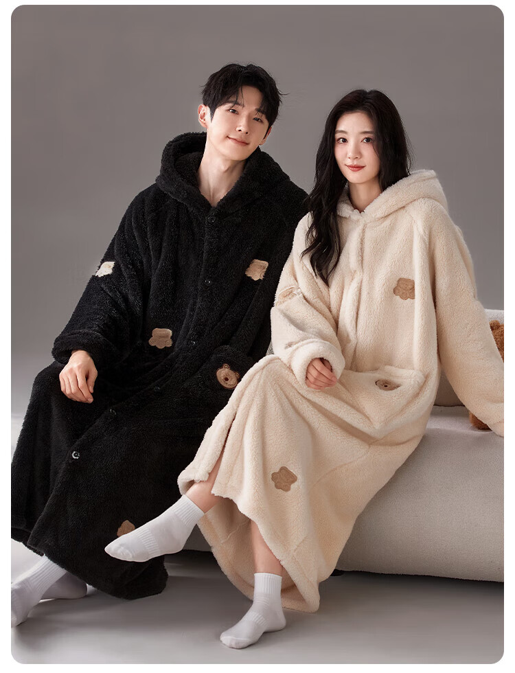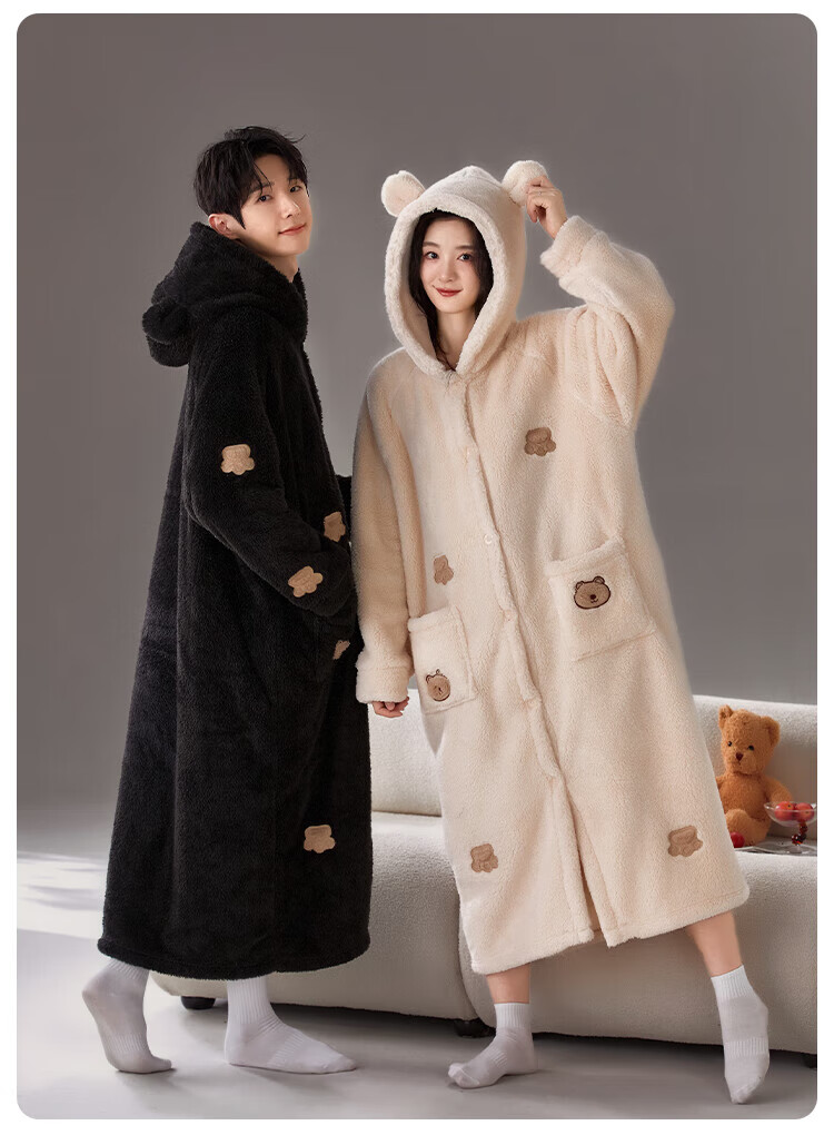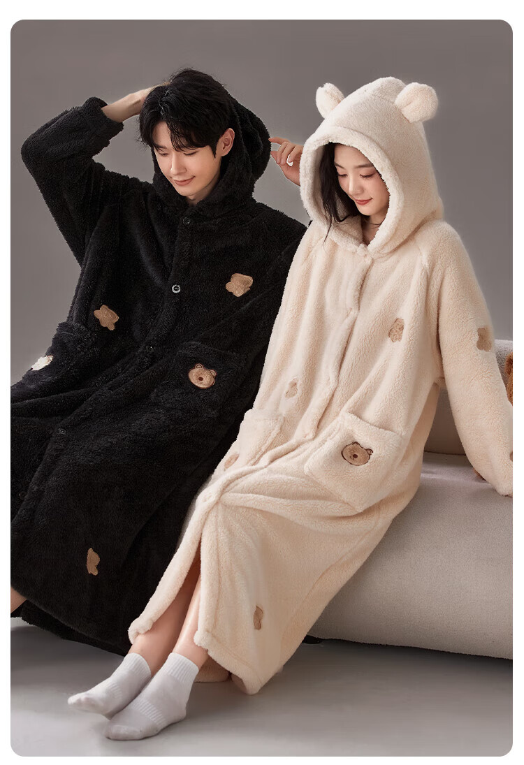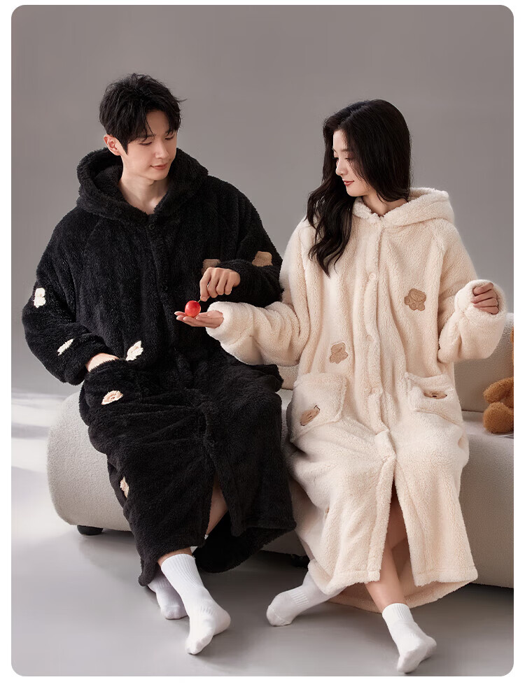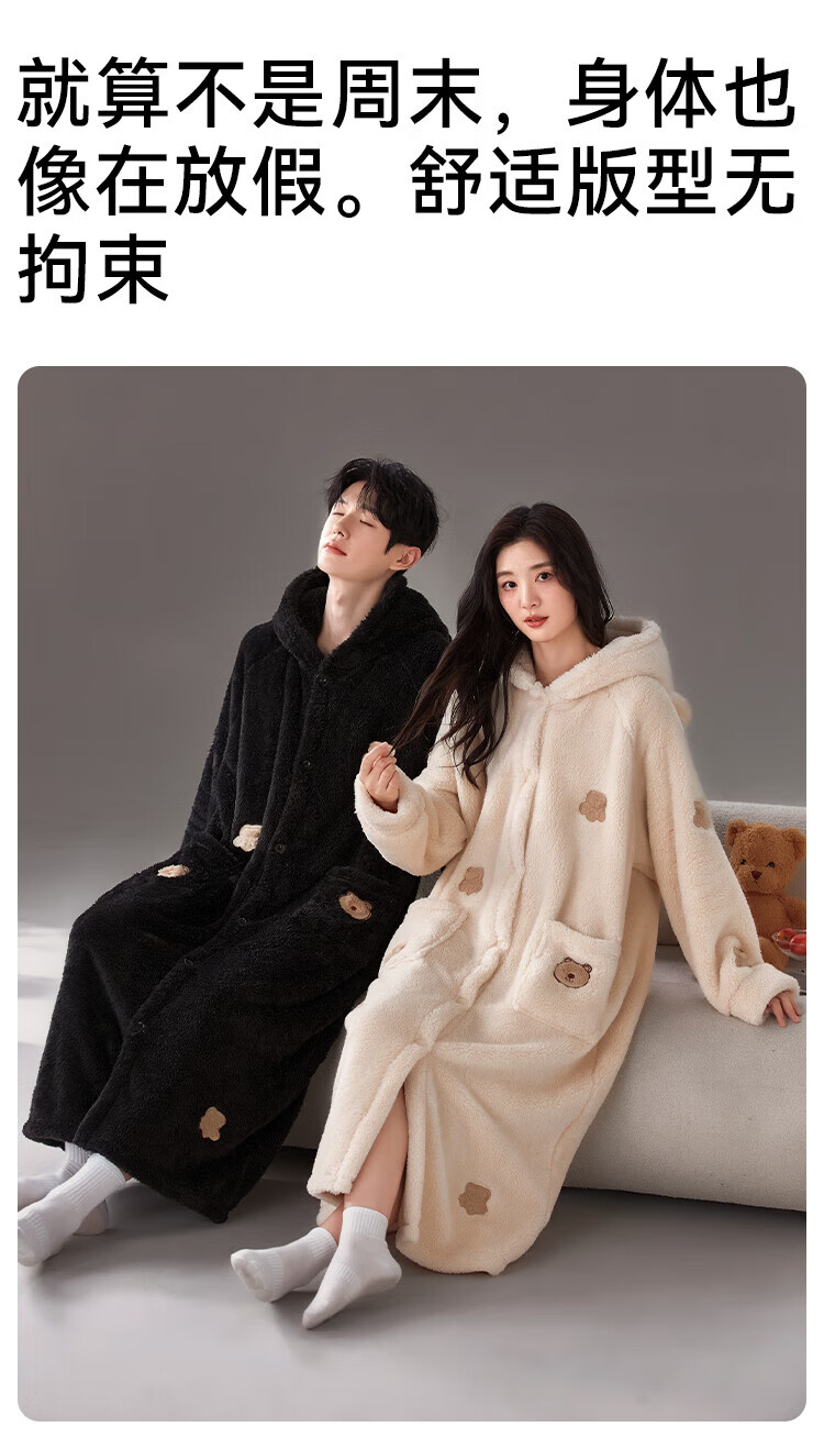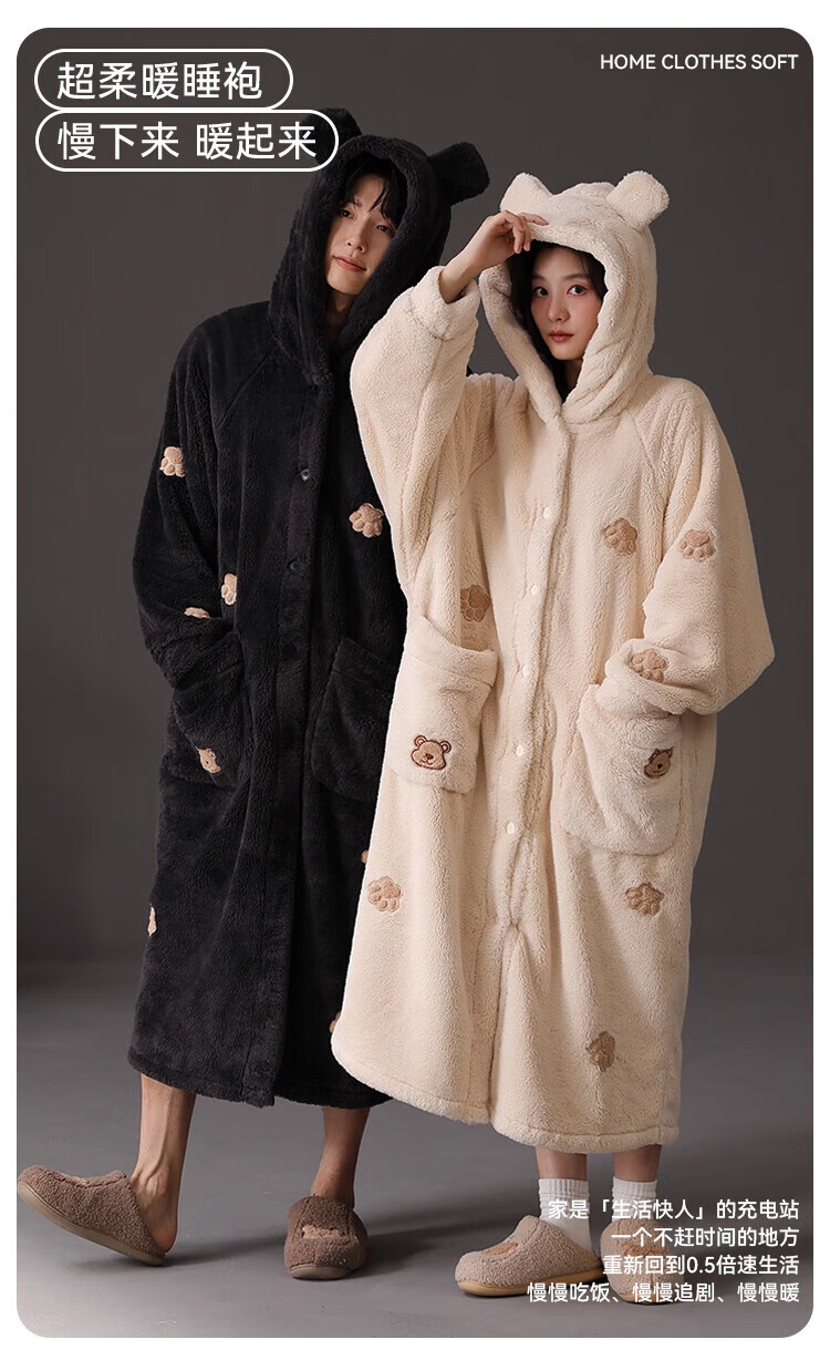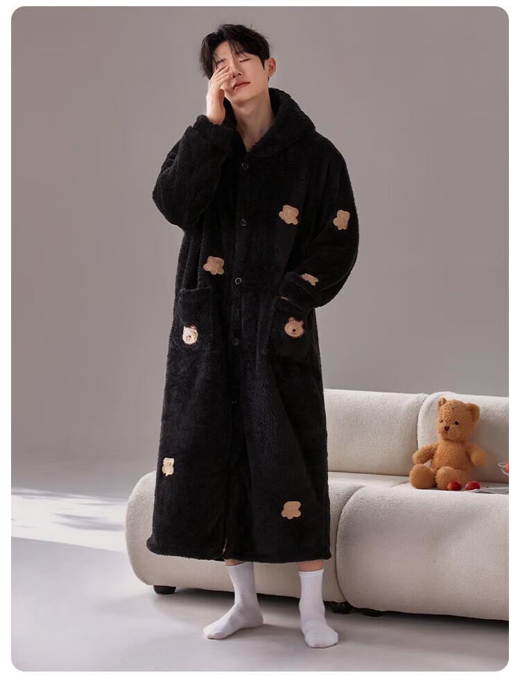 MiiOW pajamas, men's winter thickened coral velvet hooded home clothes, can be worn outside 25 new products 2XL