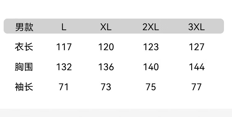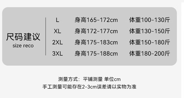 China (cm) 165 / 88-90 170 / 96-98 175 / 108-110 180 / 118-122 185 / 126-130