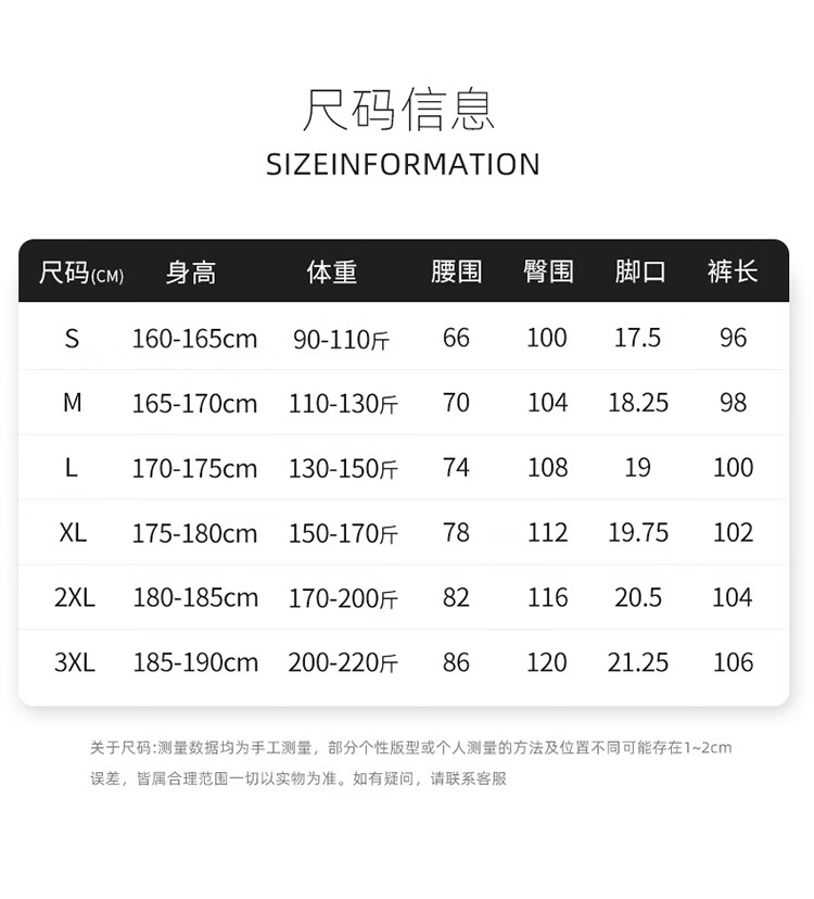 Outseam (cm) 99 cm 101.5 cm 104 cm 106.5 cm 109 cm