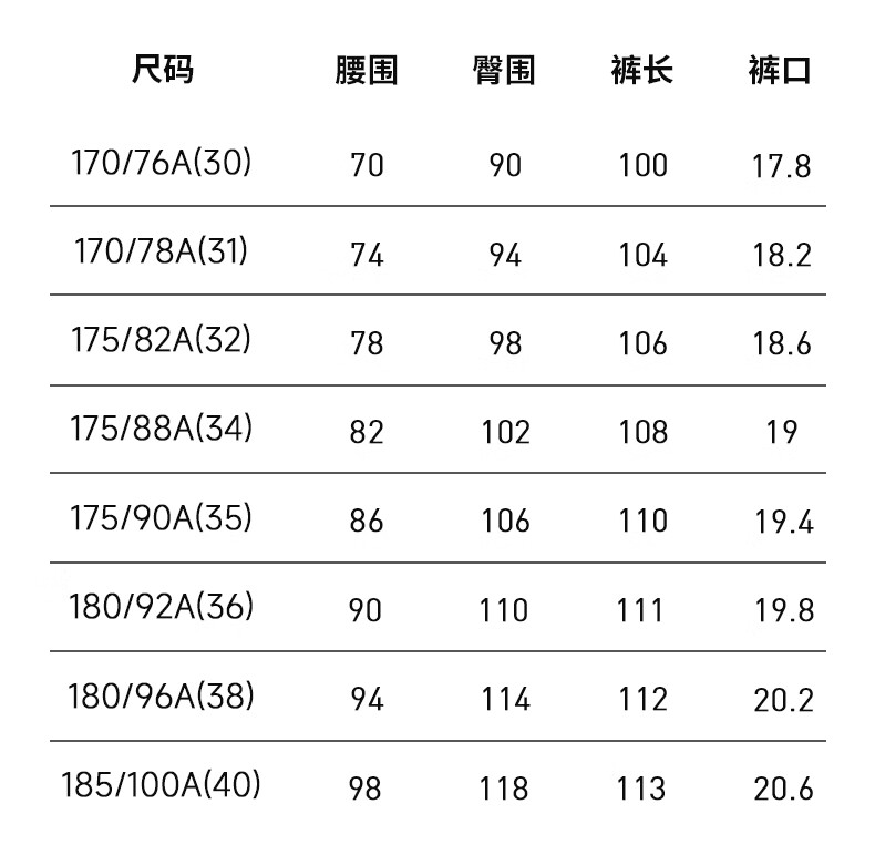 Outseam (cm) 99 cm 101.5 cm 104 cm 106.5 cm 109 cm