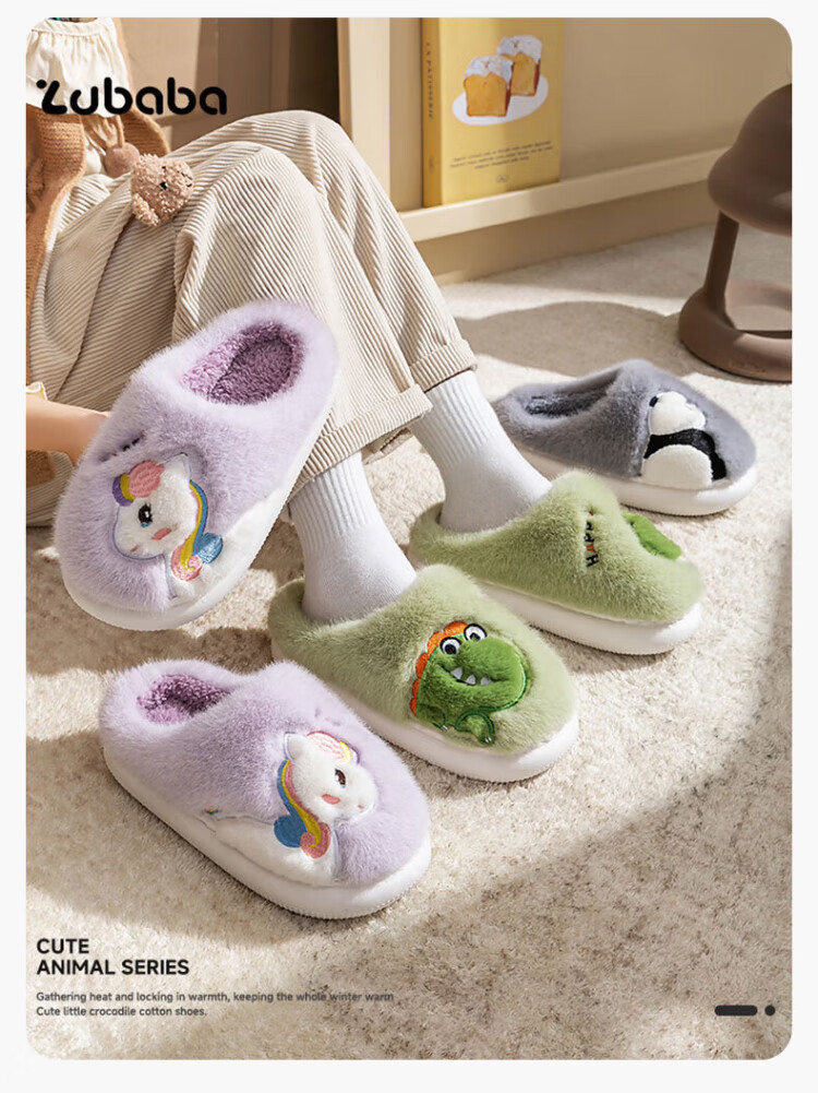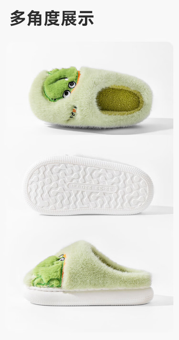Pig Daddy Children's Cotton Slippers Autumn and Winter Boys' Room Warm Anti-Slip Girls Middle and Large Children Cartoon Soft Soled Cotton Slippers Gray 23