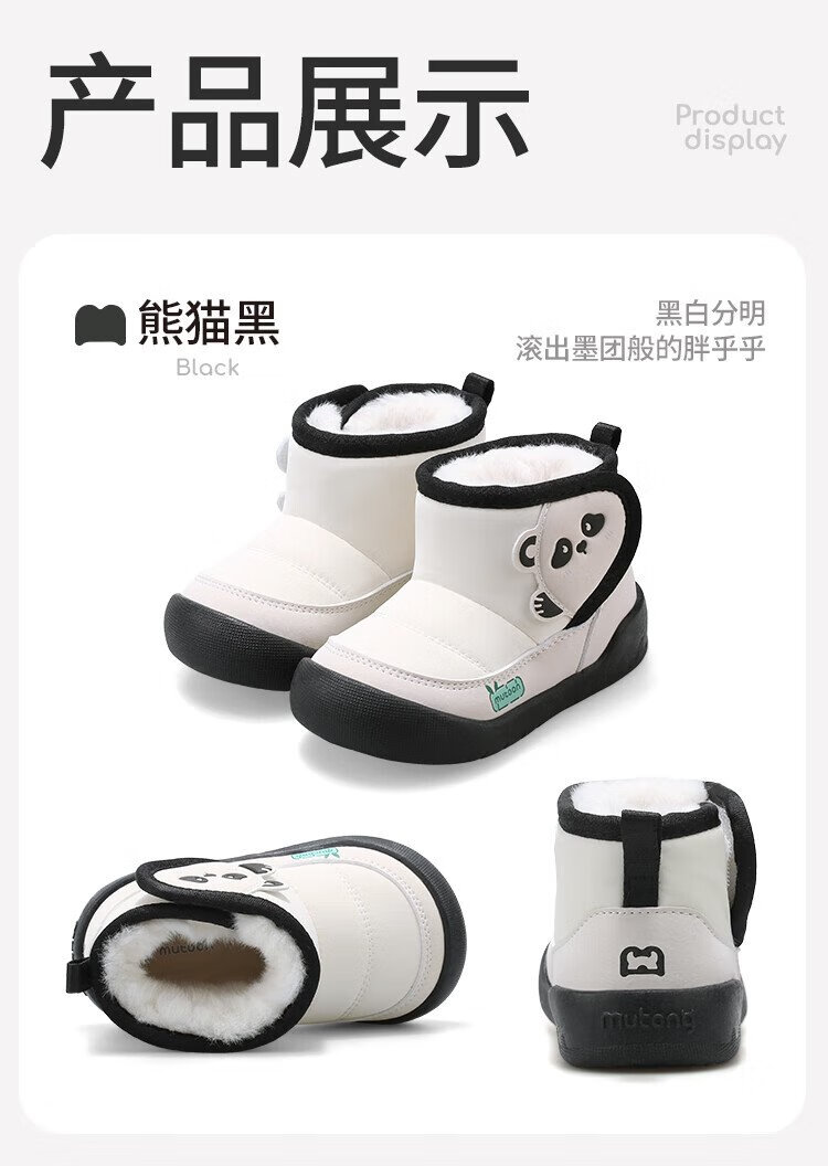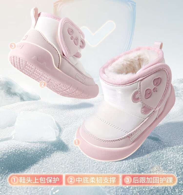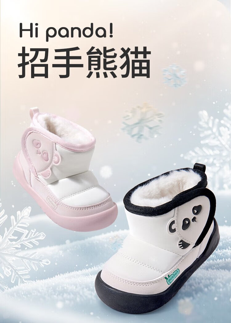 Shepherd boy baby snow boots 25 winter cotton shoes for boys and girls original panda thickened bread boots baby shoes panda powder 23
