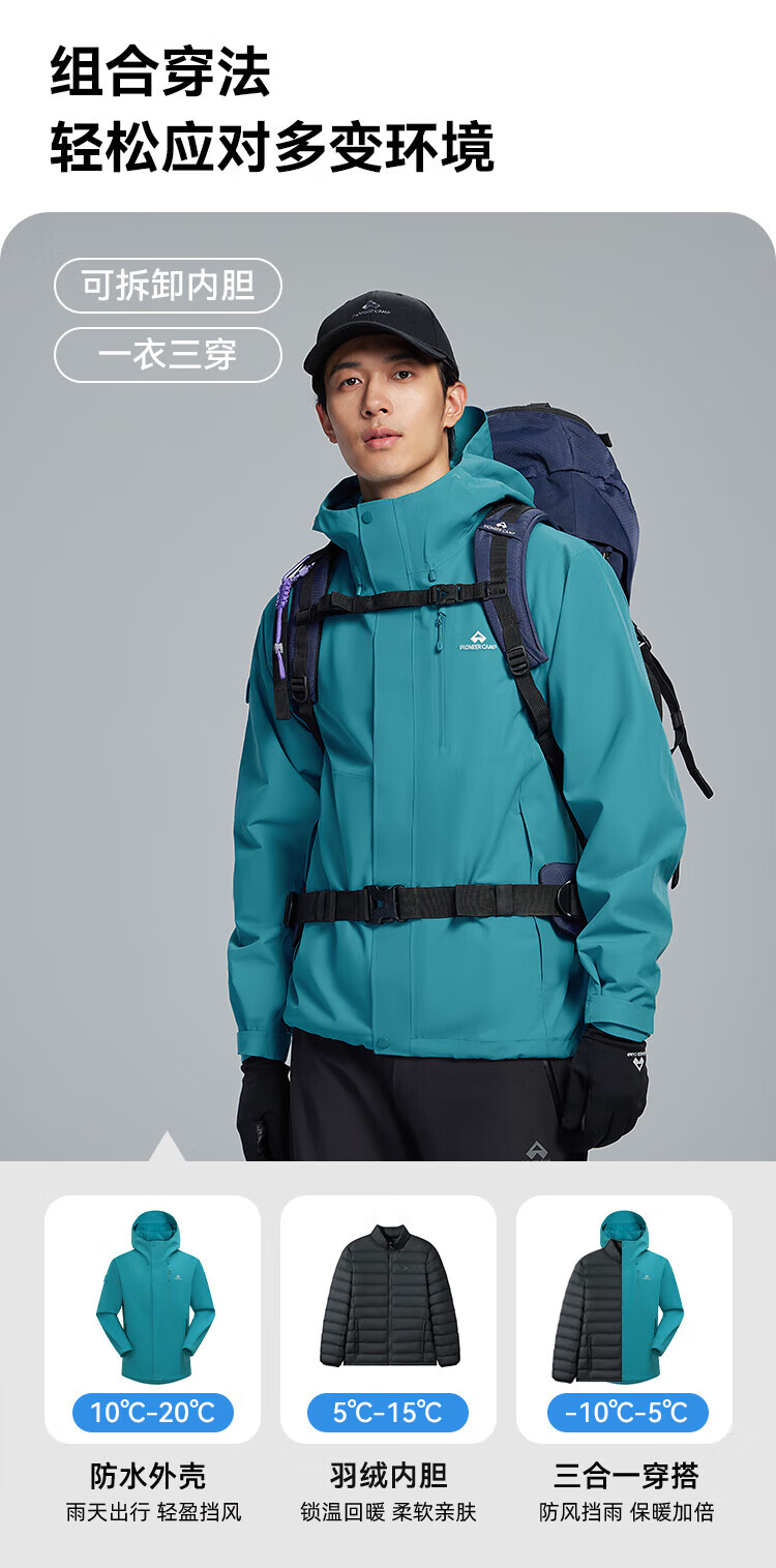 Pathfinder Bluebird three-in-one jacket men's hard shell autumn and winter outdoor down liner windproof waterproof warm hiking and mountaineering clothing