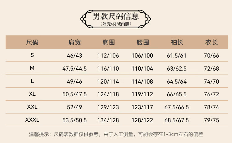 China (cm) 165 / 88-90 170 / 96-98 175 / 108-110 180 / 118-122 185 / 126-130