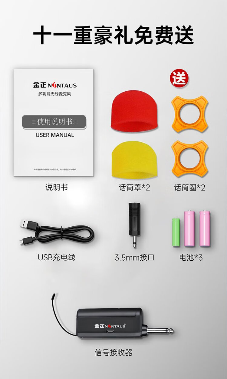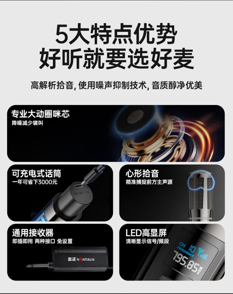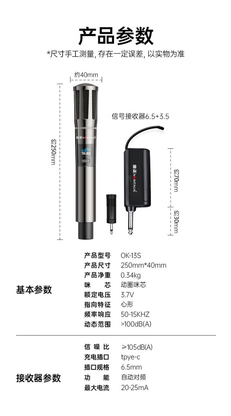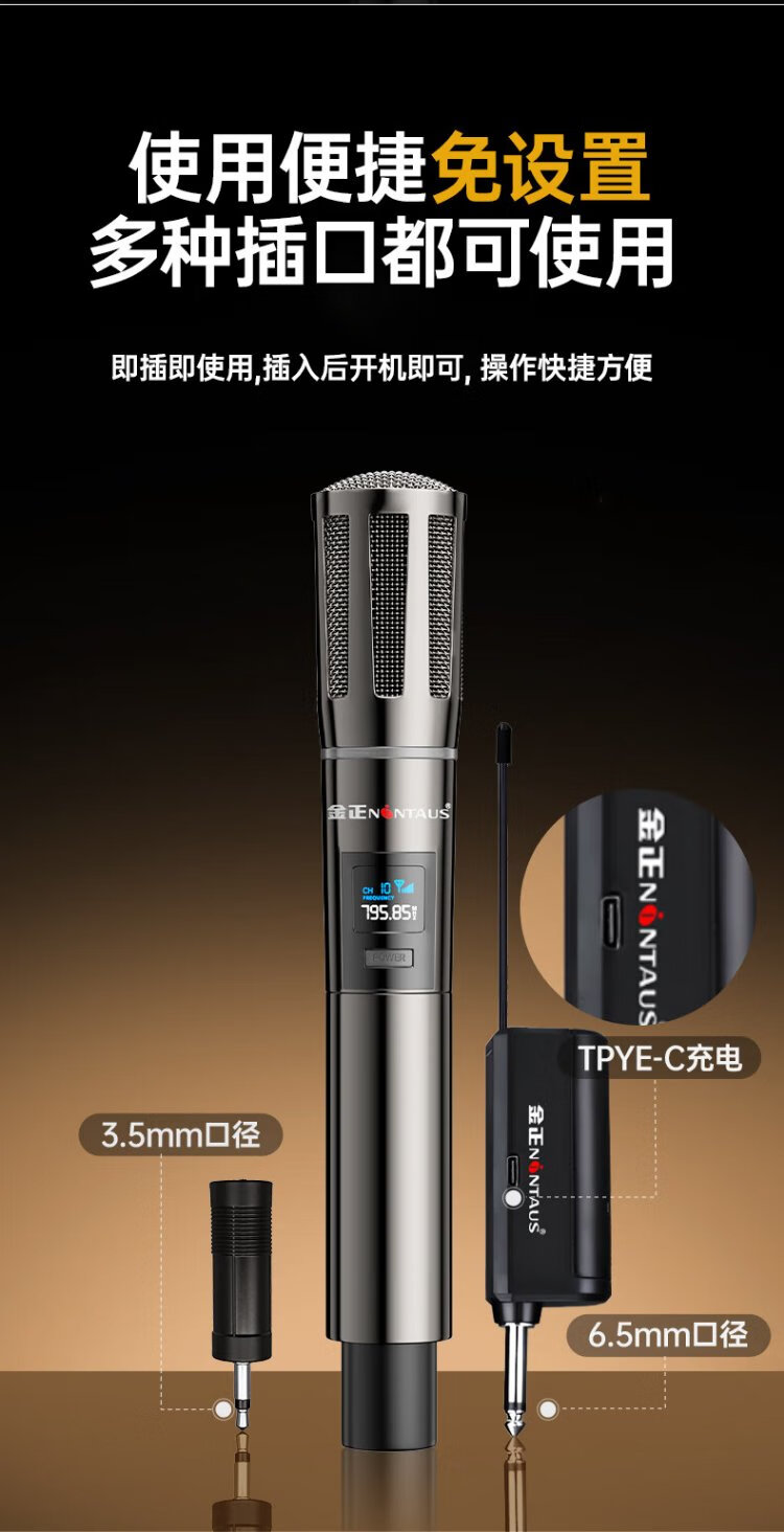 Jinzheng wireless charging microphone one-to-two microphone home KTV professional karaoke singing microphone teaching stage conference hosting performance special handheld microphone OK-13S