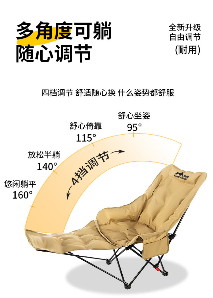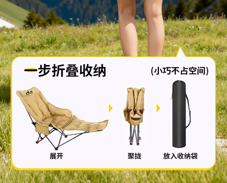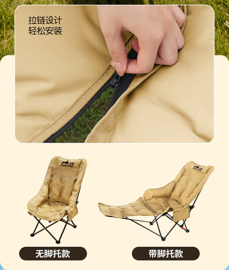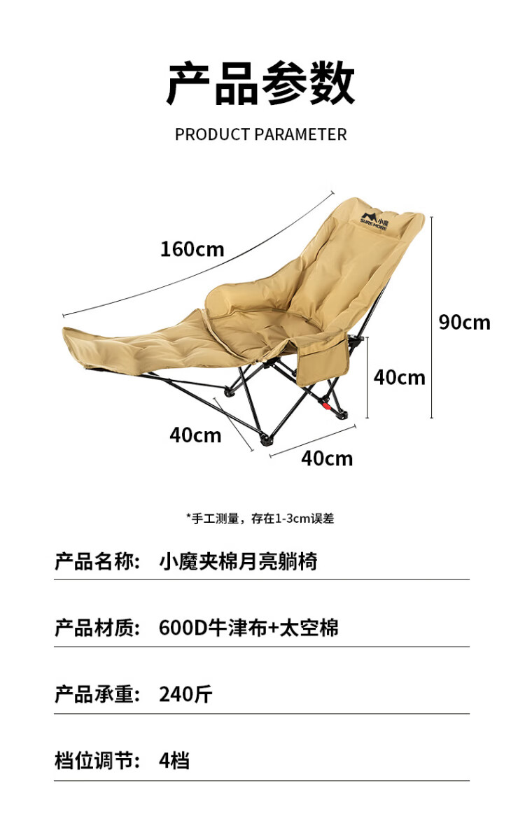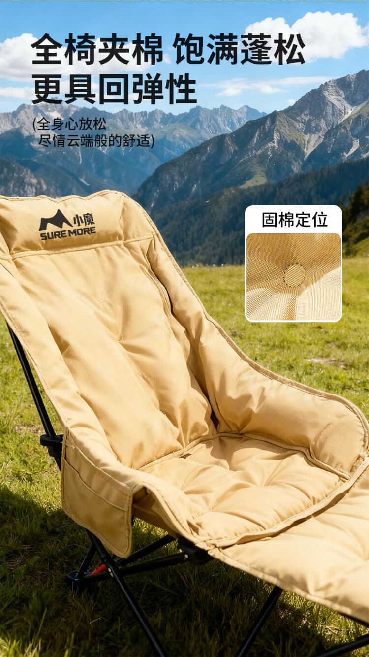 Xiaomo Folding Deck Chair, Outdoor Folding Chair, Camping Chair, Cotton High Back Moon Chair with Footrest, Lunch Break Accompanying Folding Bed