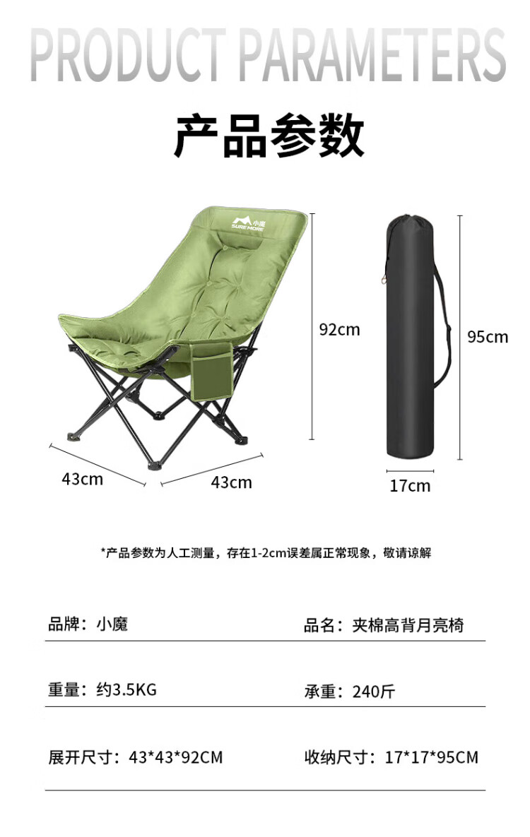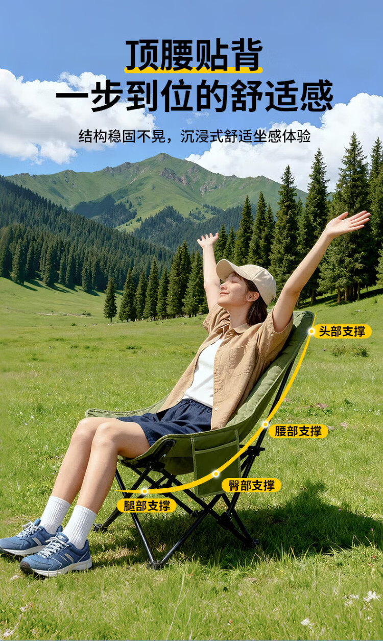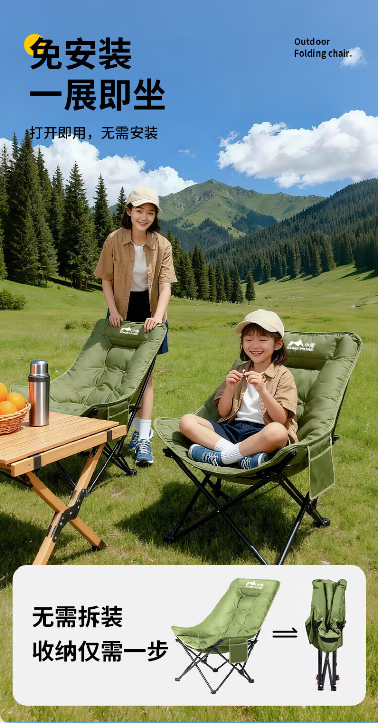 Xiaomo Outdoor Folding Chair Cotton Moon Chair High Back Camping Chair Portable Recliner Office Lunch Break Lazy Chair