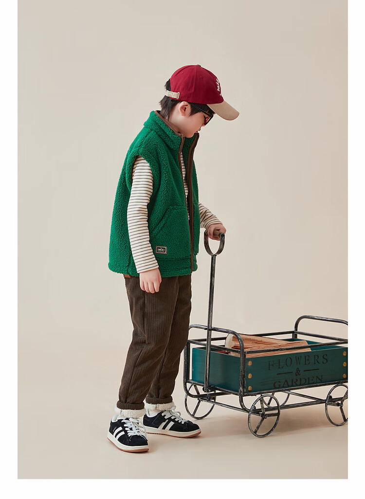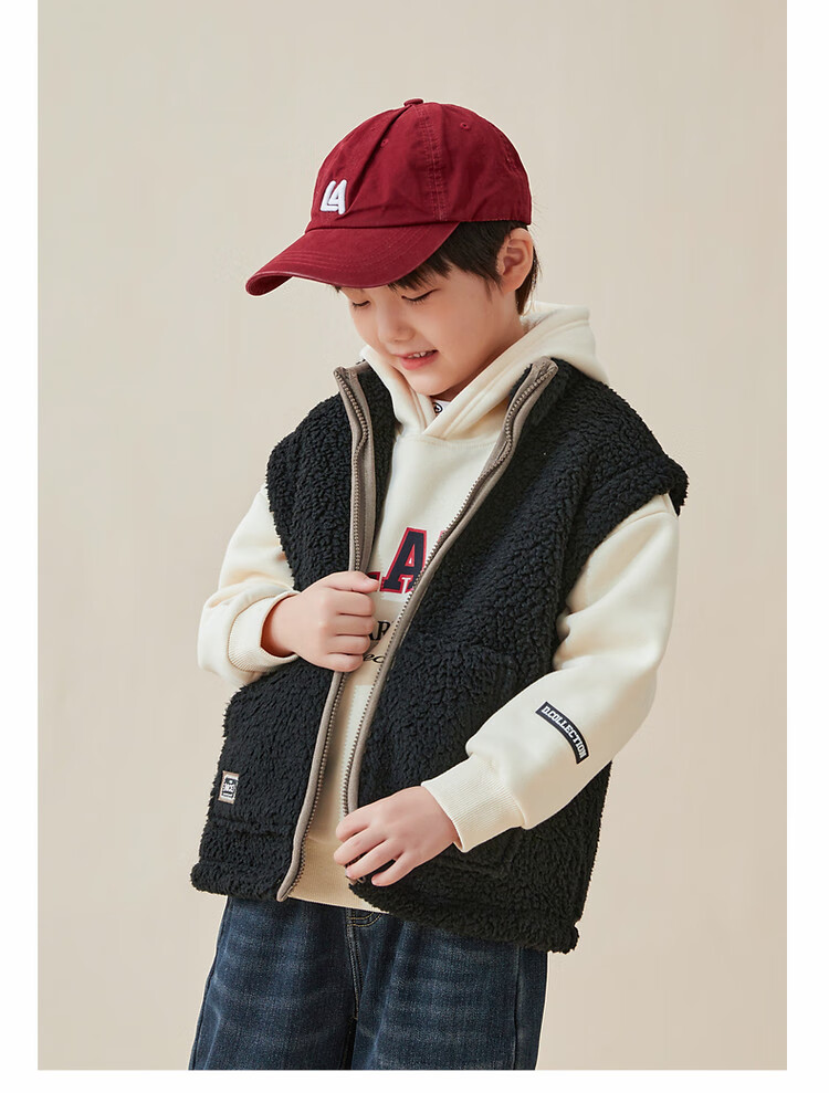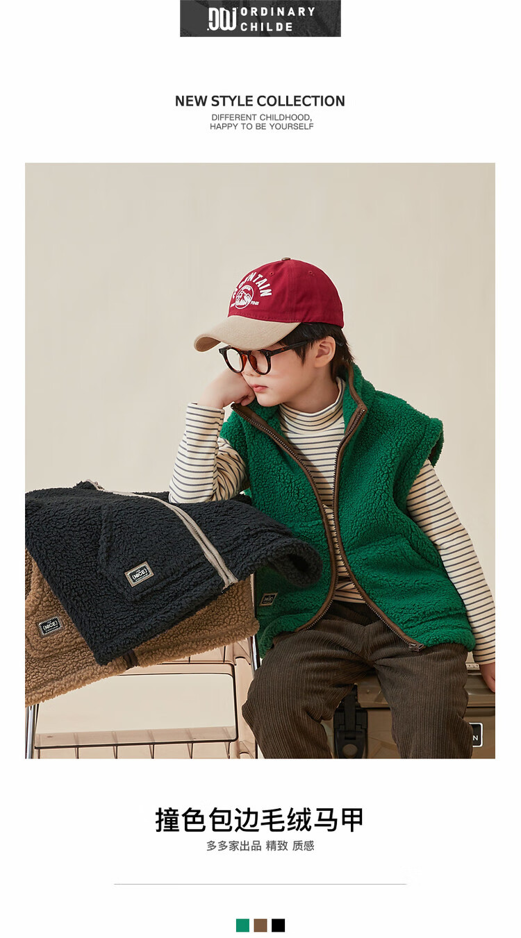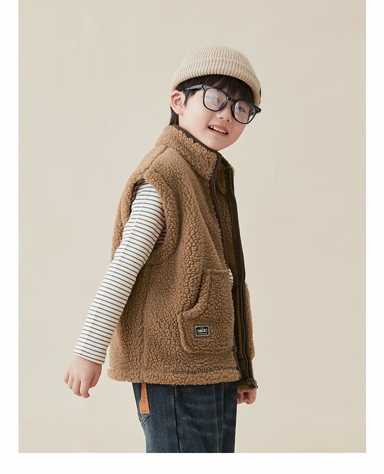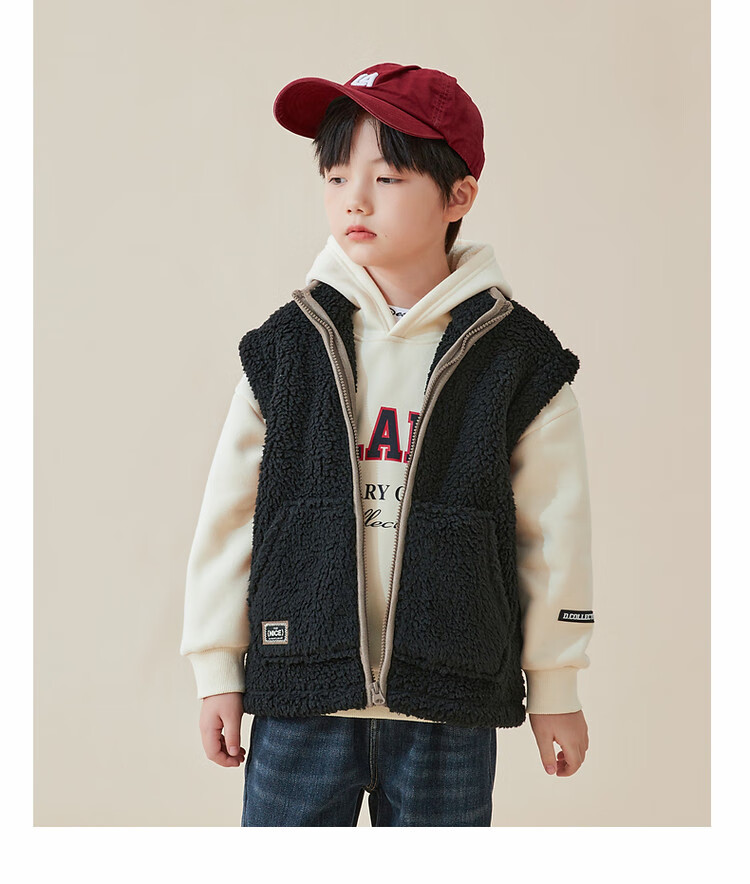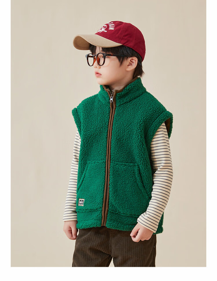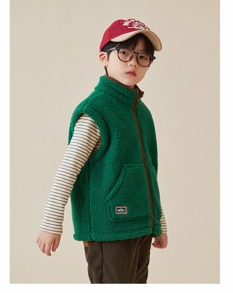 Duojia double-sided Icelandic velvet boys' vest autumn and winter children's contrast-edged plush vest medium-sized children's warm jacket