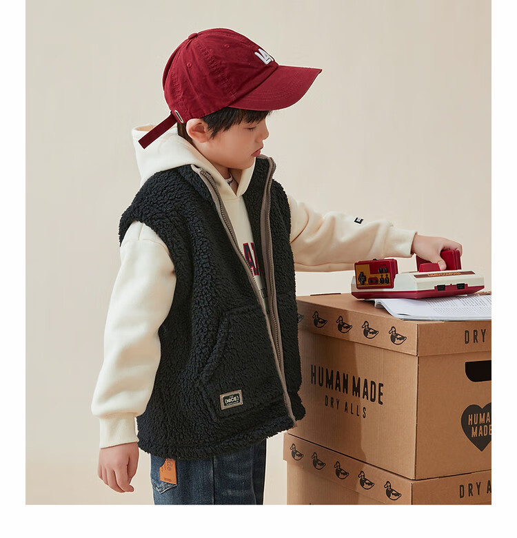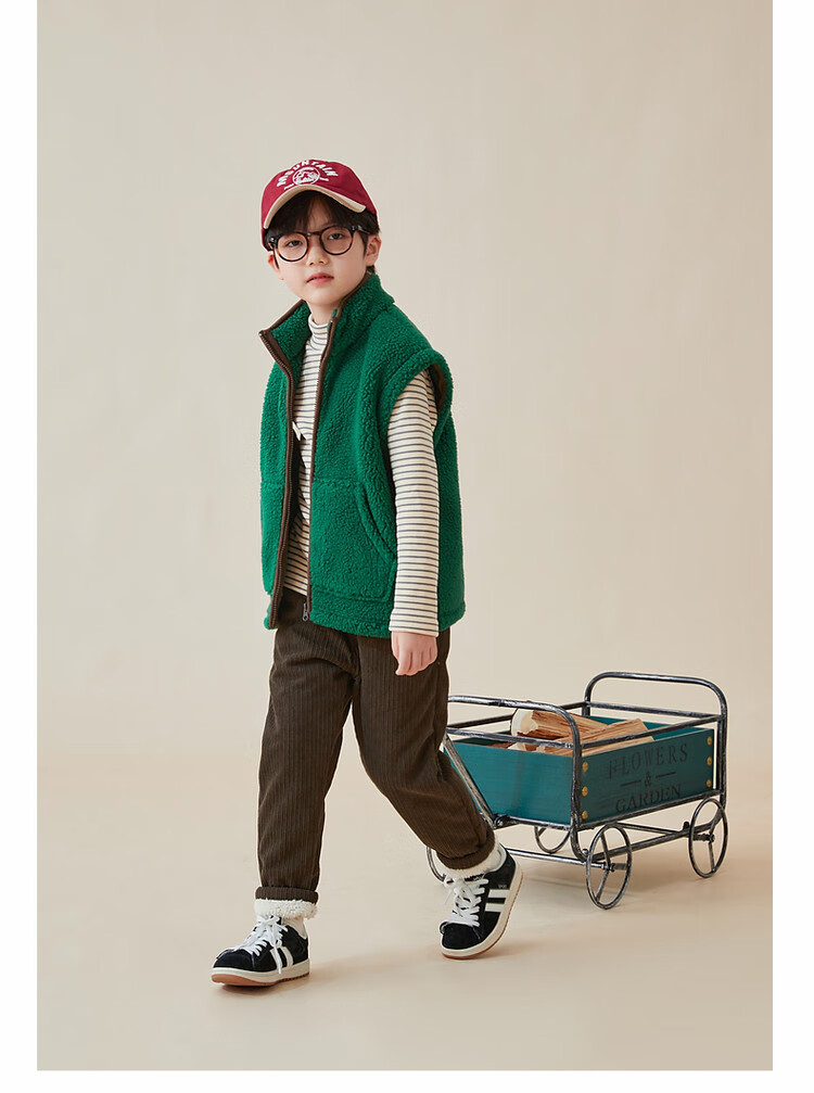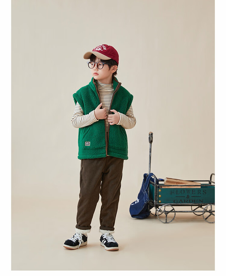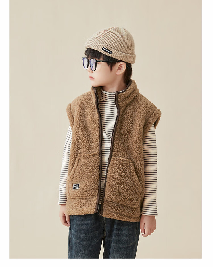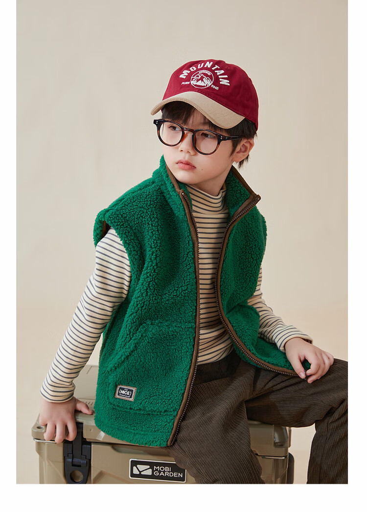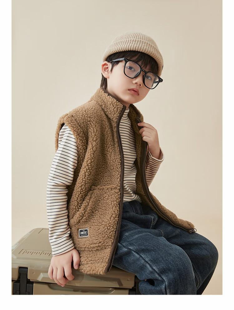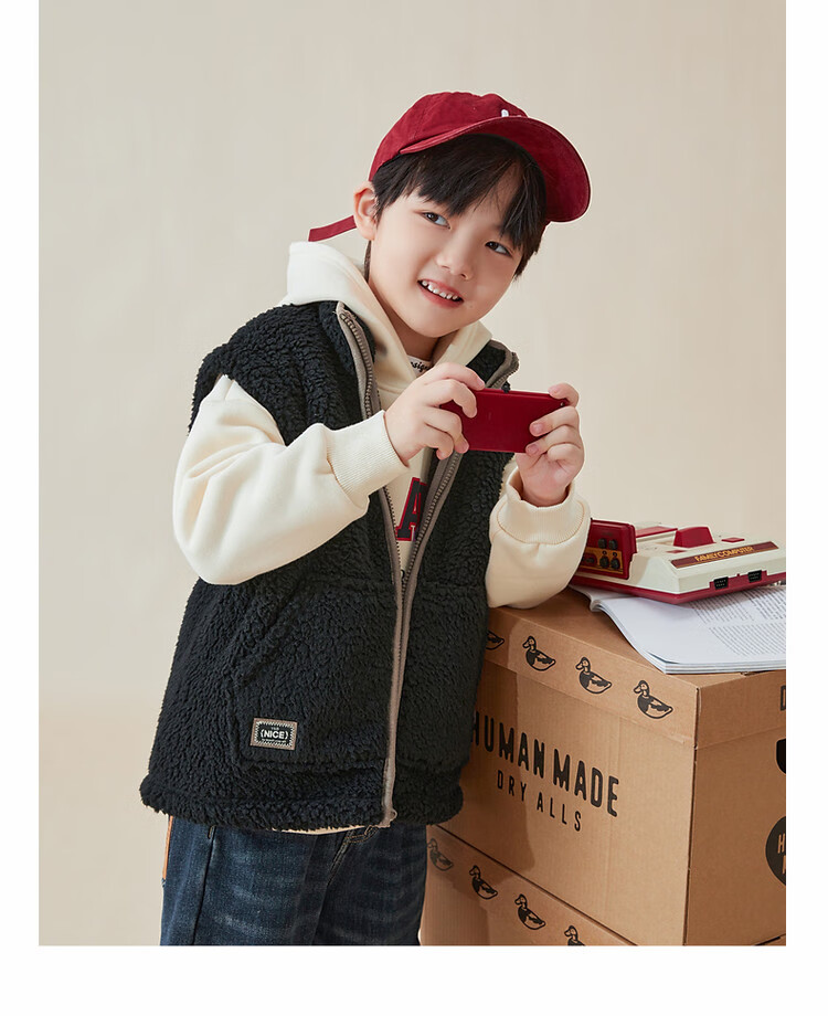 Duojia double-sided Icelandic velvet boys' vest autumn and winter children's contrast-edged plush vest medium-sized children's warm jacket