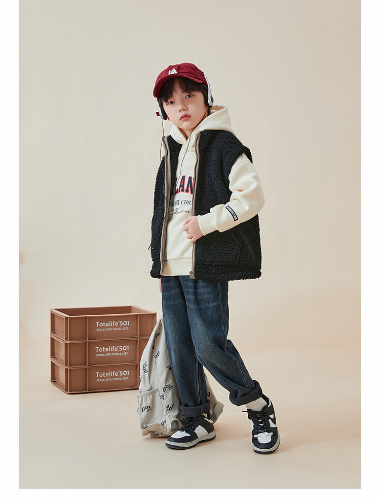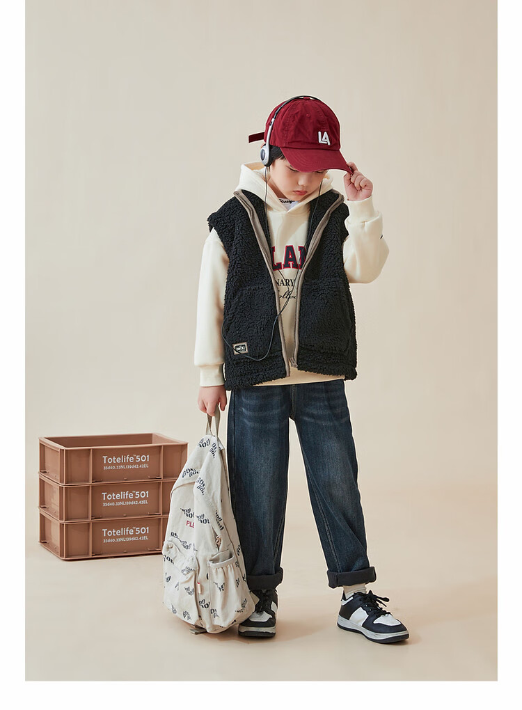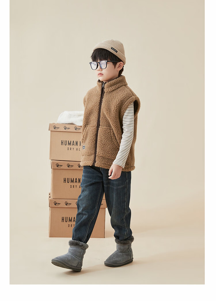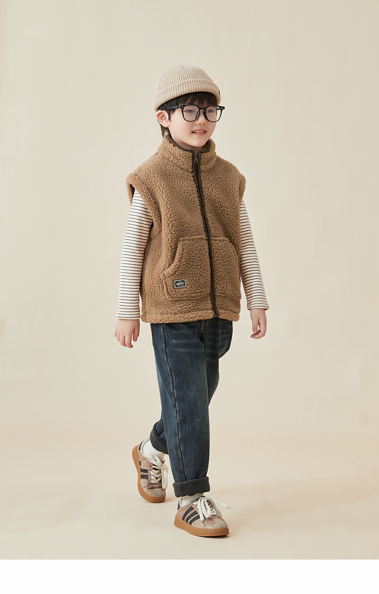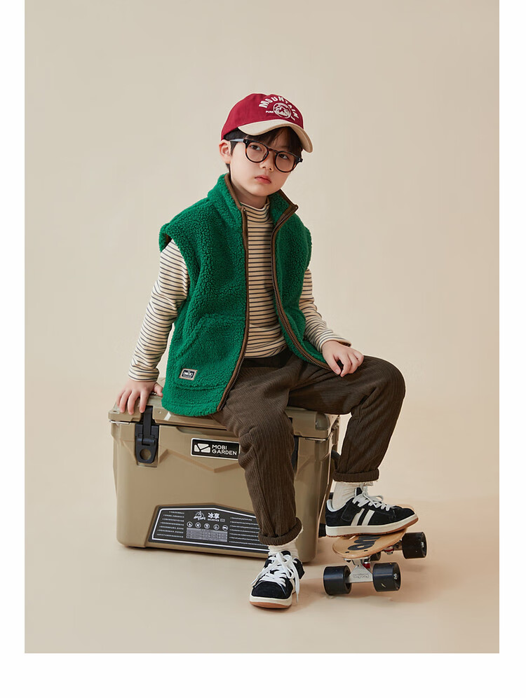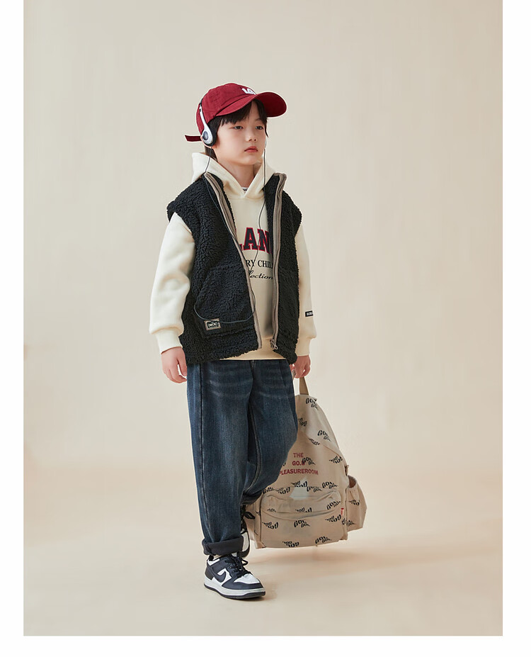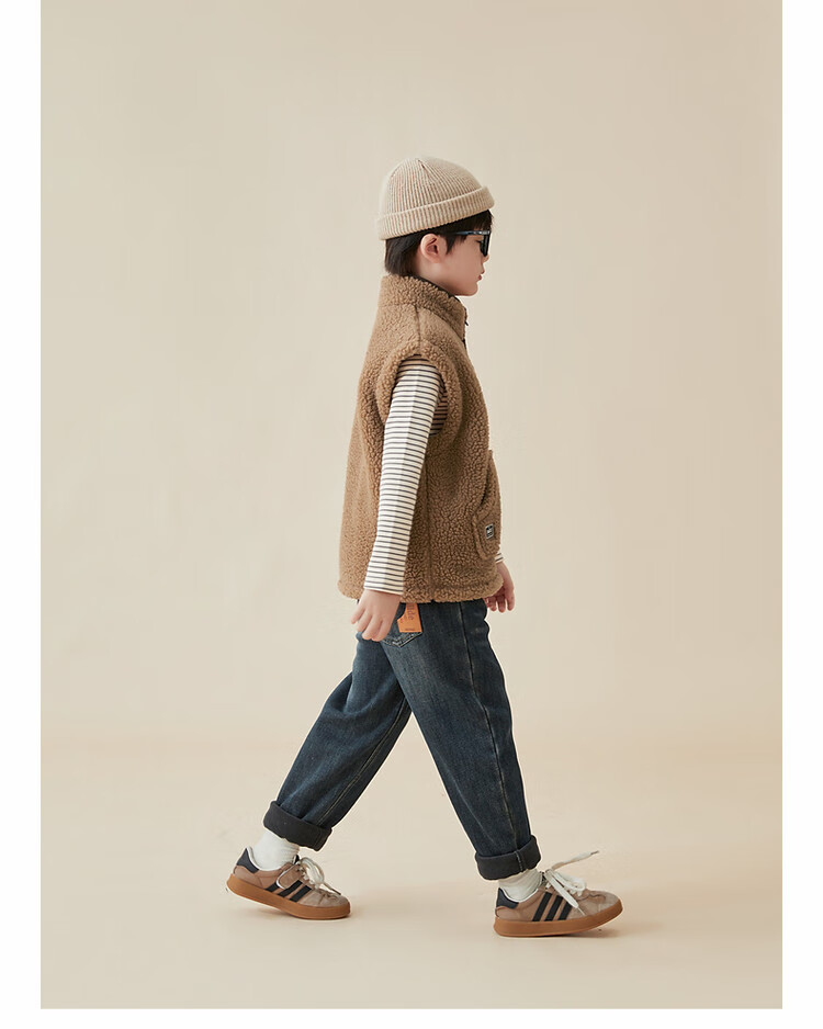 Duojia double-sided Icelandic velvet boys' vest autumn and winter children's contrast-edged plush vest medium-sized children's warm jacket