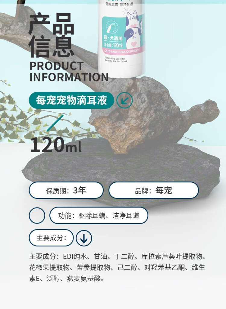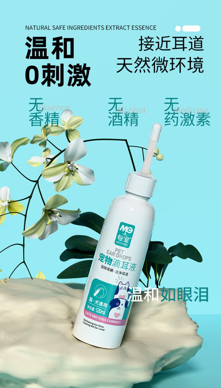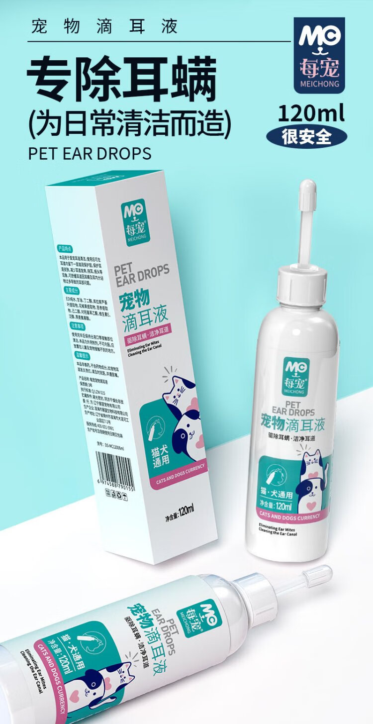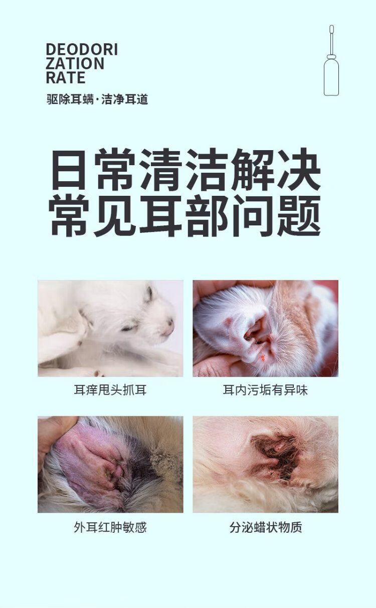 Every Pet Cleansing Ear Drops Removes Ear Mites for Dogs and Cats Ear Wax Odor Relieves Itching 120ml