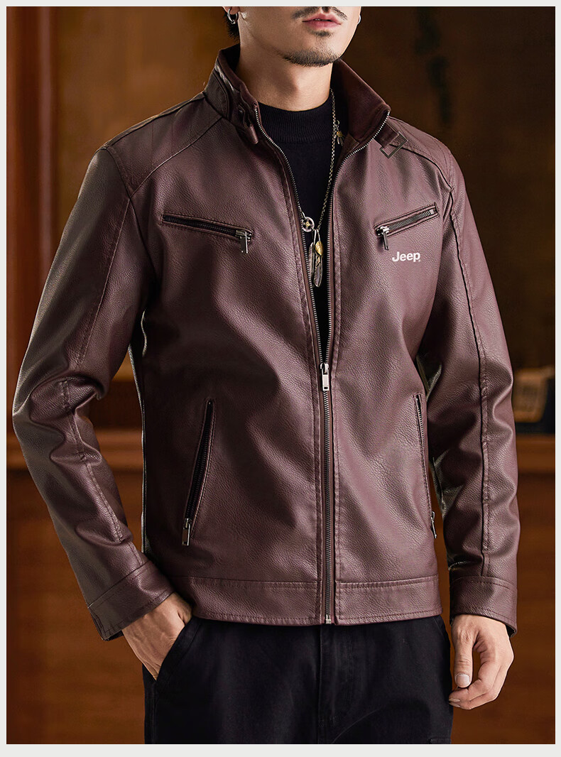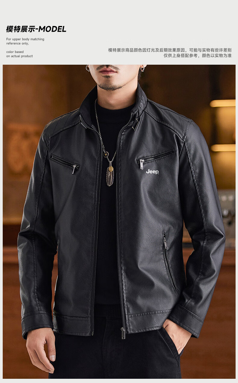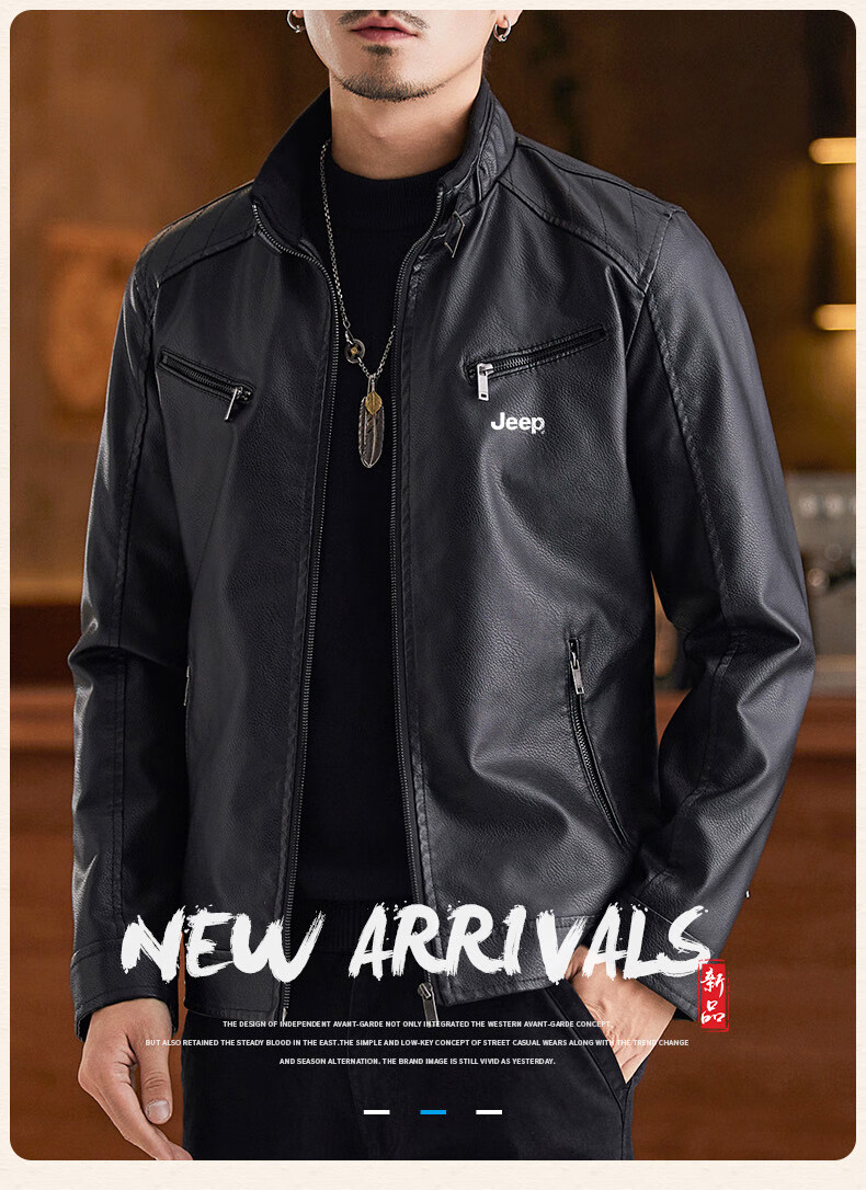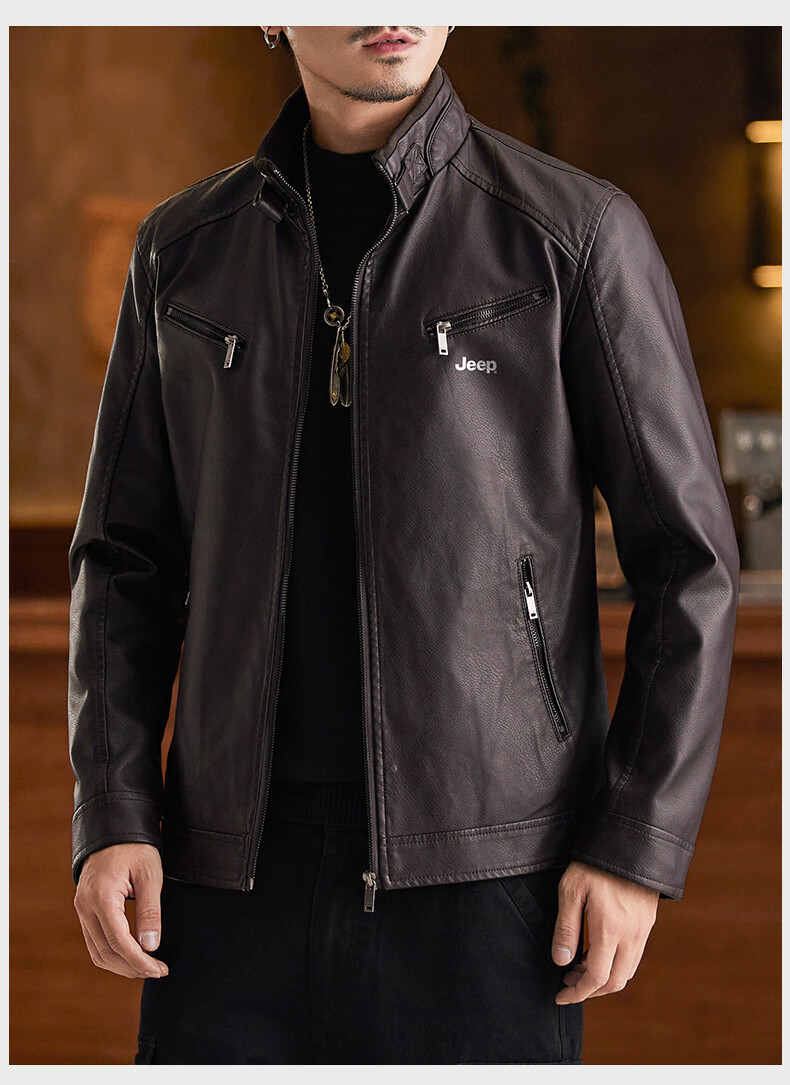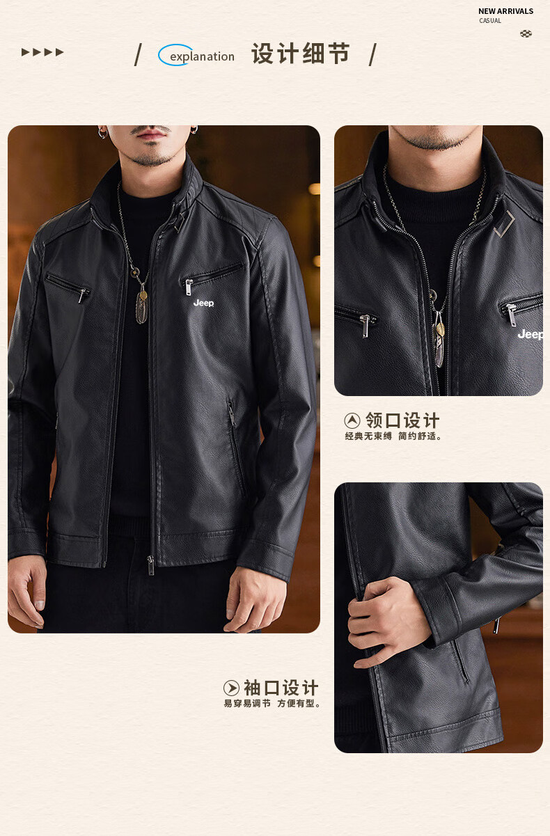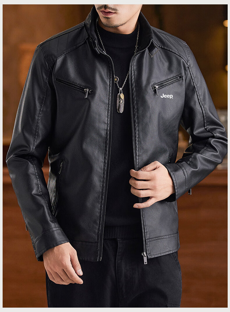 JEEP leather jacket men's spring and autumn windproof wear-resistant trendy loose casual lapel functional leather jacket men 2025 new style