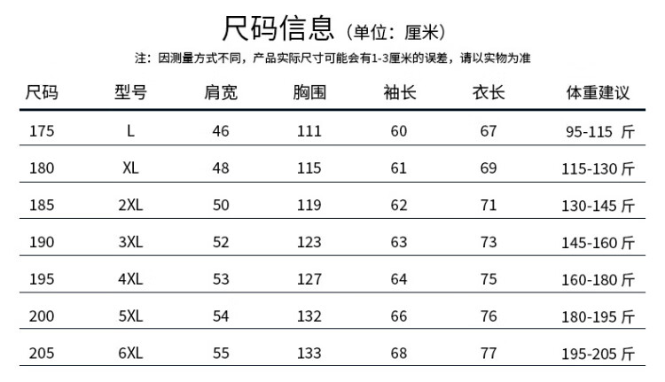 China (cm) 165 / 88-90 170 / 96-98 175 / 108-110 180 / 118-122 185 / 126-130