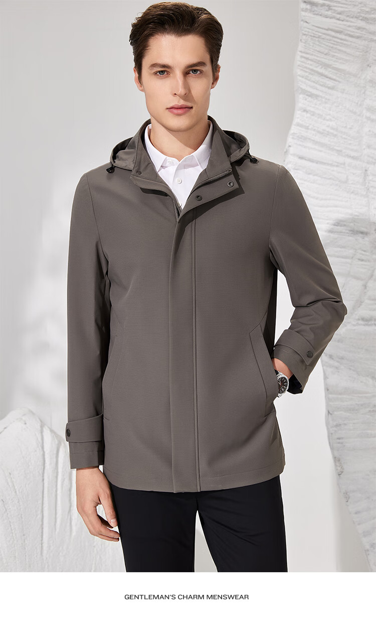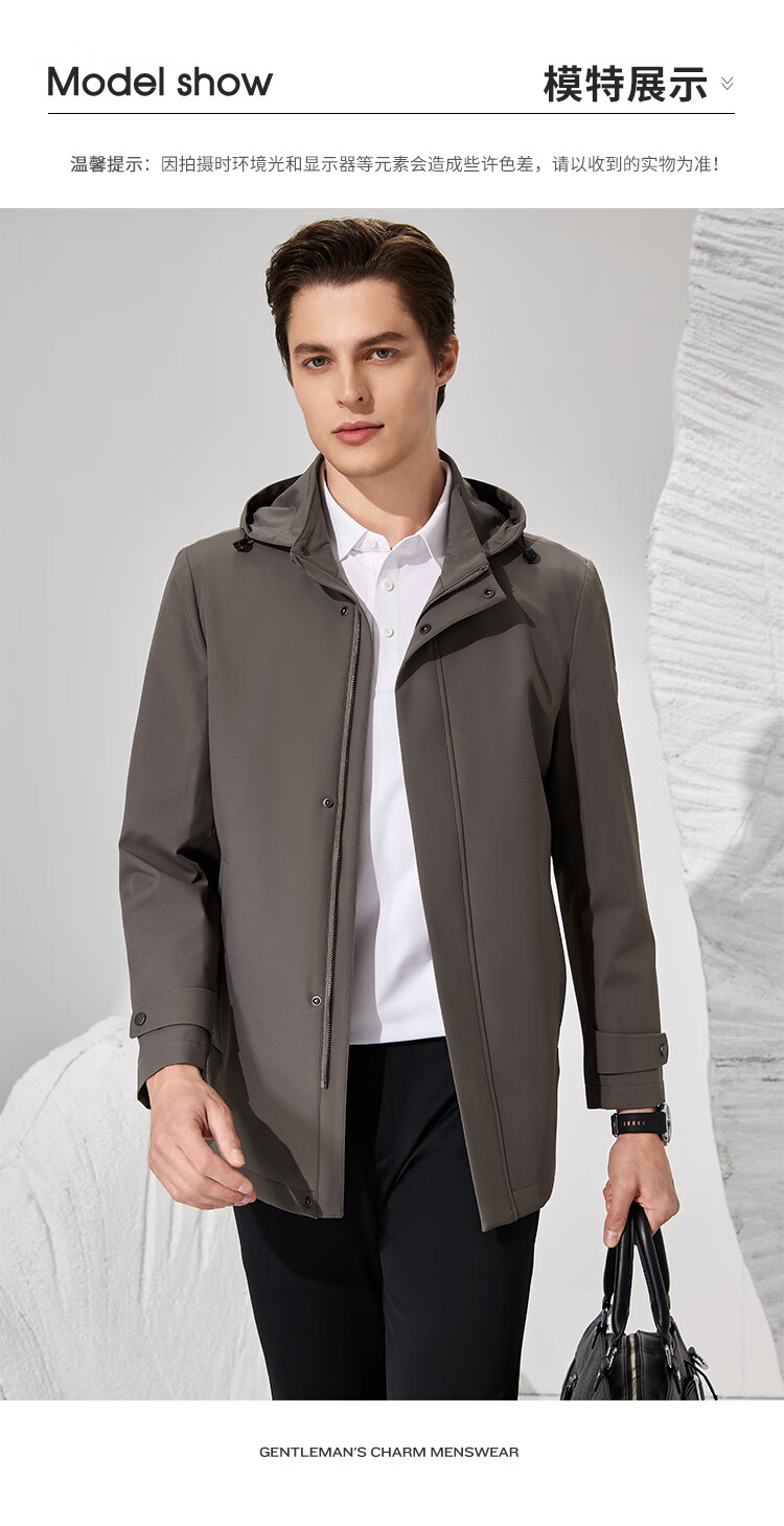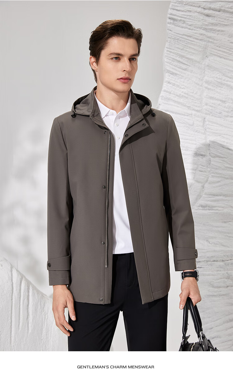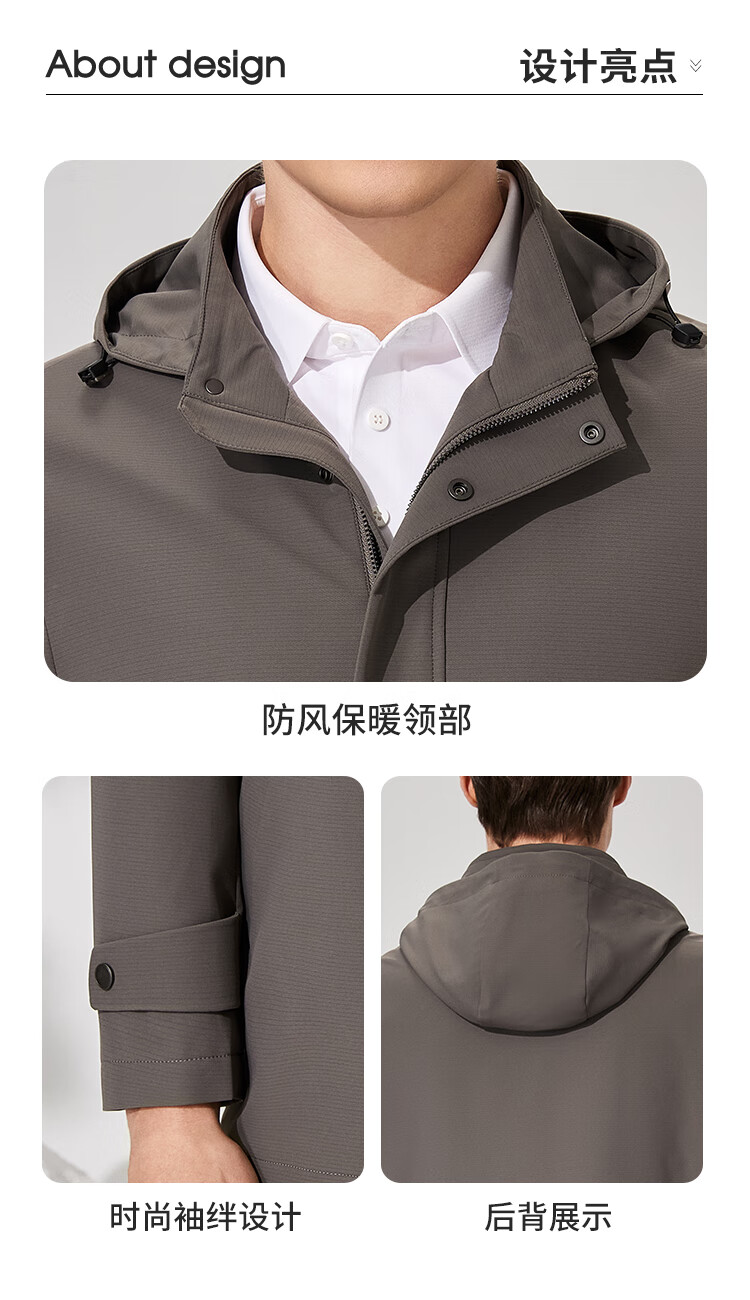 Antonio detachable hood and easy care simple business mid-length windbreaker men's high-end casual business jacket