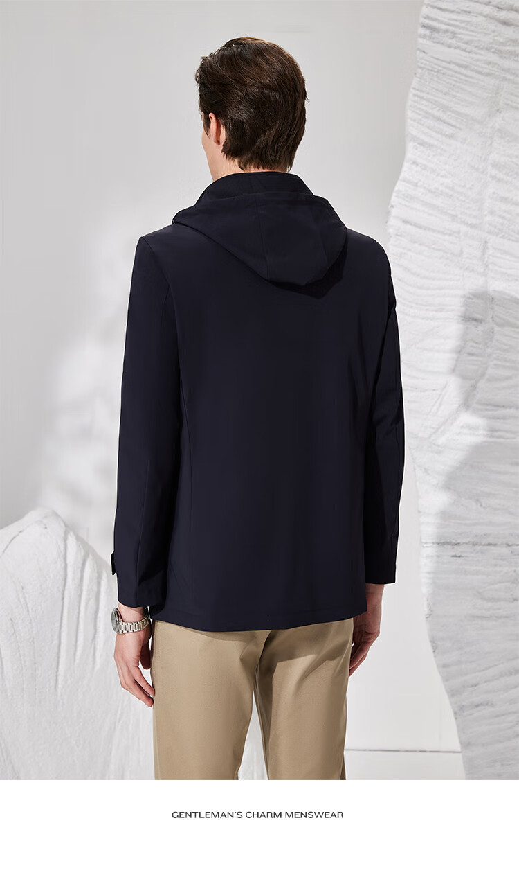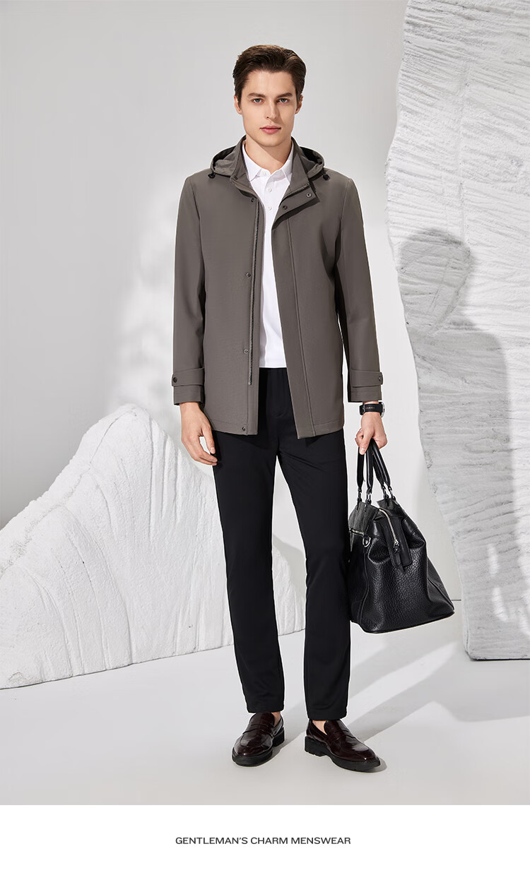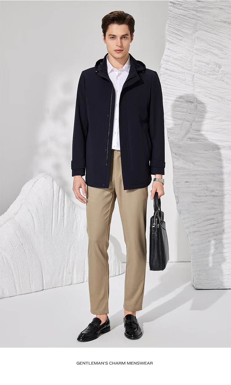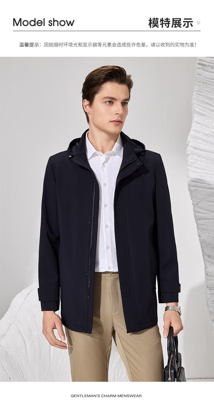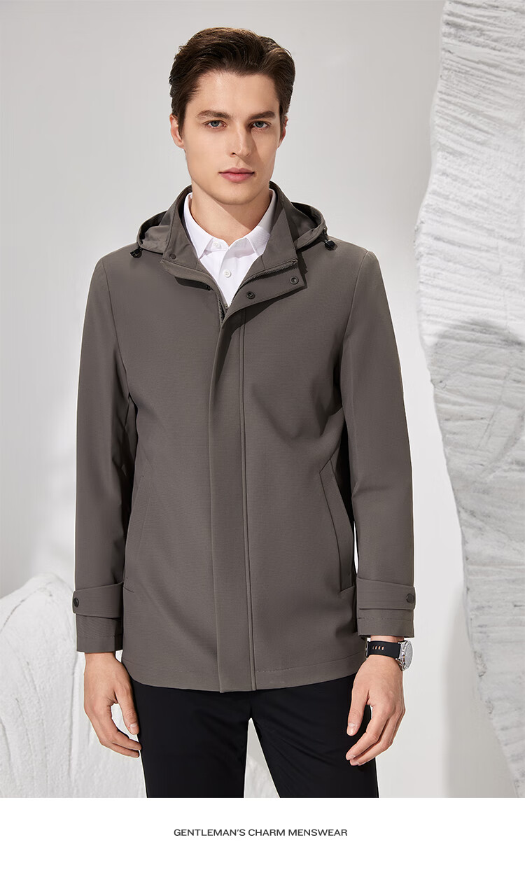 Antonio detachable hood and easy care simple business mid-length windbreaker men's high-end casual business jacket