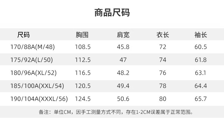 China (cm) 160-165/84-86 165-170 / 88-90 167-172 / 92-96 168-173 / 98-102 170-176 / 106-110
