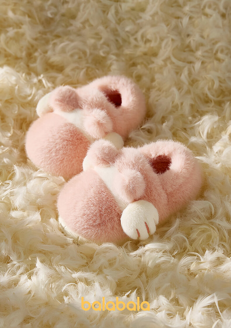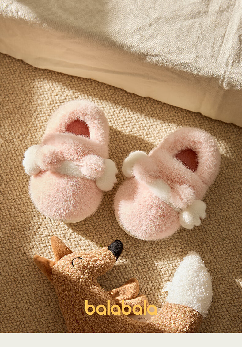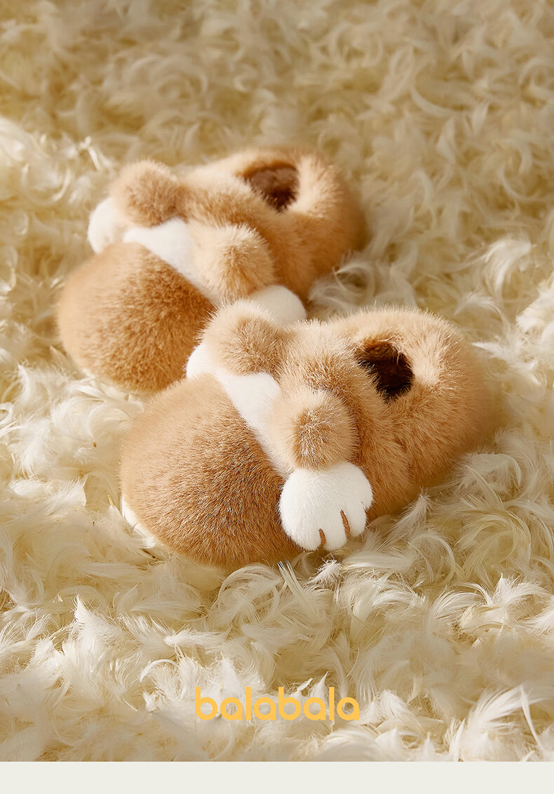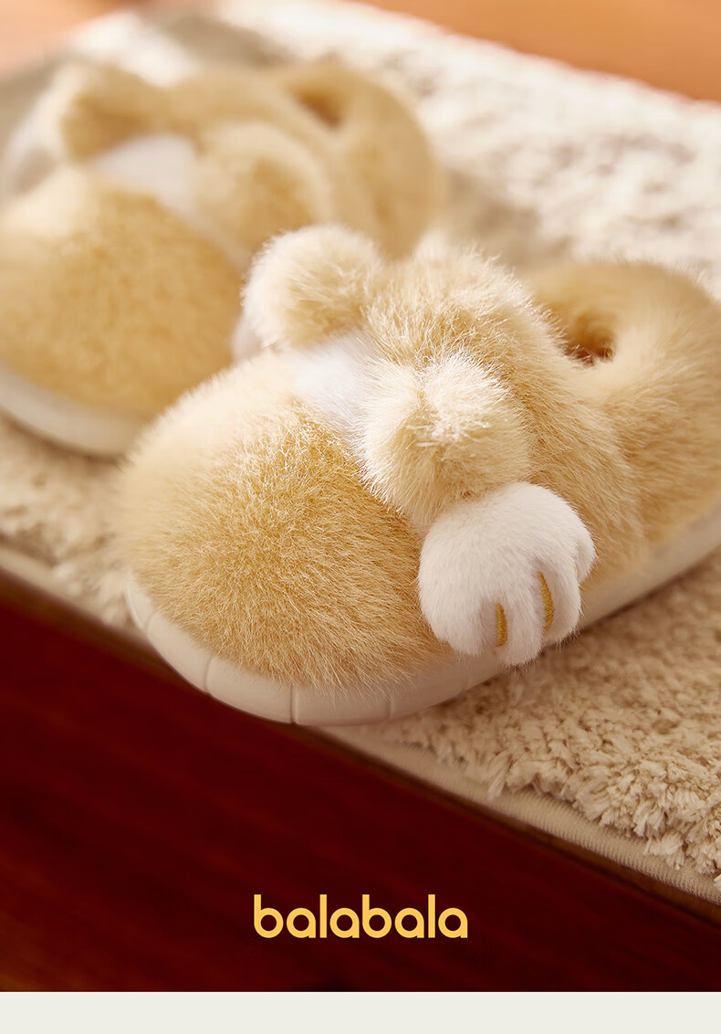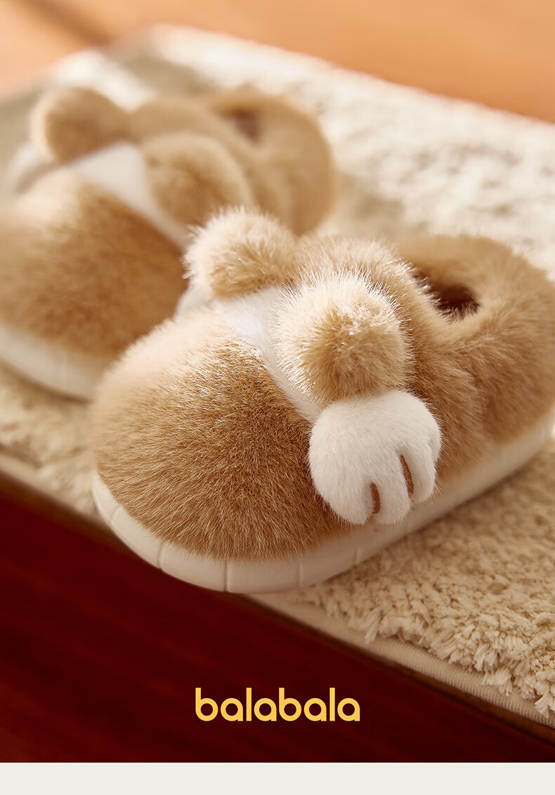 Balabala Cat Claw Cotton Slippers Children's Non-Slip Boys' Indoor 2025 New Bag Heels Girls' Cute Warm Baby Hair Slippers