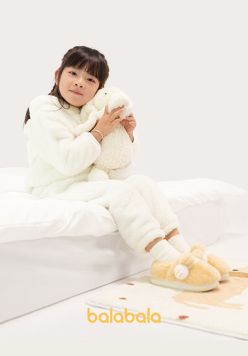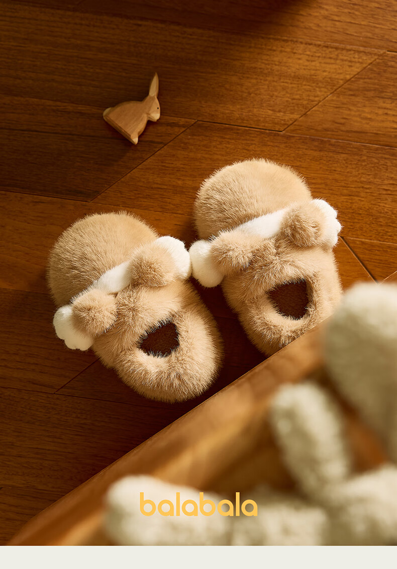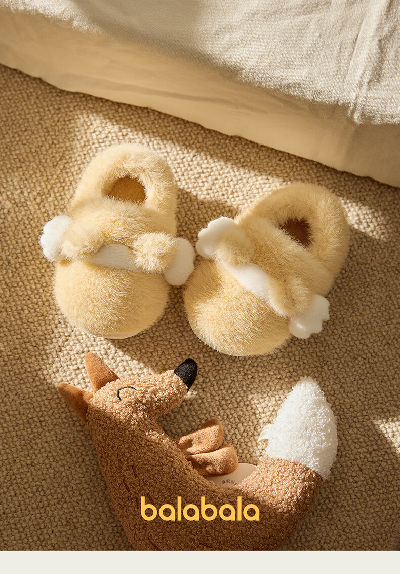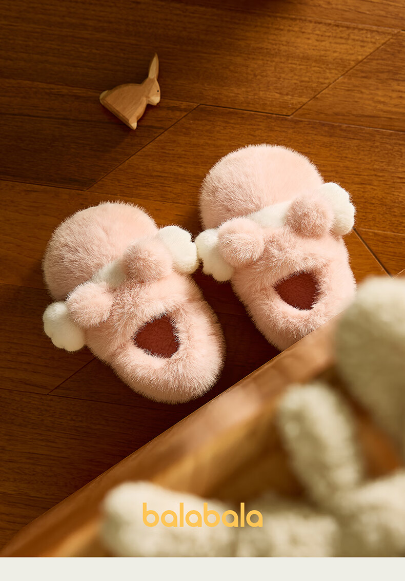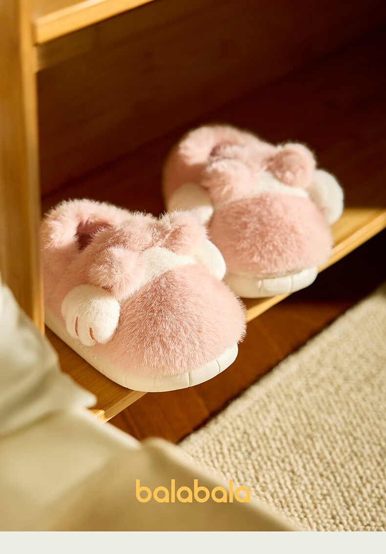 Balabala Cat Claw Cotton Slippers Children's Non-Slip Boys' Indoor 2025 New Bag Heels Girls' Cute Warm Baby Hair Slippers