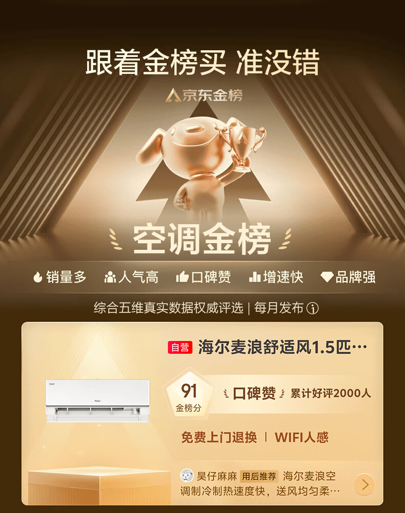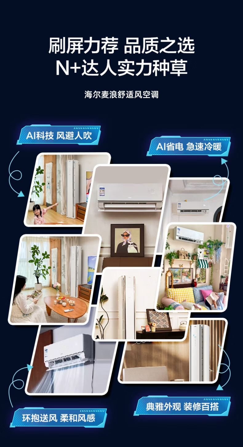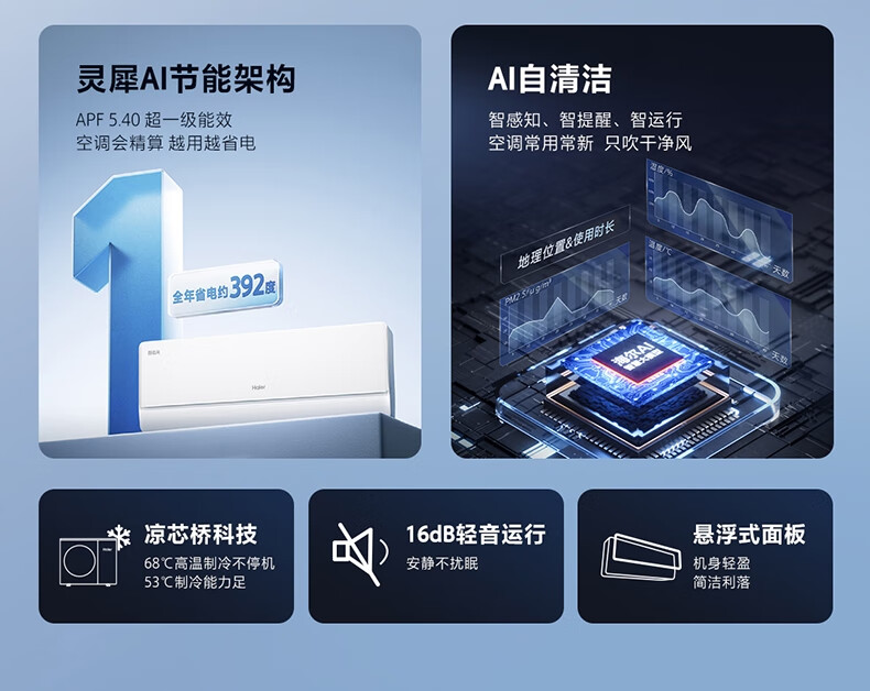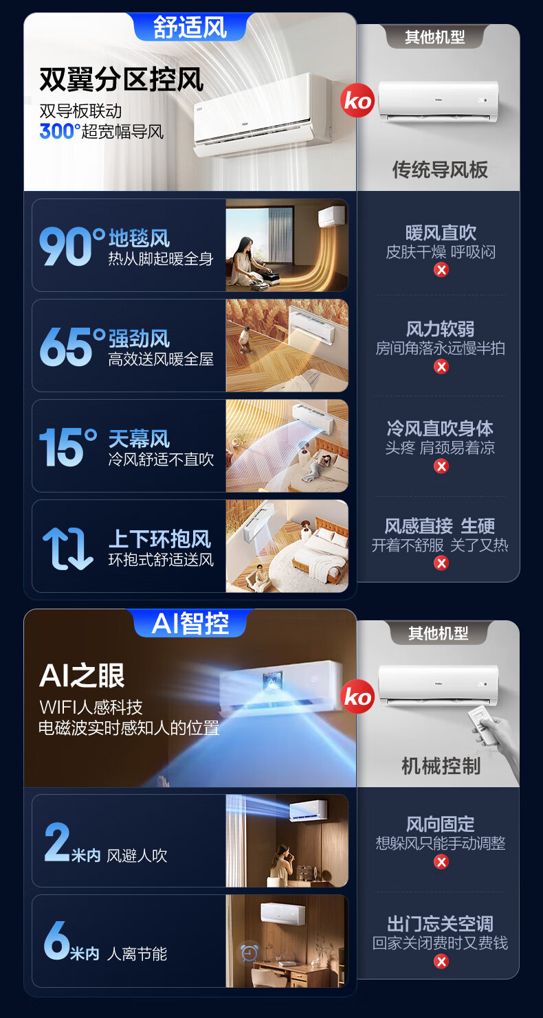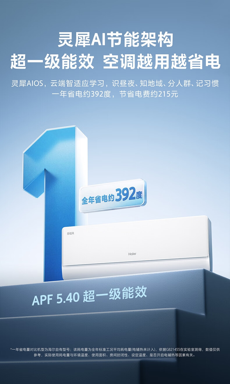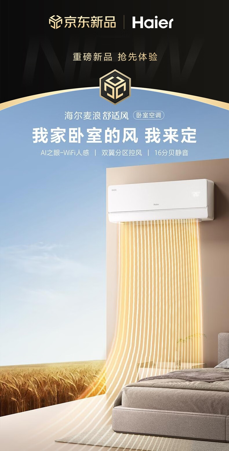 Haier Air Conditioner Mailang Comfort Wind 1.5 HP New Level Energy Efficiency Frequency Converter WIFI Sensitive Wind Control Bedroom Hang-up Heating and Cooling National Subsidy KFR-35GW/E2-1