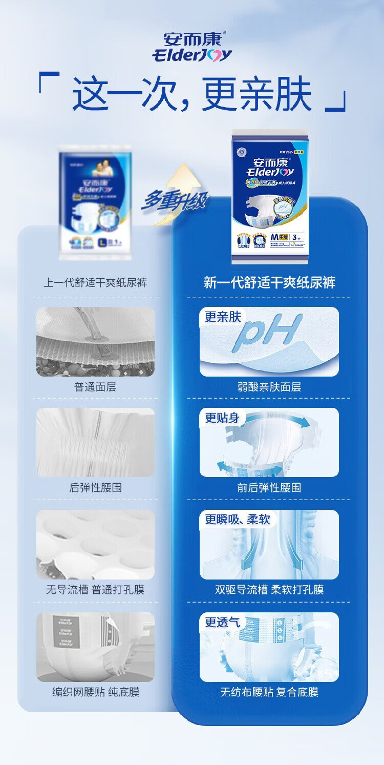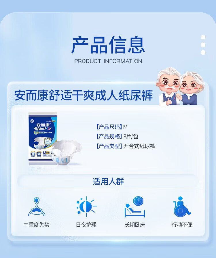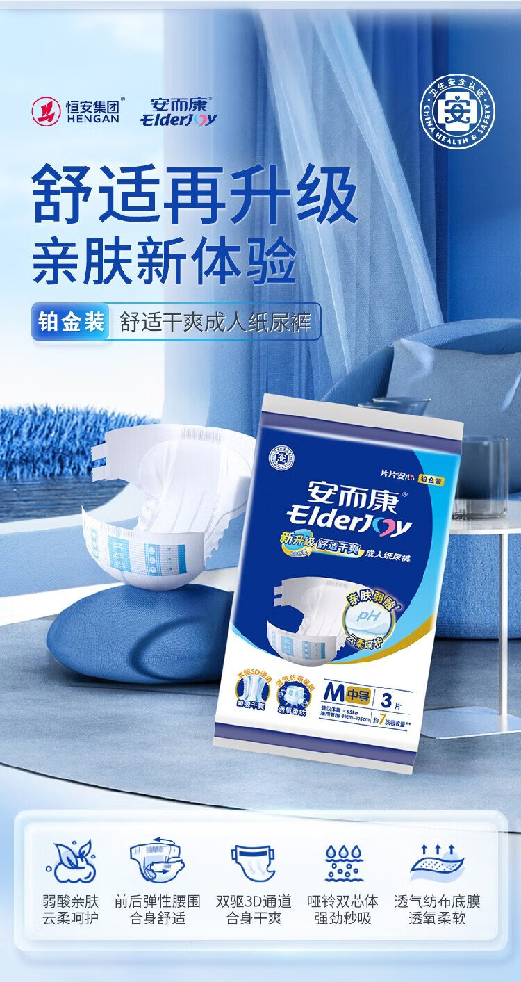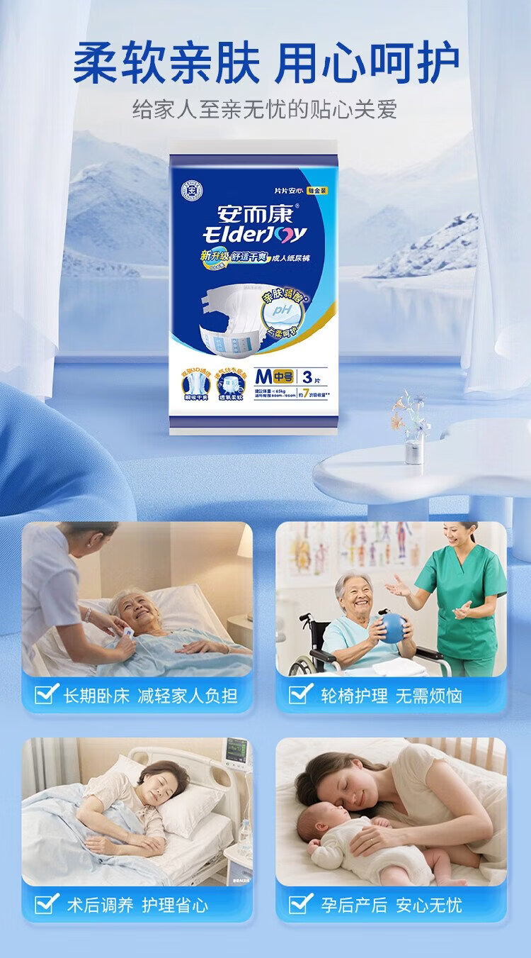 Elderjoy comfortable and dry adult diapers M3 piece hip size 80-105cm adult diapers skin-friendly trial pack for the elderly