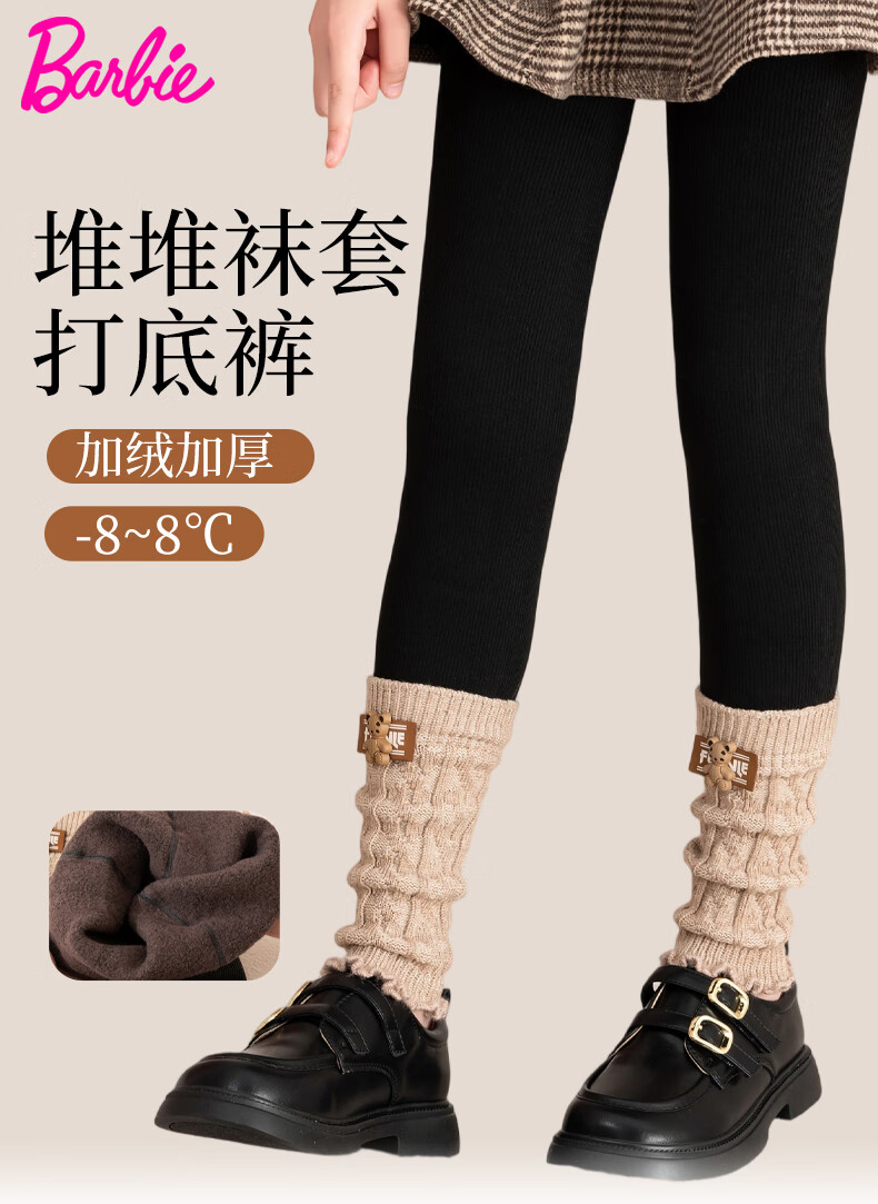 Barbie children's leggings autumn and winter thickened velvet warm girls' pants winter black leggings nine-point pantyhose set pants