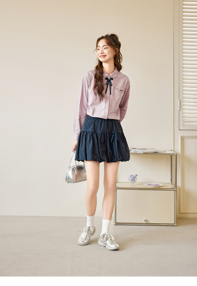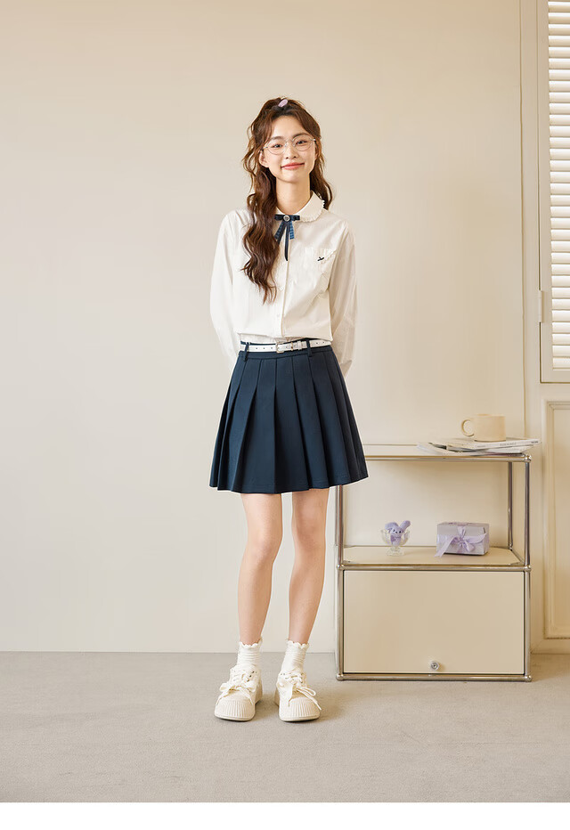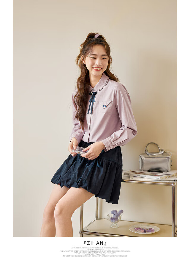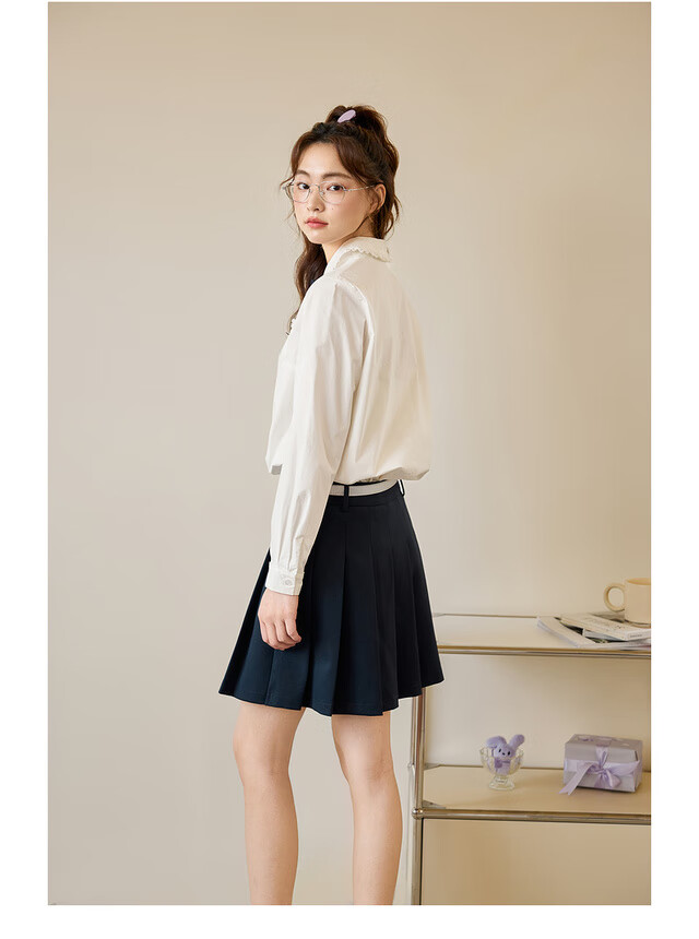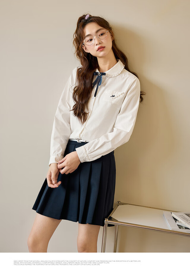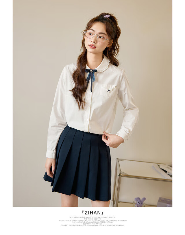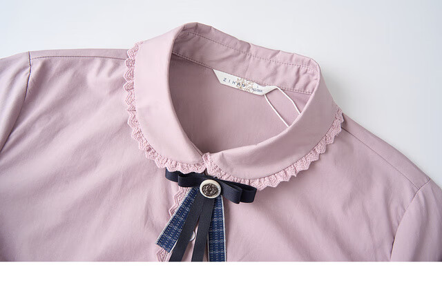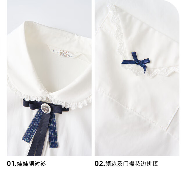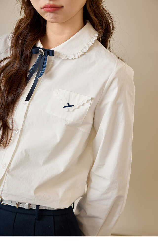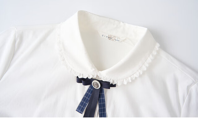 ZIHAN Zihan lace edge doll collar long-sleeved shirt women's spring sweet college style inner corsage shirt white S