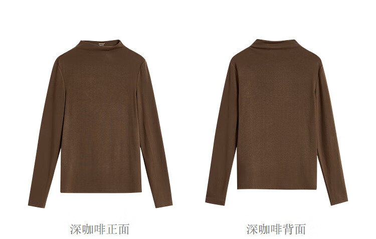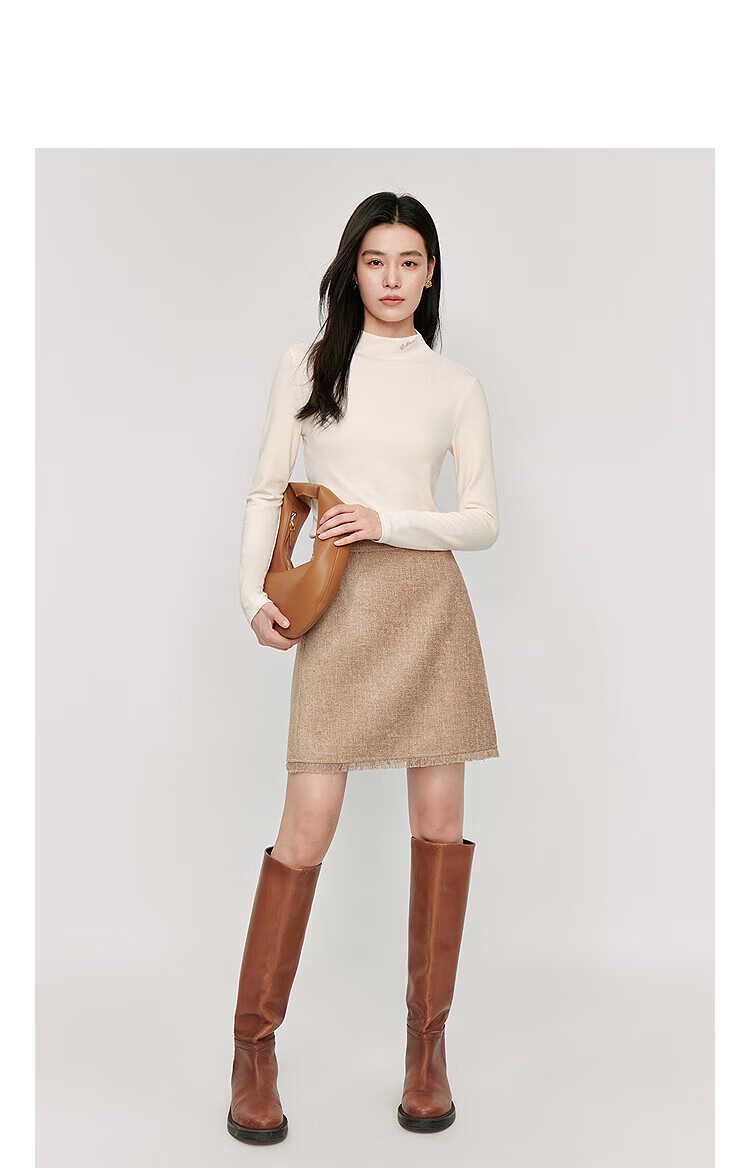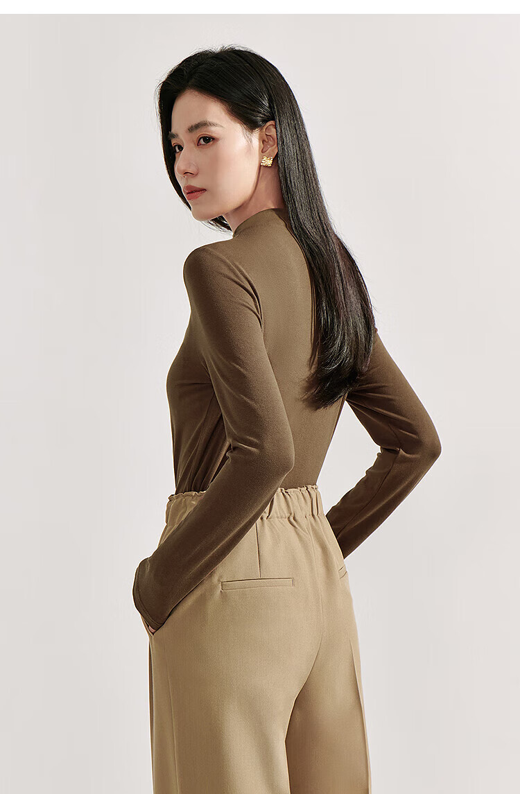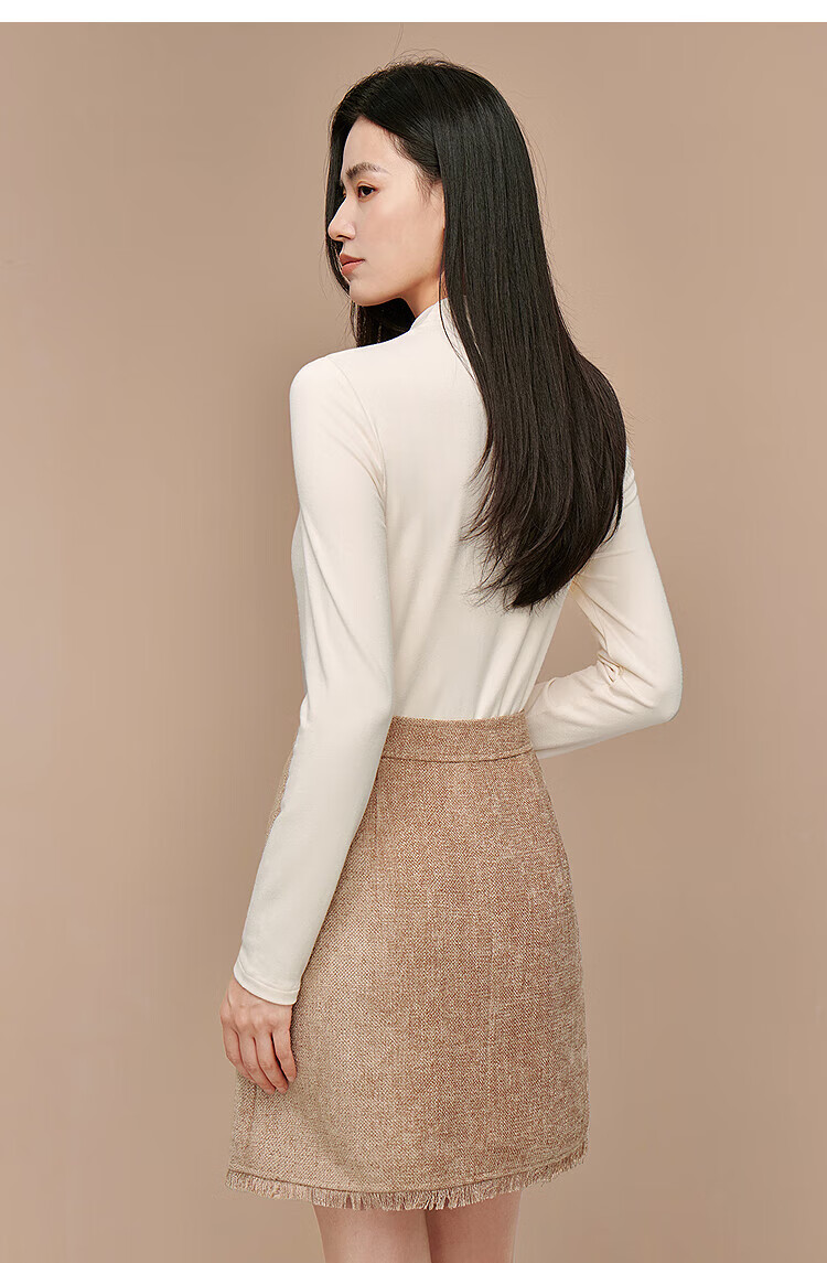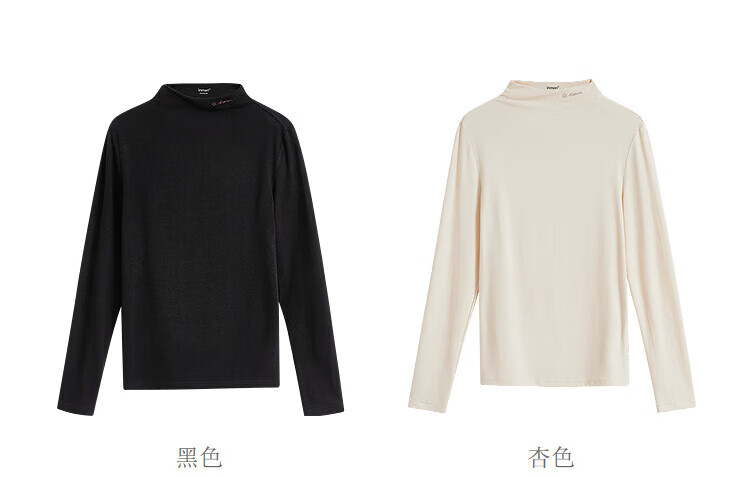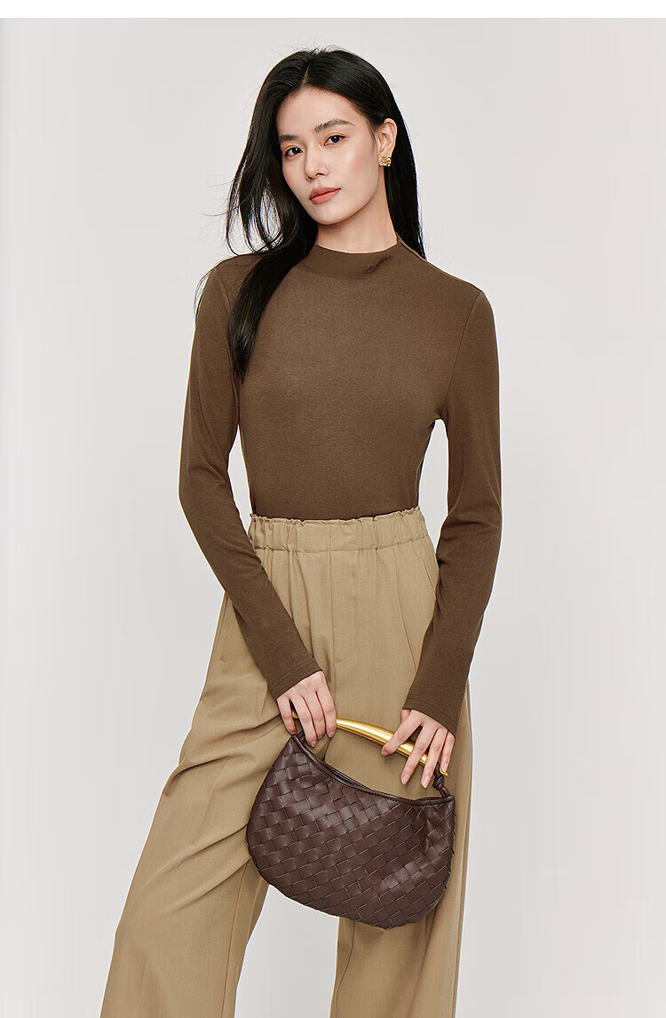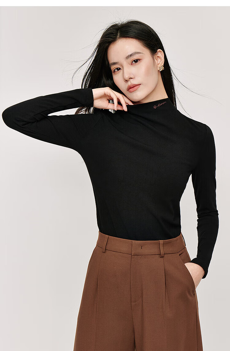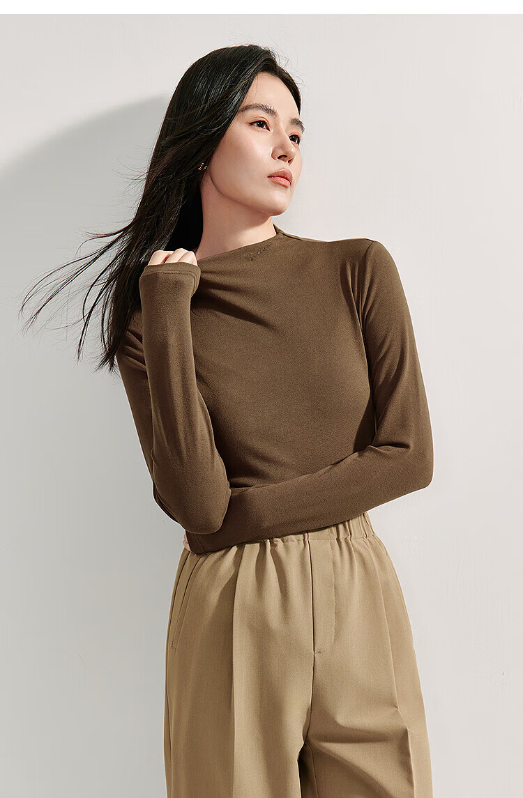 Inman Hyaluronic Acid Skin Beauty T-shirt Autumn Women's Half Turtle Collar Embroidered Slim Fit Bottoming Long Sleeve Top Beige - L