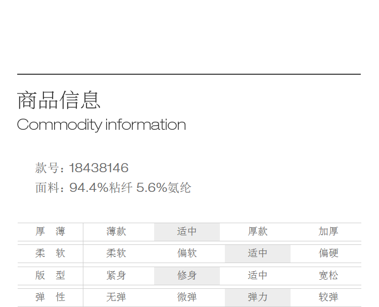 China (cm) 160-165/84-86 165-170 / 88-90 167-172 / 92-96 168-173 / 98-102 170-176 / 106-110