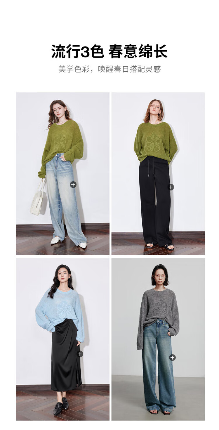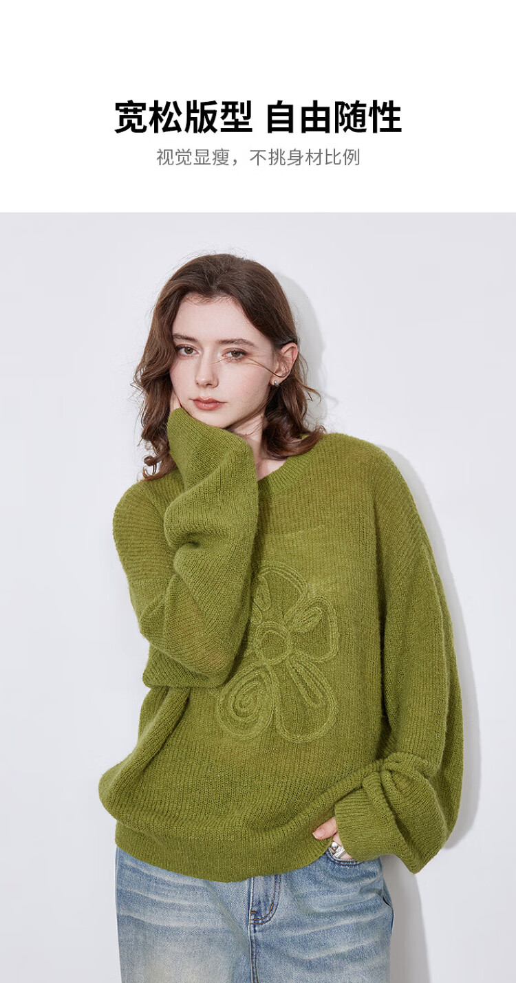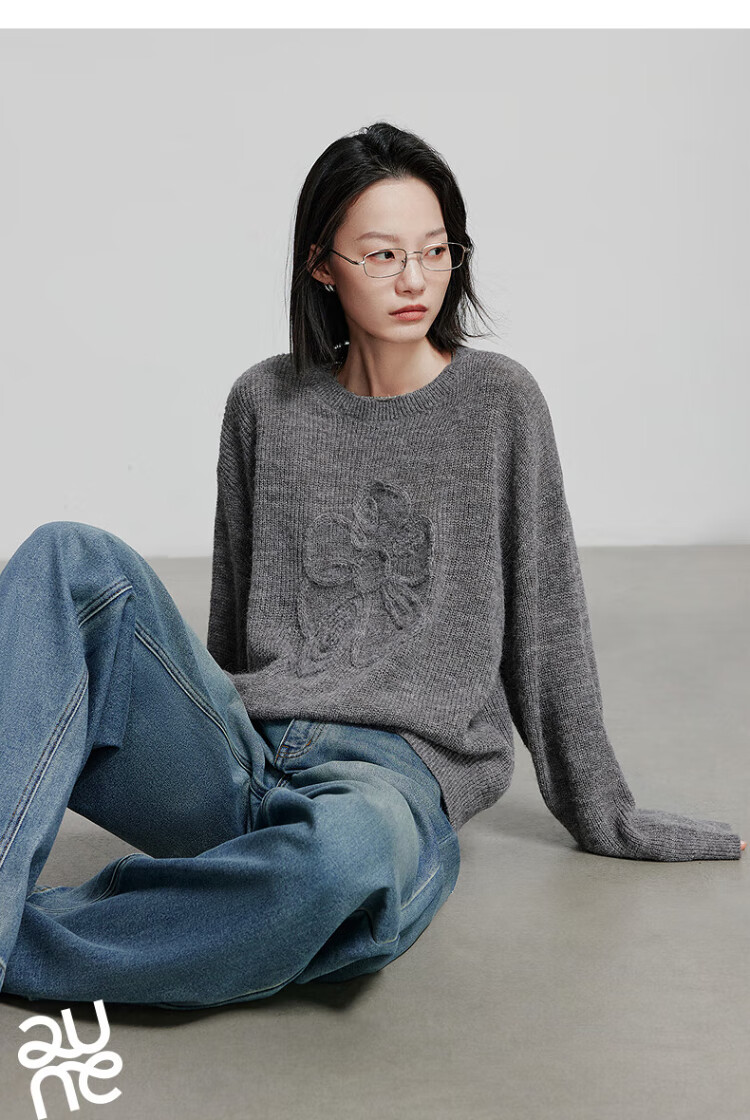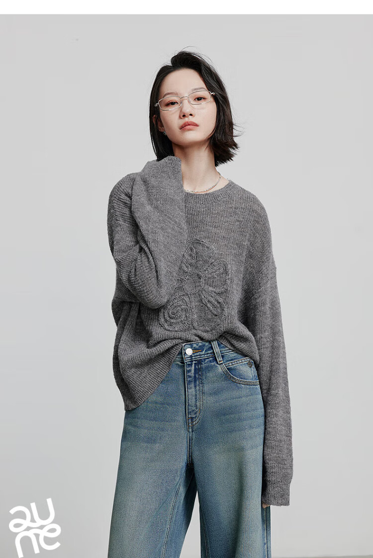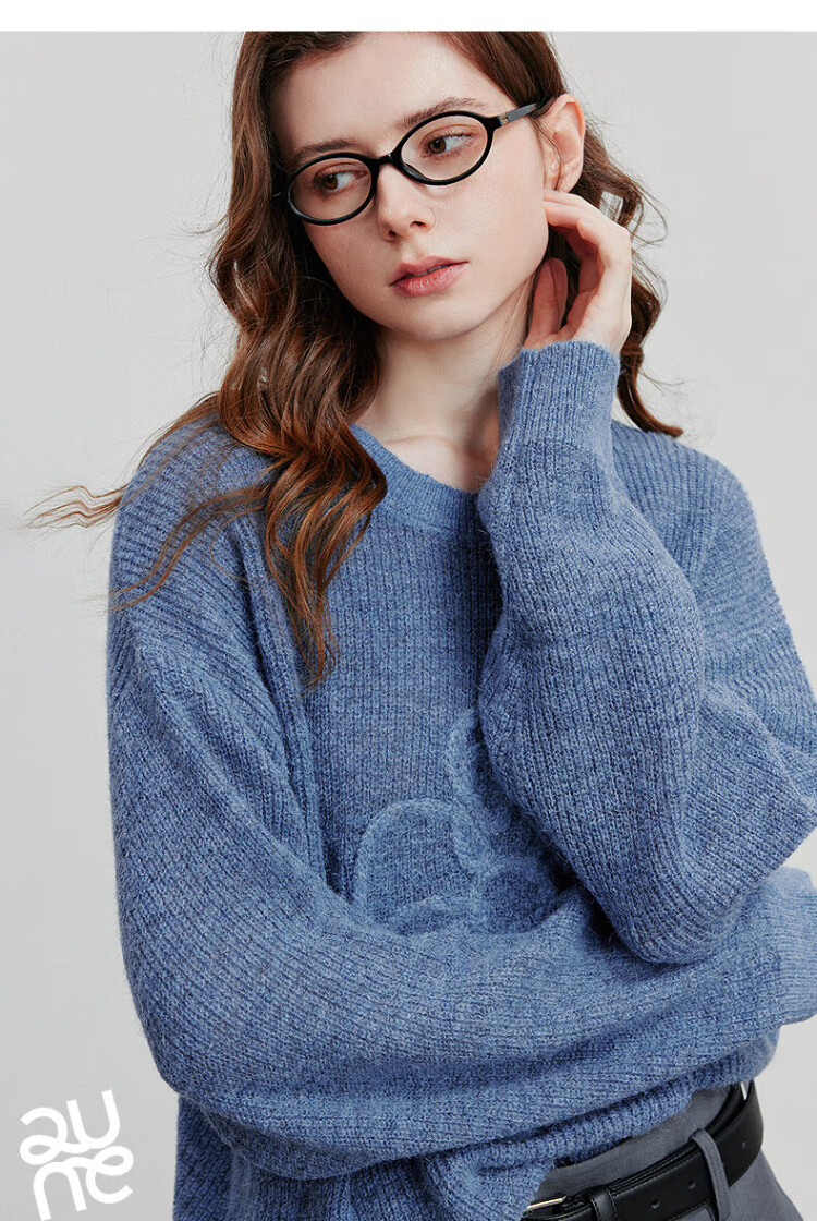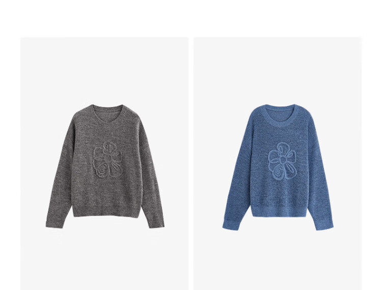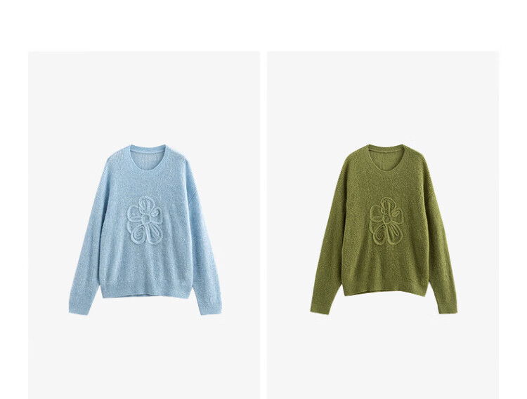 Chuyu three-dimensional floral knitted sweater for women 2025 autumn and winter new style dopamine mohair lazy top haze blue M