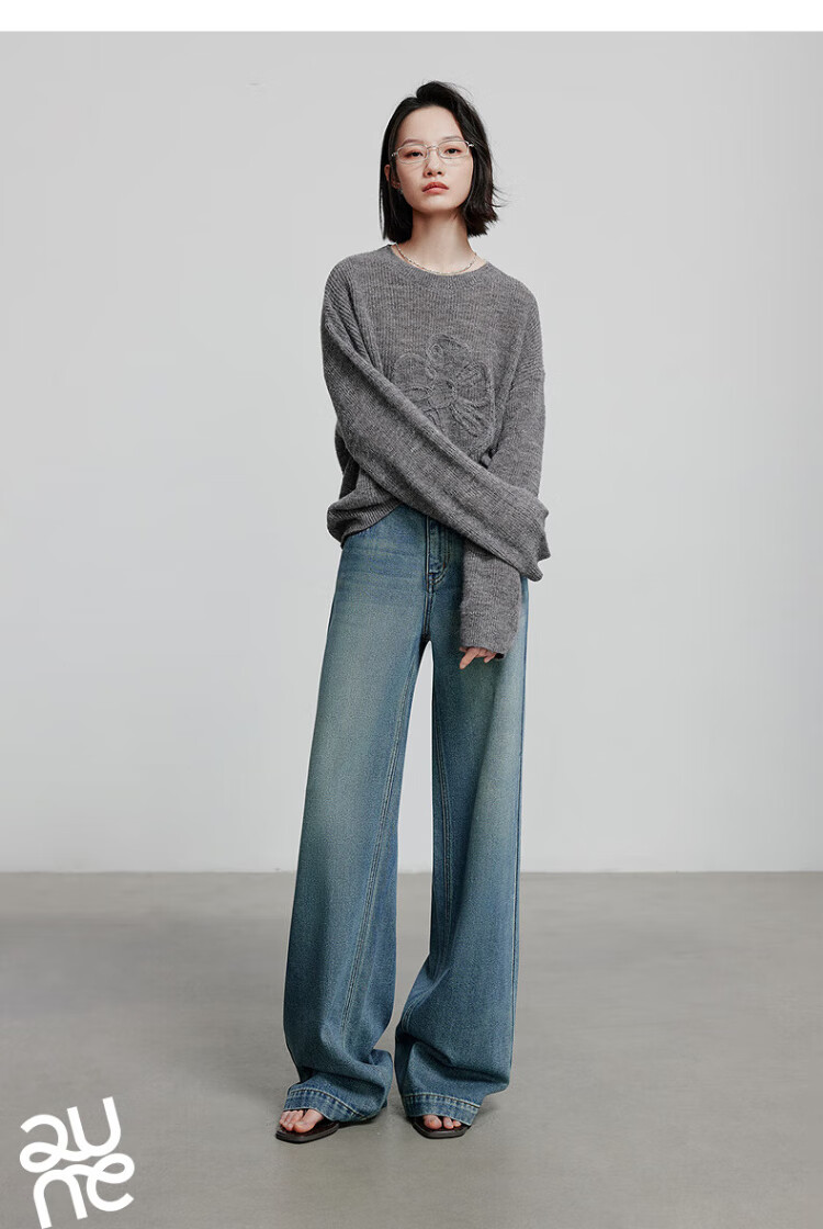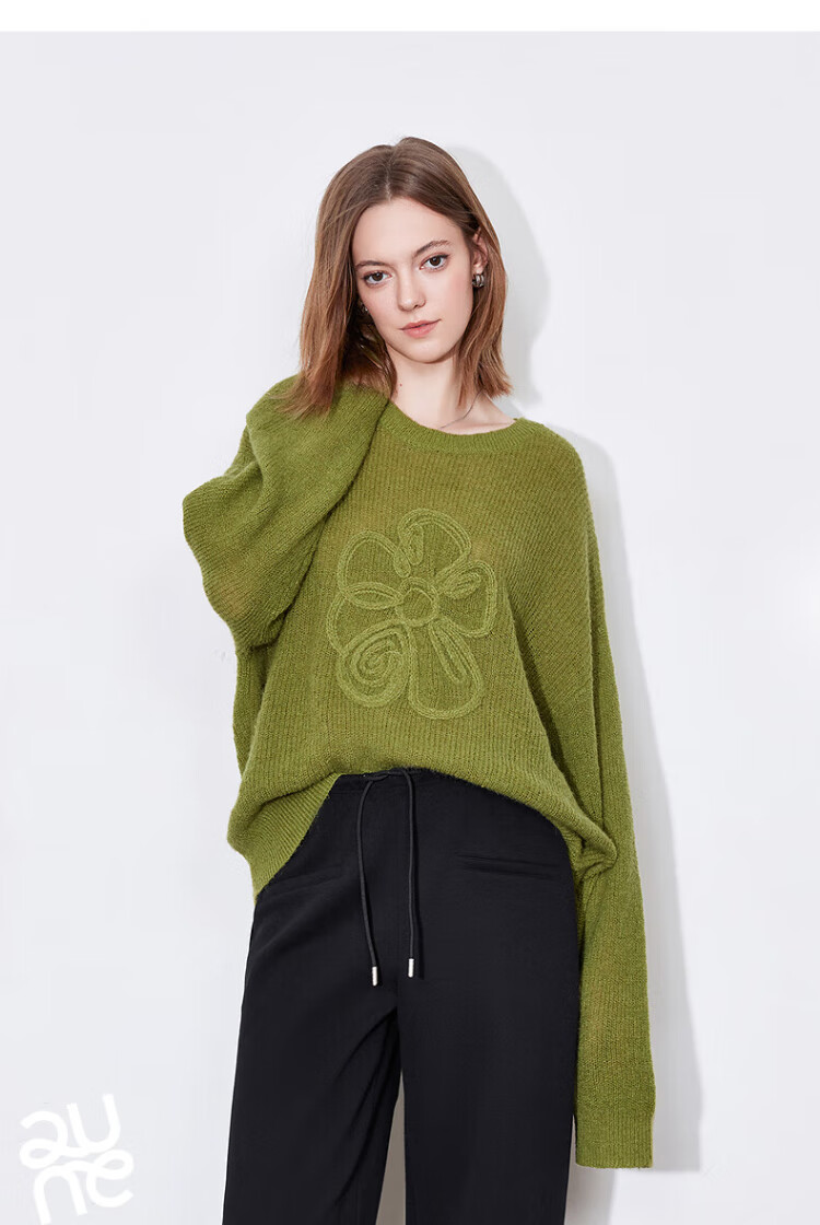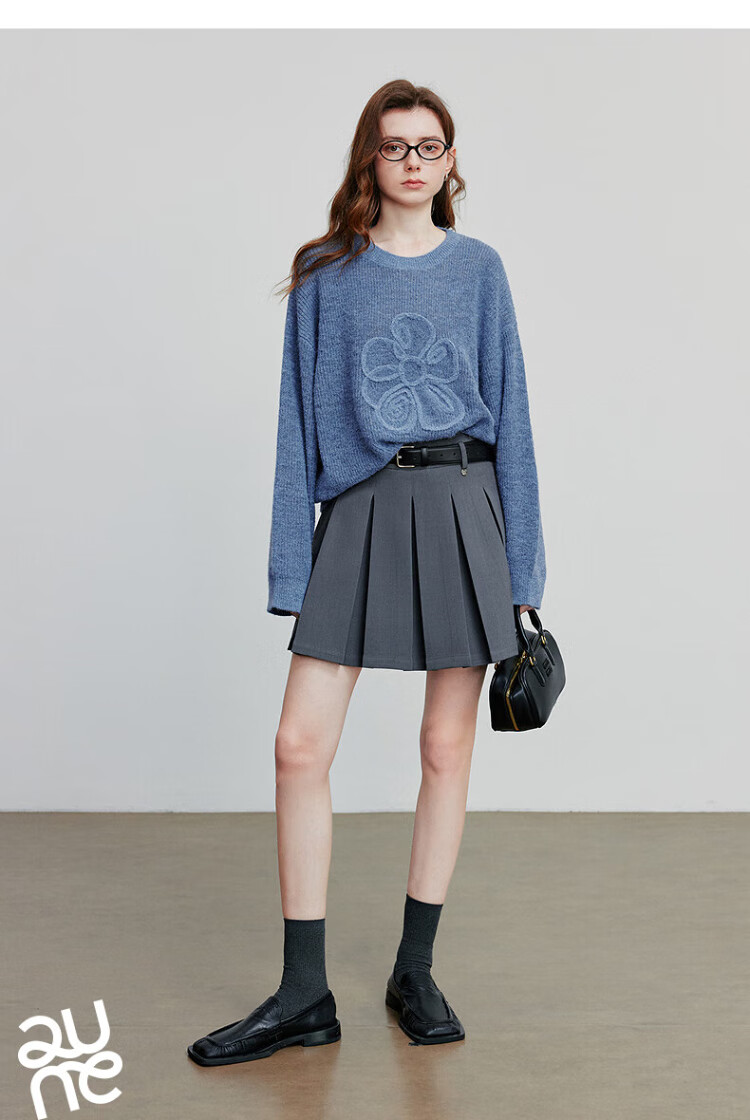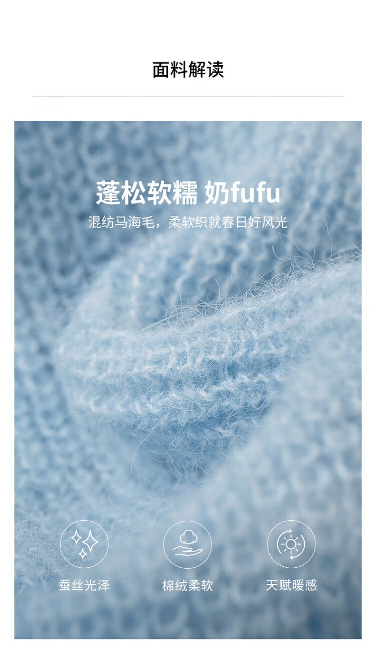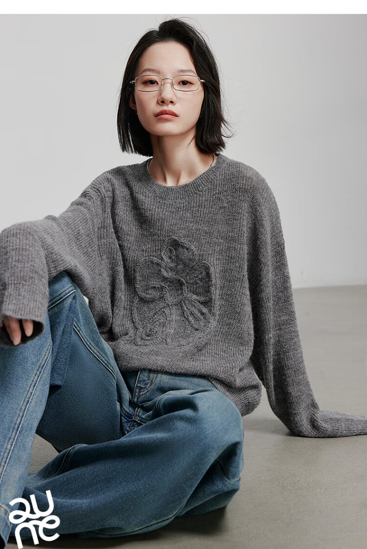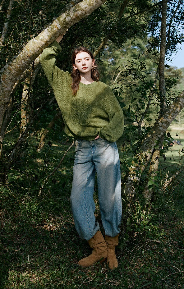 Chuyu three-dimensional floral knitted sweater for women 2025 autumn and winter new style dopamine mohair lazy top haze blue M