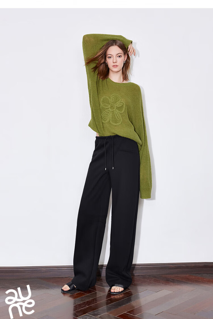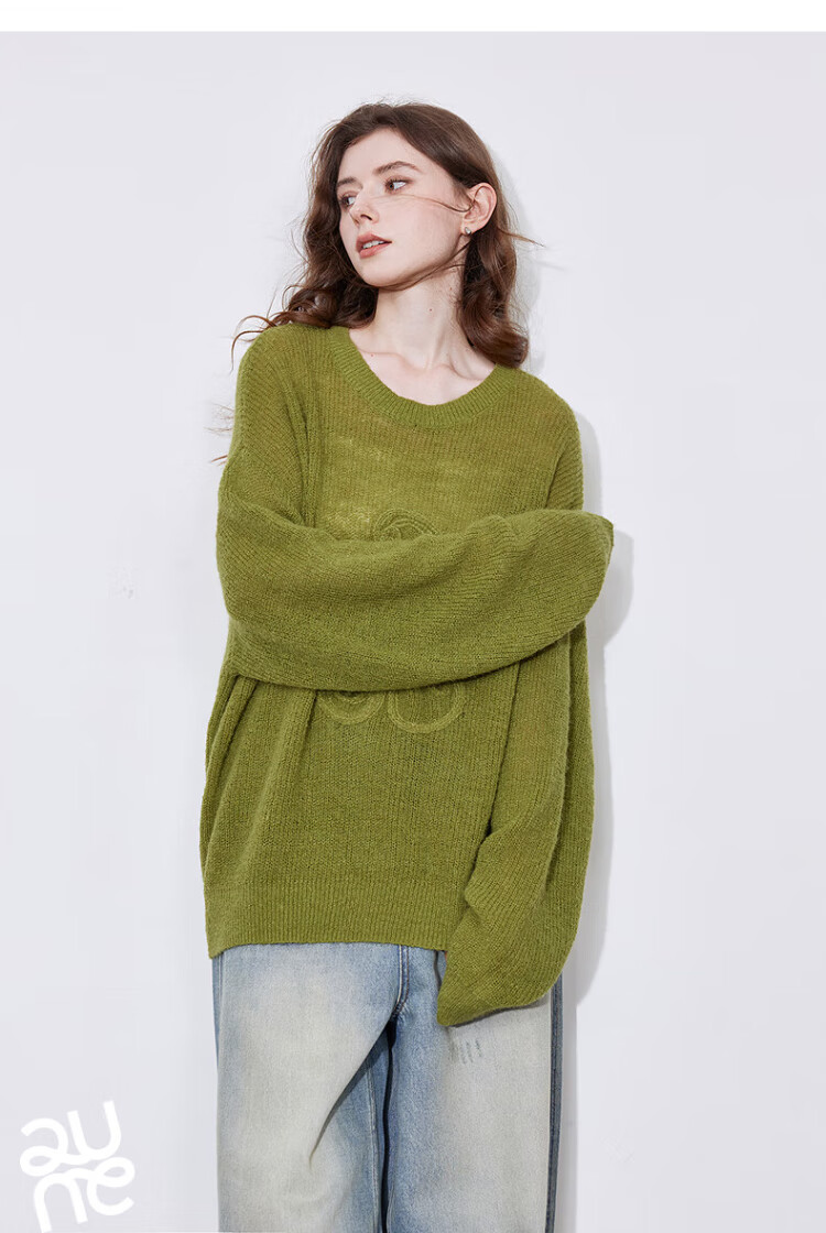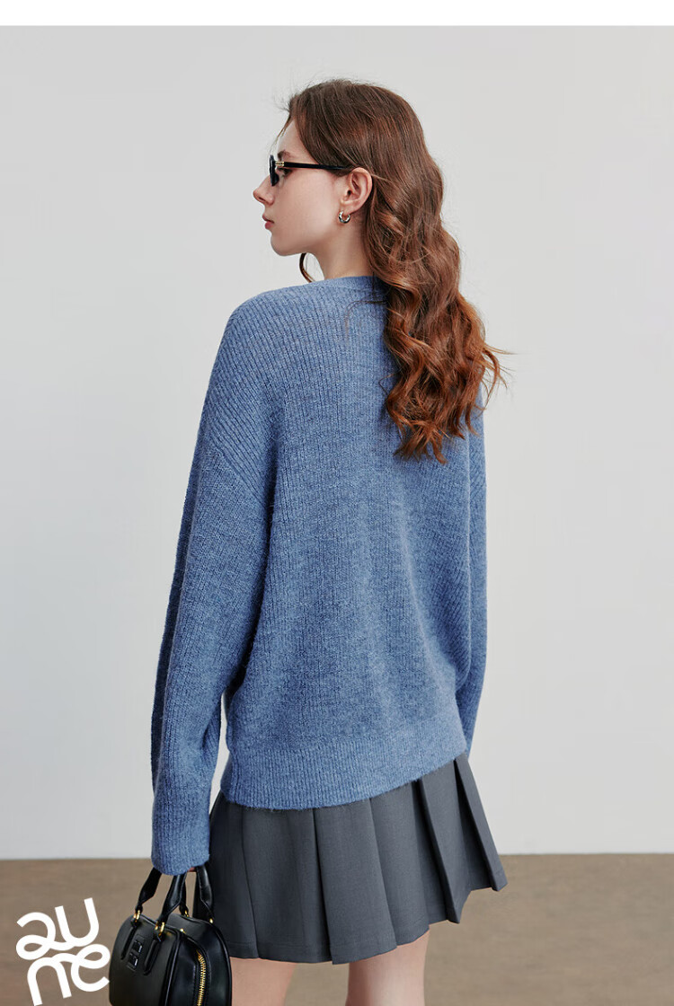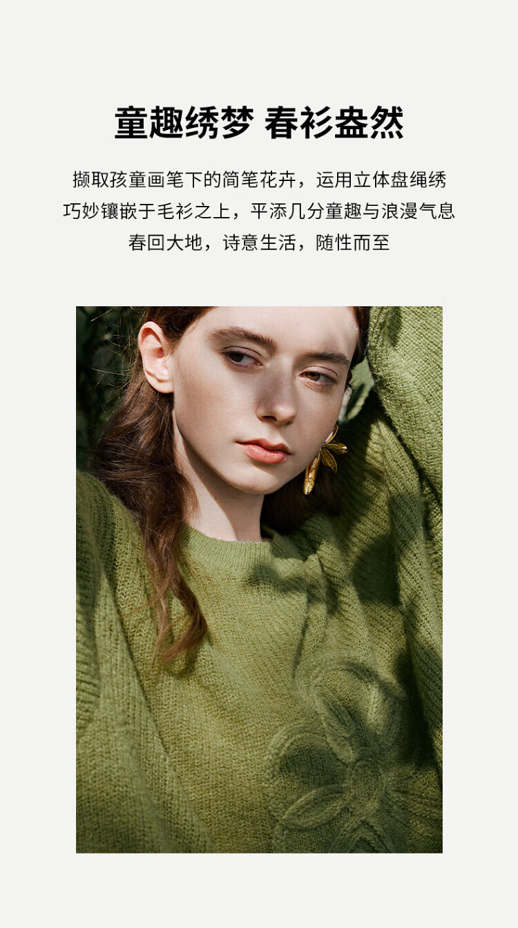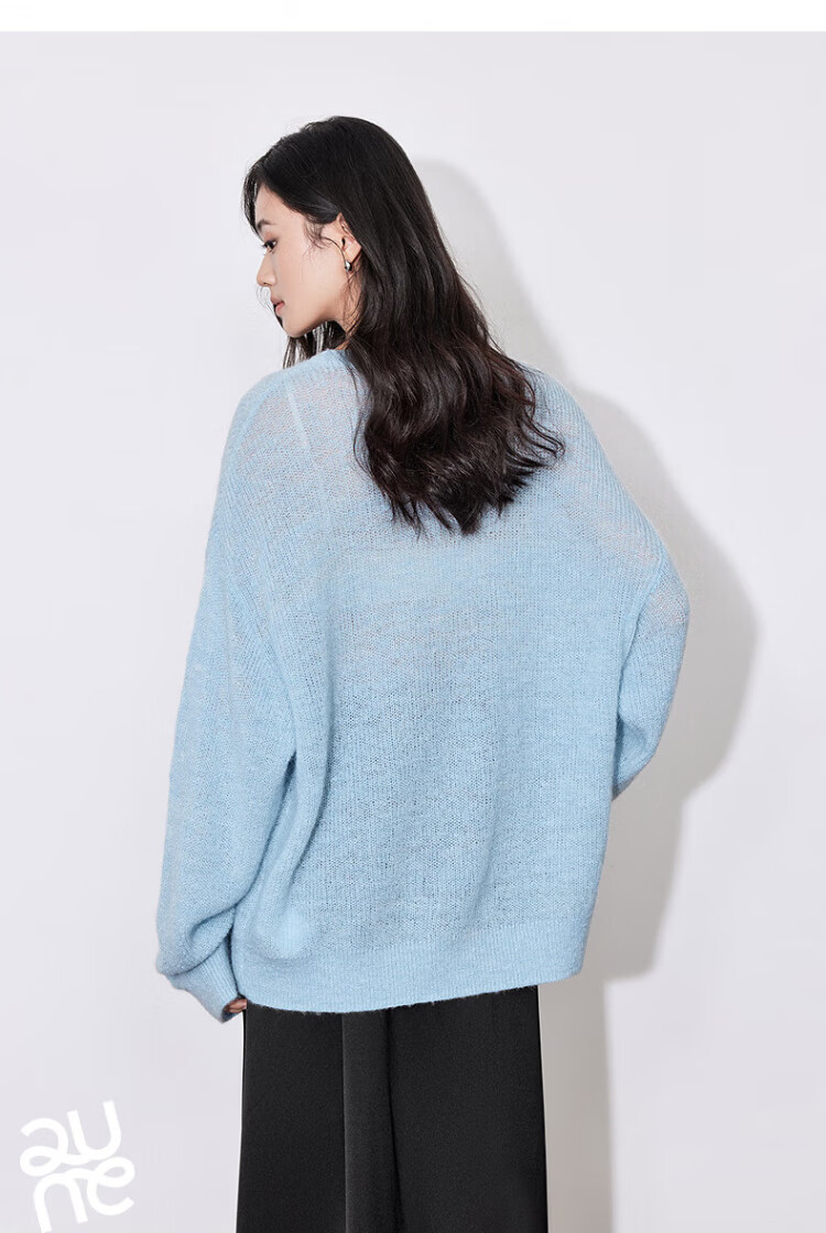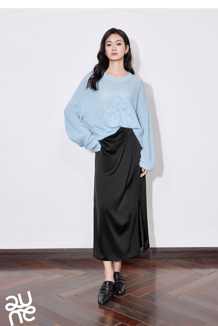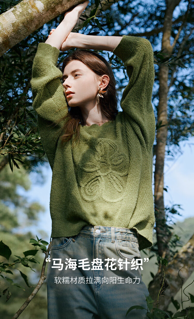 Chuyu three-dimensional floral knitted sweater for women 2025 autumn and winter new style dopamine mohair lazy top haze blue M