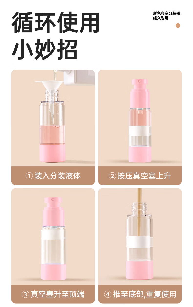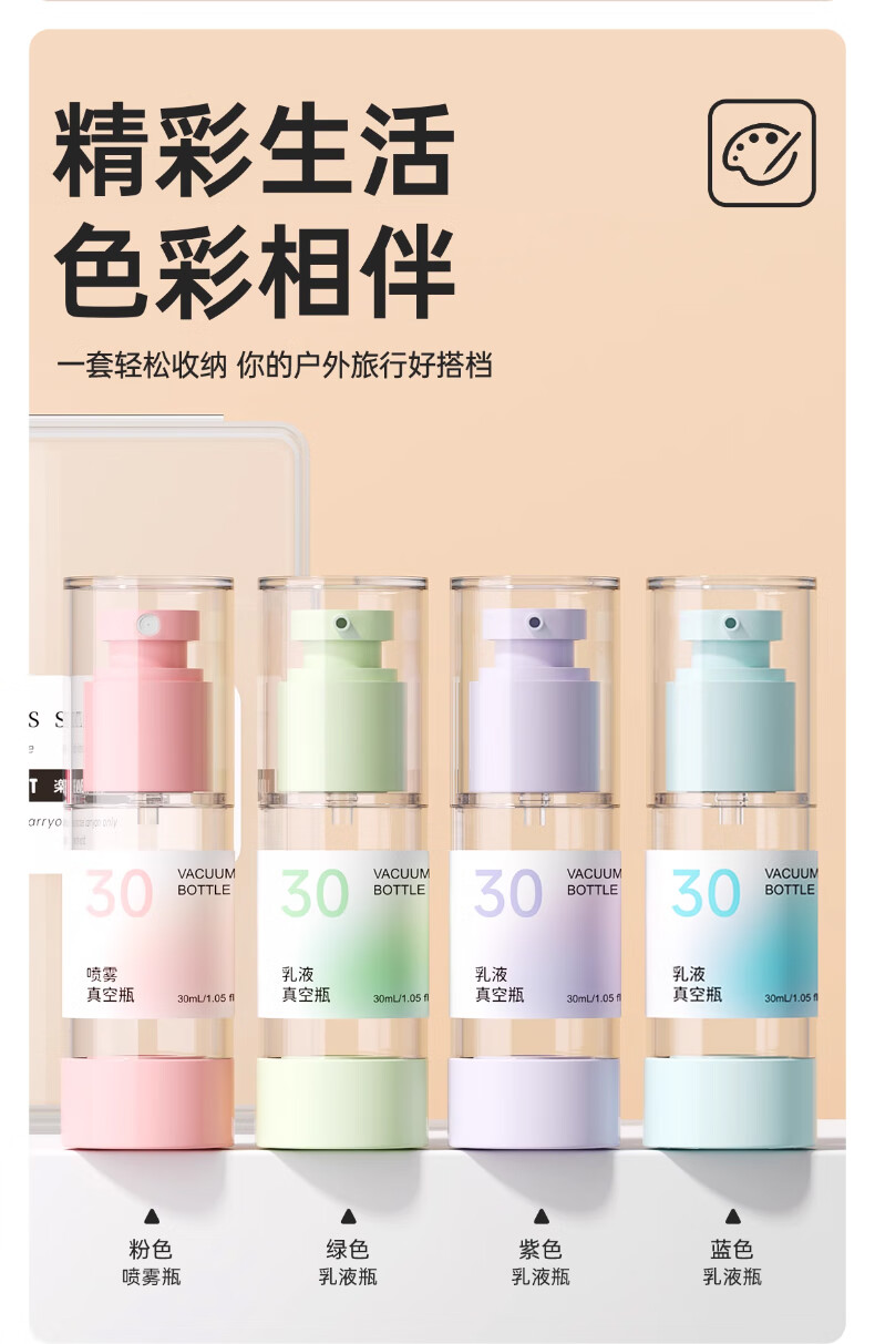 BADIGAO Vacuum Dispensing Bottle Lotion Purple Travel Press Makeup Skin Care Products Shower Gel Sample Short Term Travel Supplies