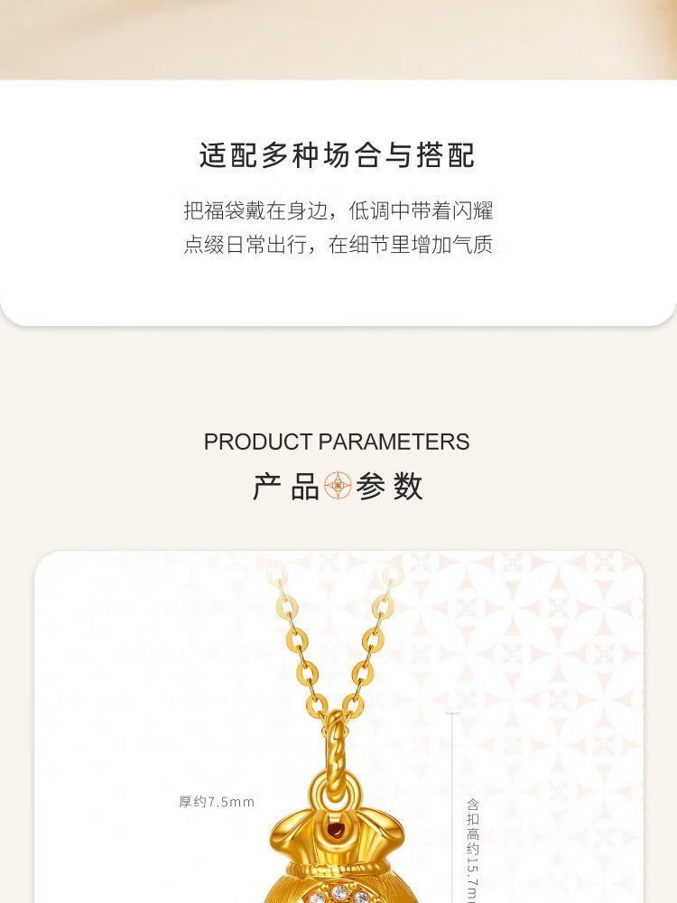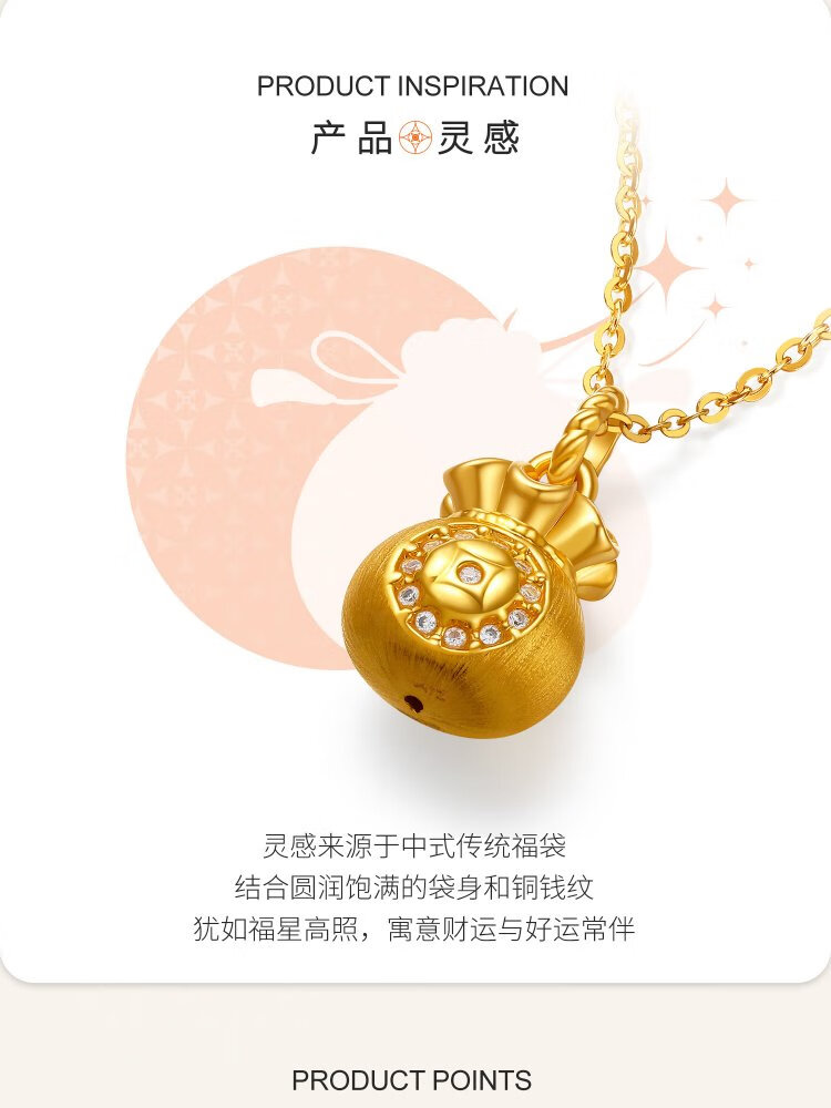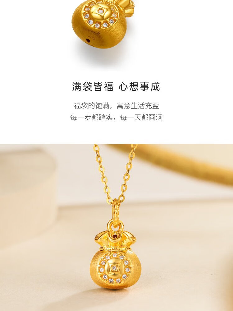 Century Yuan small lucky bag 18K gold pendant as a birthday gift for girlfriend, gold weight 0.17-0.18g