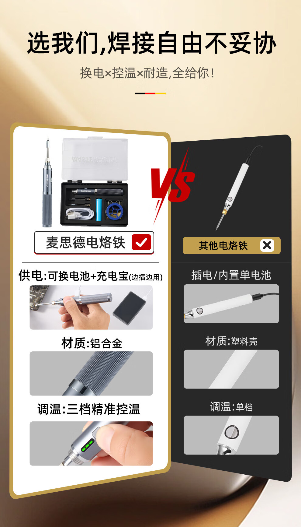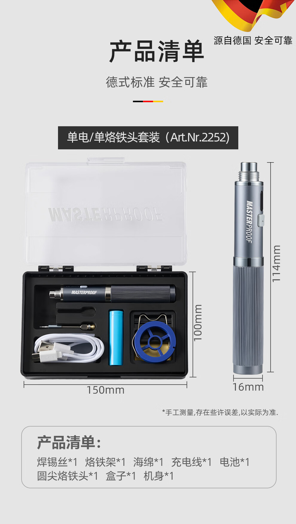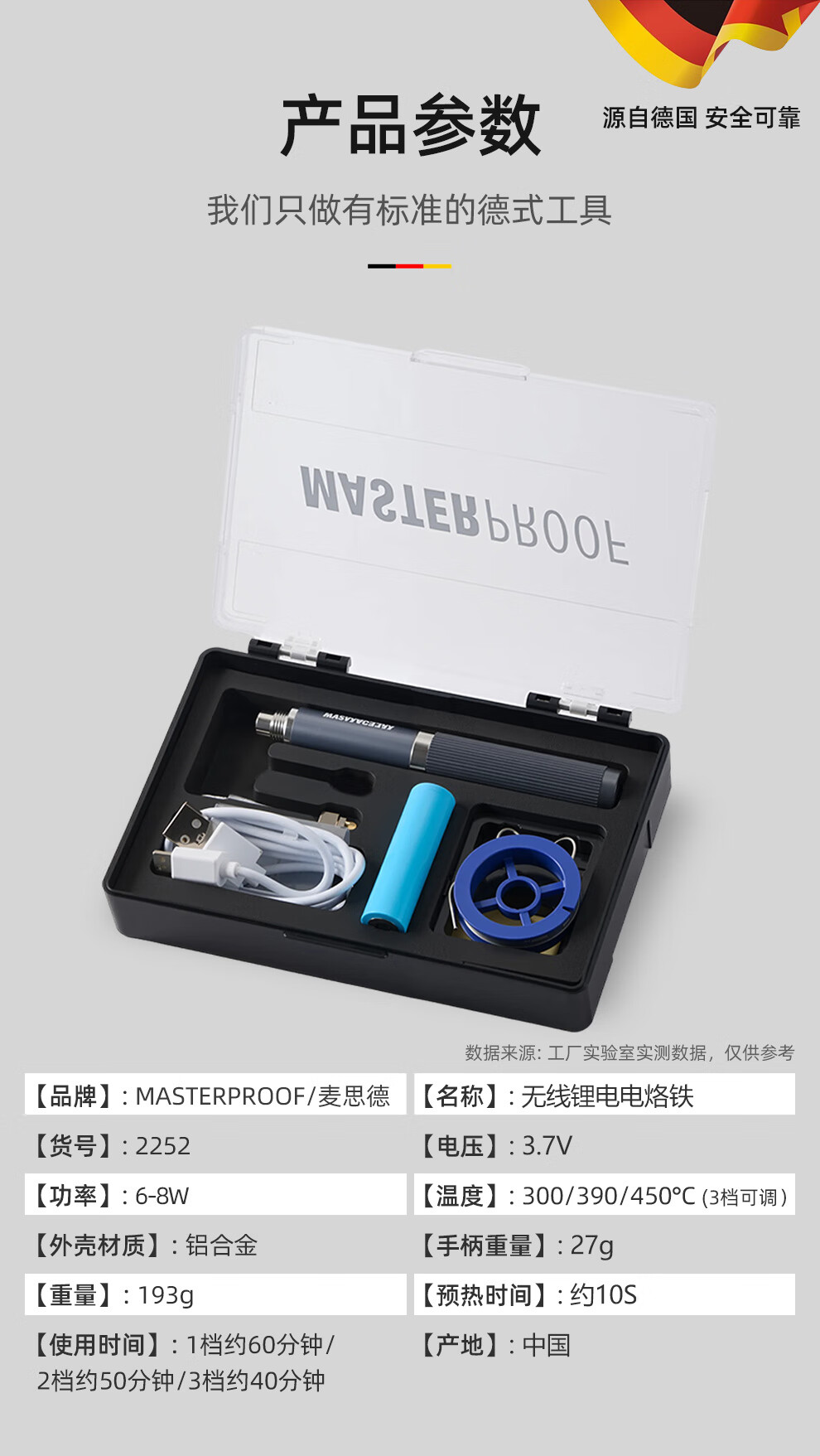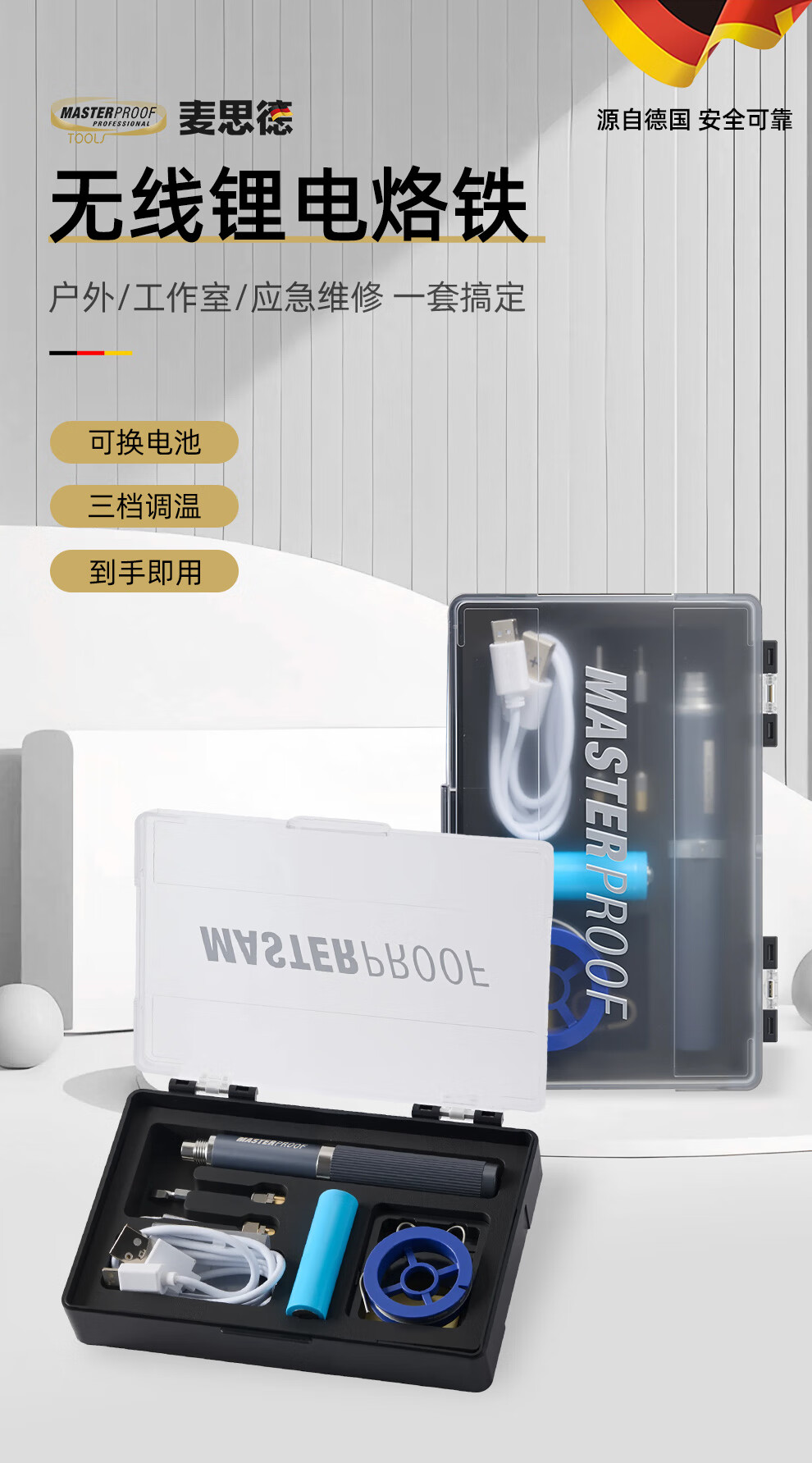MASTERPROOF lithium battery rechargeable soldering iron set household handheld portable wireless temperature-adjustable digital display soldering iron