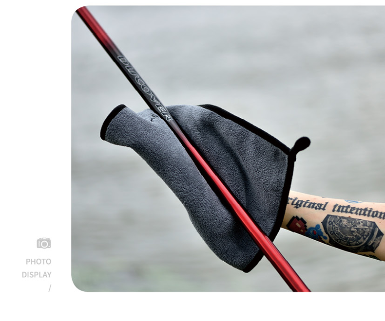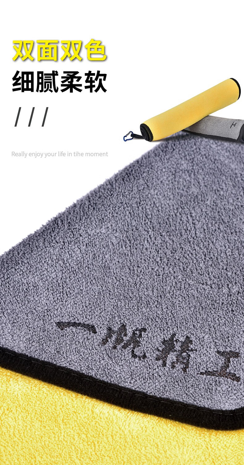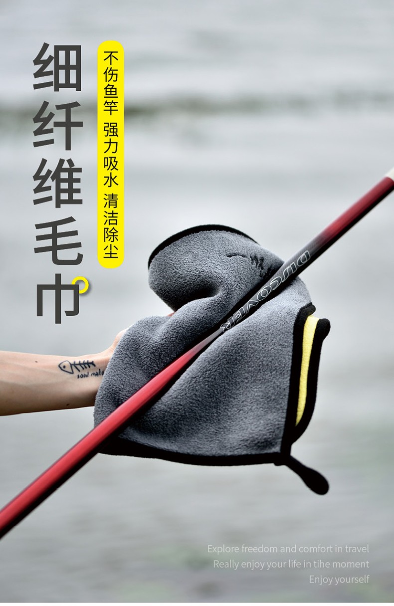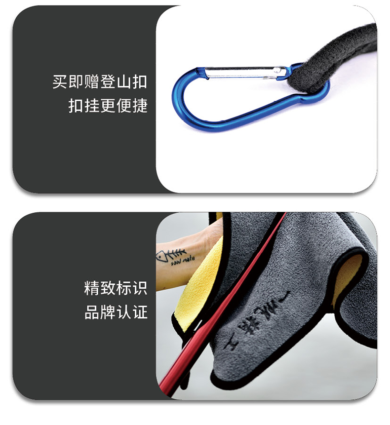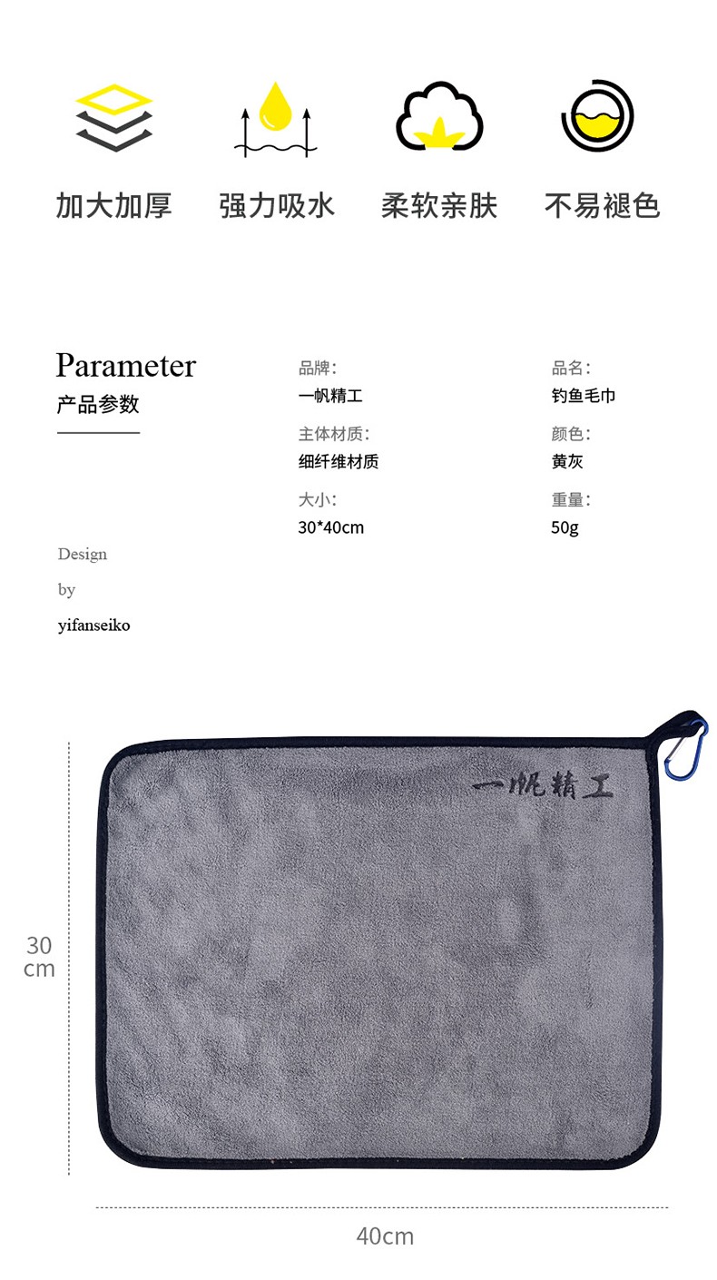Yifan Seiko fishing towel special hanging buckle non-stick bait hand towel thickened portable absorbent fiber rod wiping cloth gray yellow 30*40cm 1 piece, with carabiner fishing towel