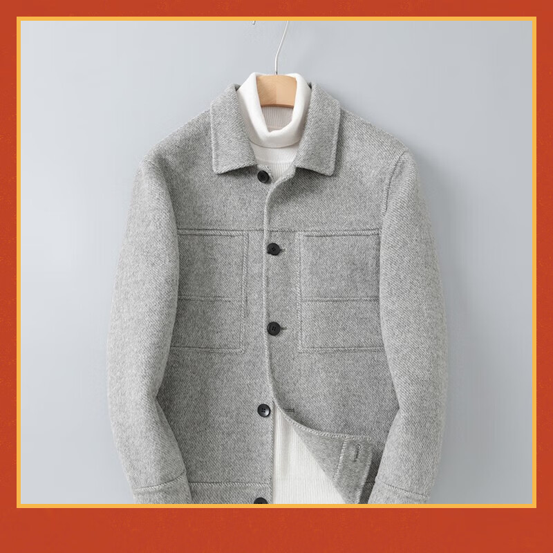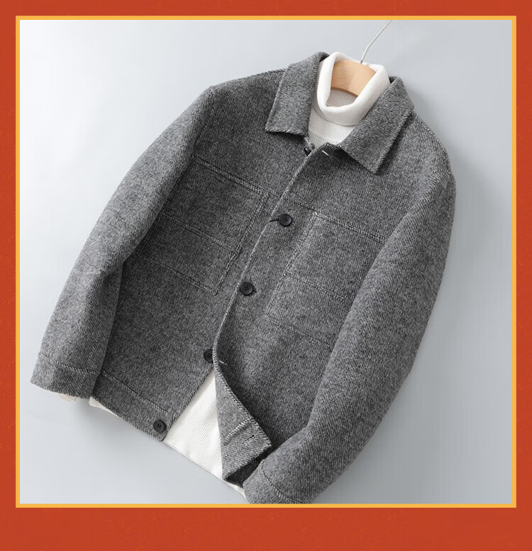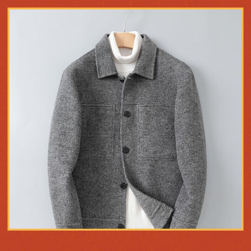 Doberman double-sided wool jacket men's short British Albaka alpaca wool coat wool coat gray XL