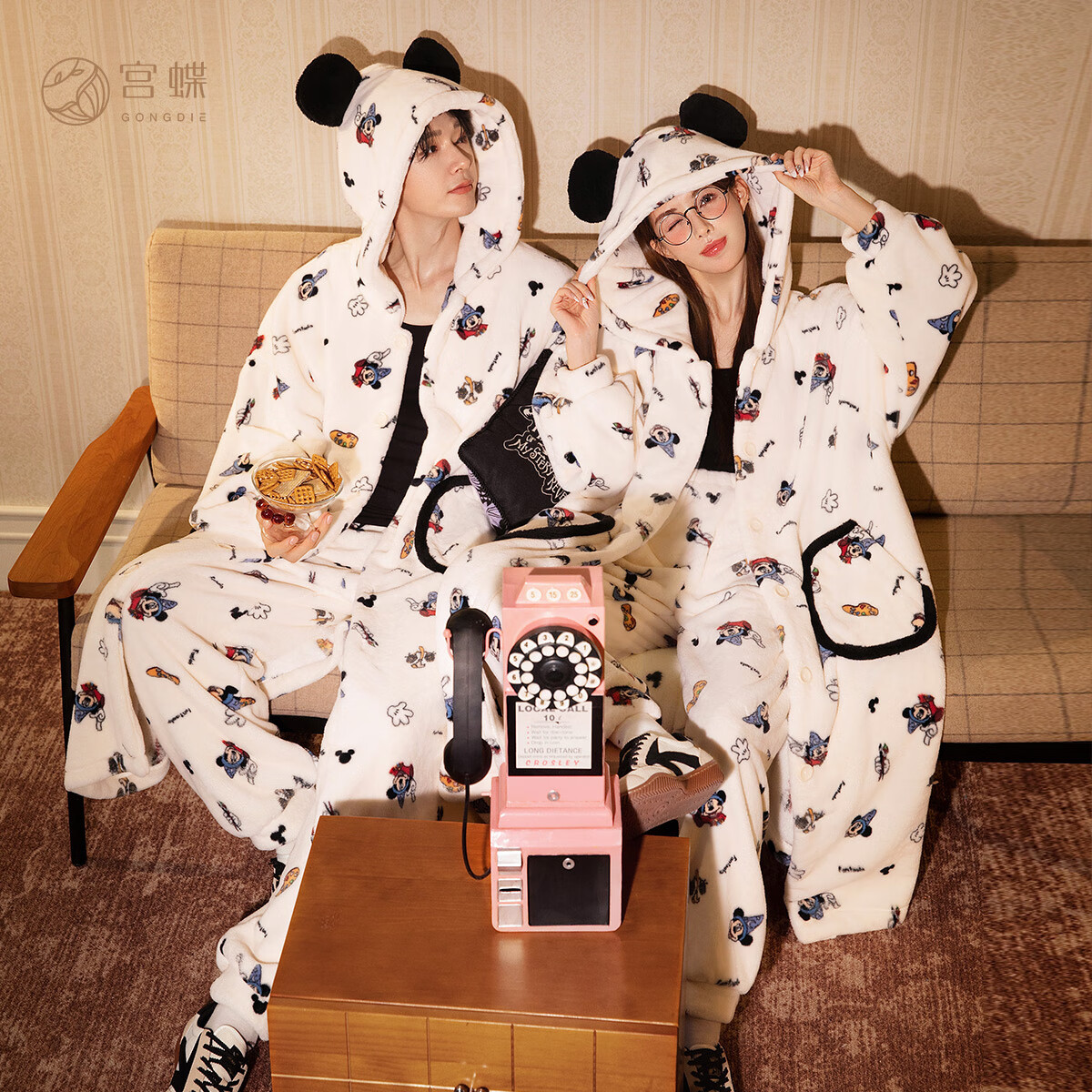 Gongdie Thermal Storage Disney Mickey Couple Pajamas for Women Winter Anti-static Flannel Pajamas Set for Men