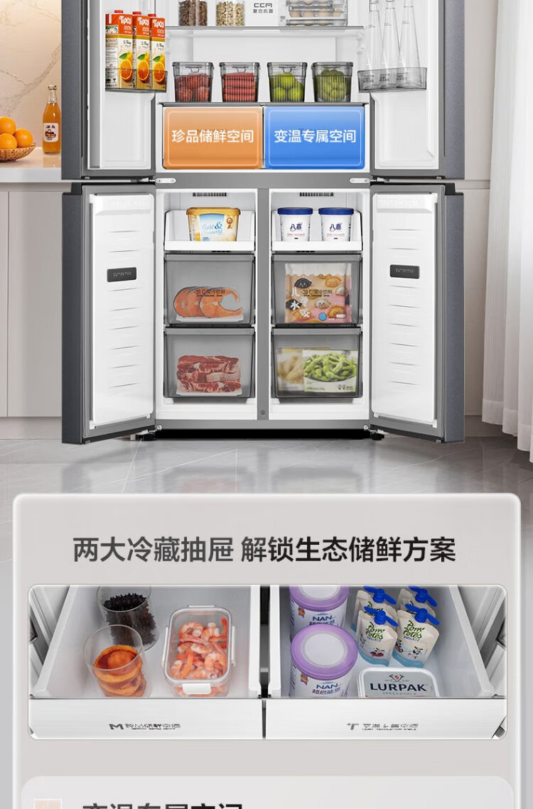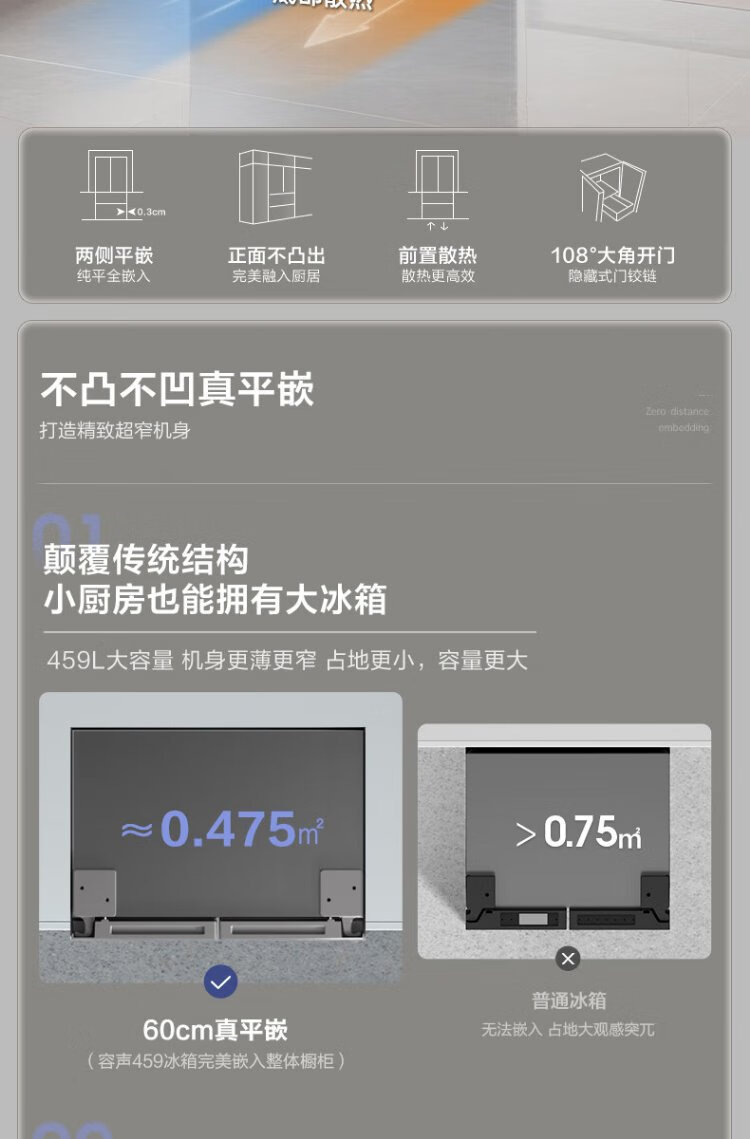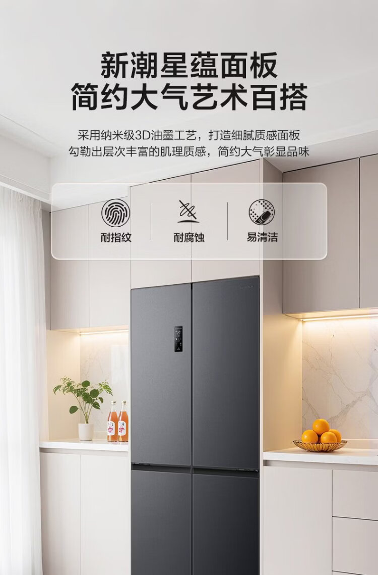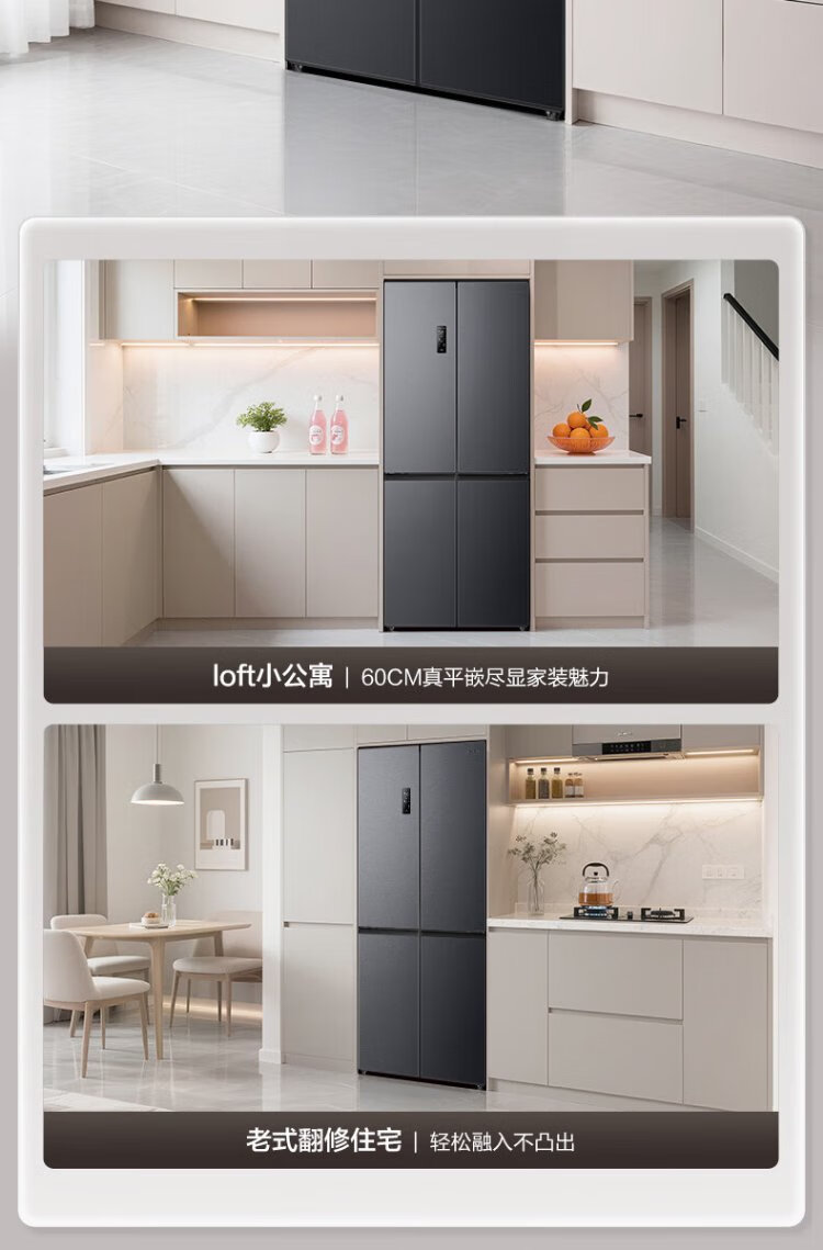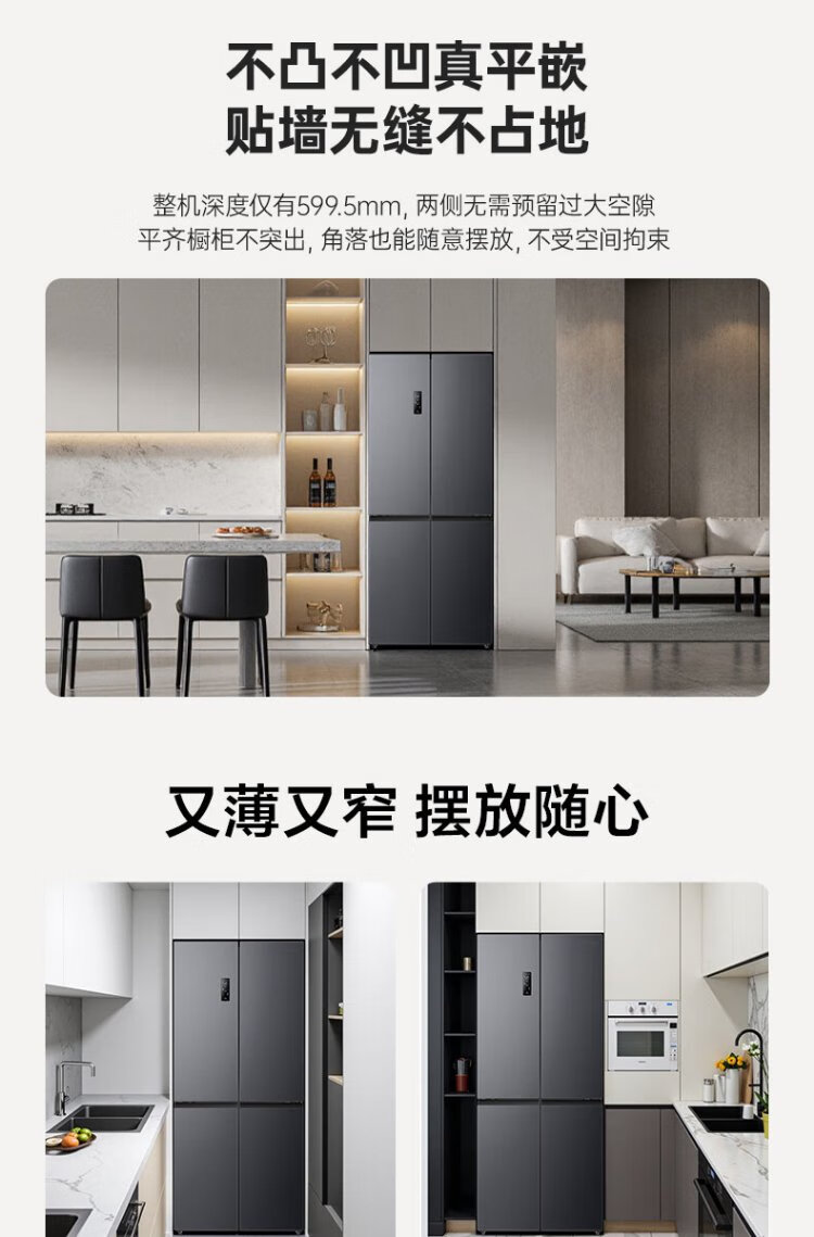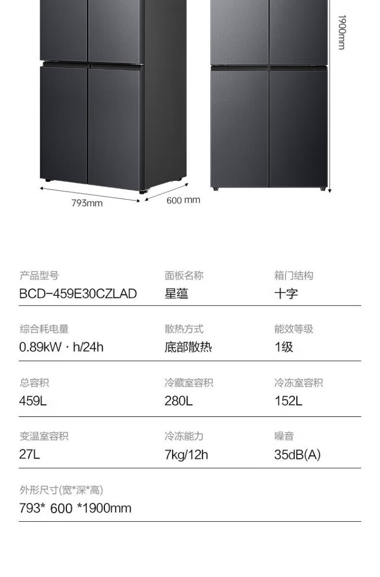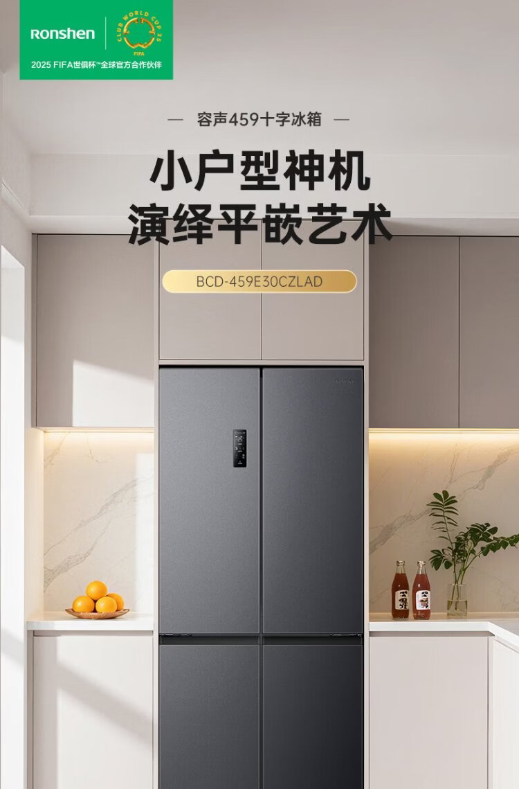 Ronshen 459-liter cross-door ultra-thin embedded flat-mounted refrigerator household air-cooled frost-free first-class energy efficiency energy saving renewal subsidy BCD-459E30CZLAD