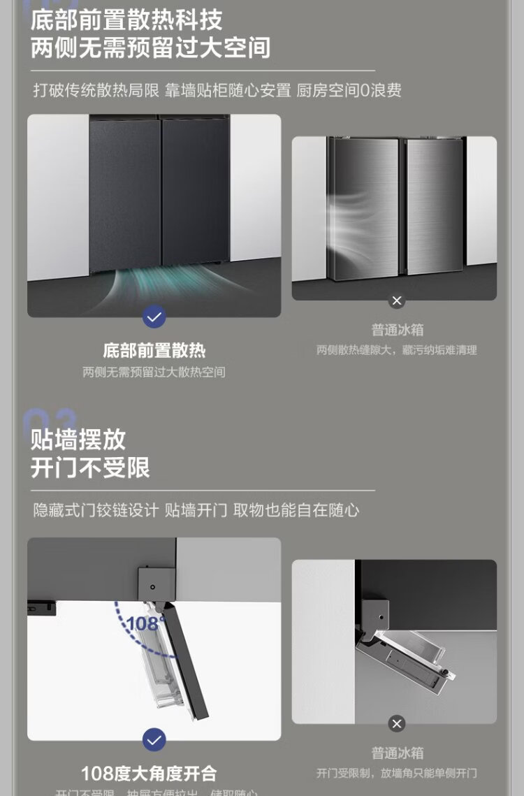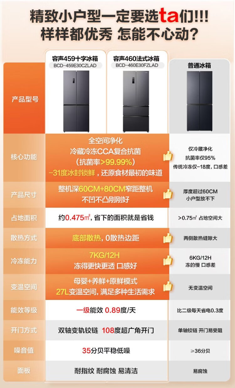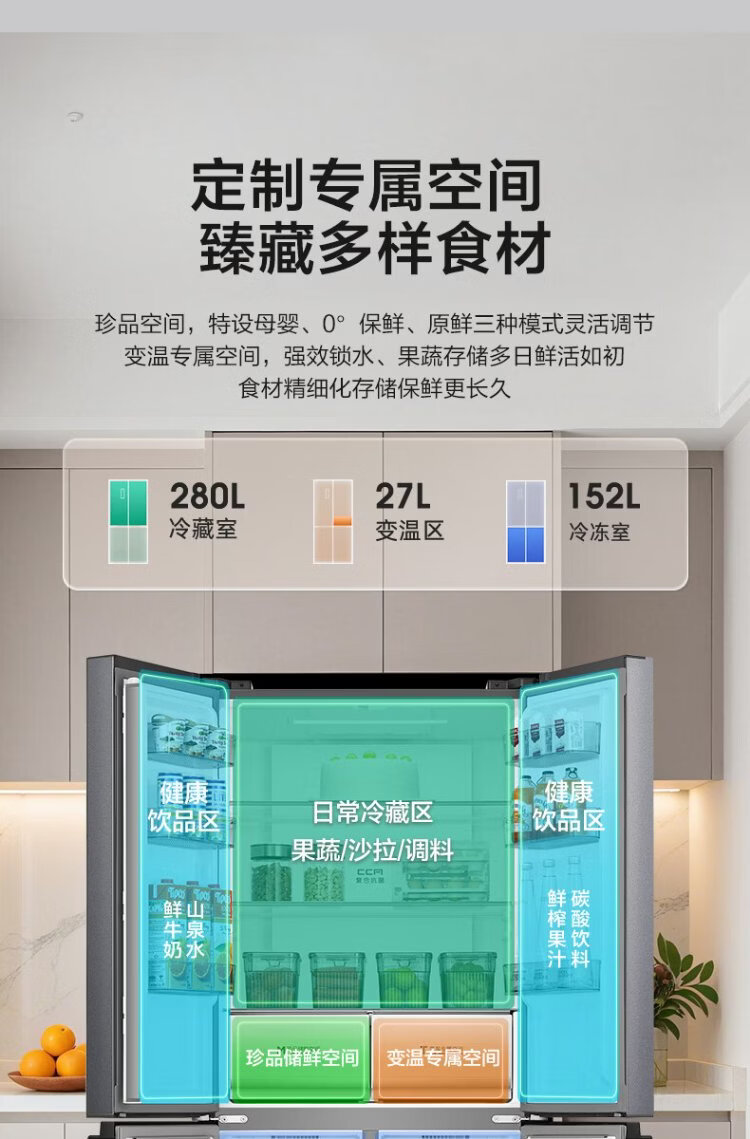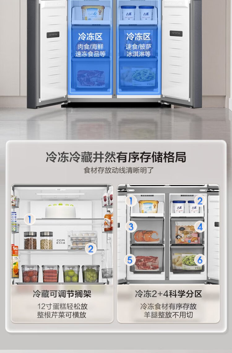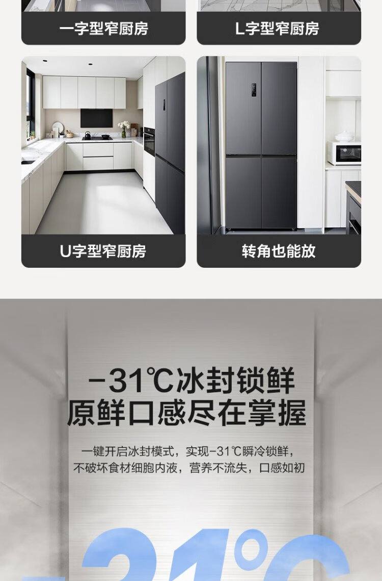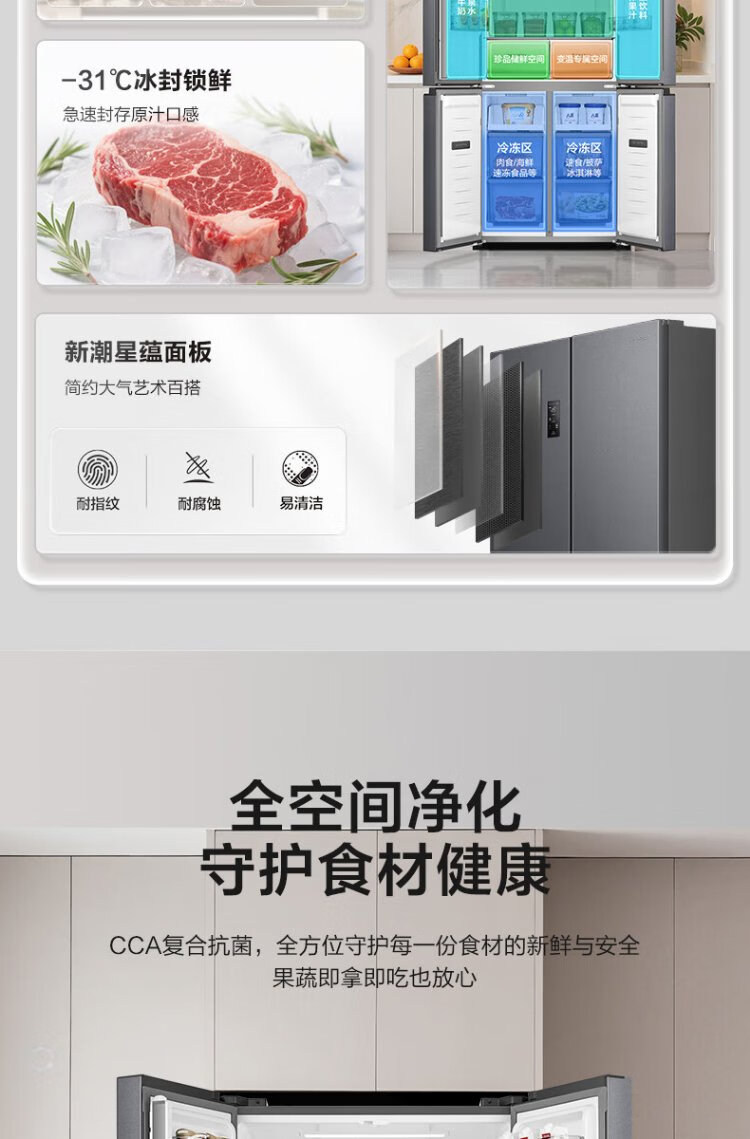 Ronshen 459-liter cross-door ultra-thin embedded flat-mounted refrigerator household air-cooled frost-free first-class energy efficiency energy saving renewal subsidy BCD-459E30CZLAD