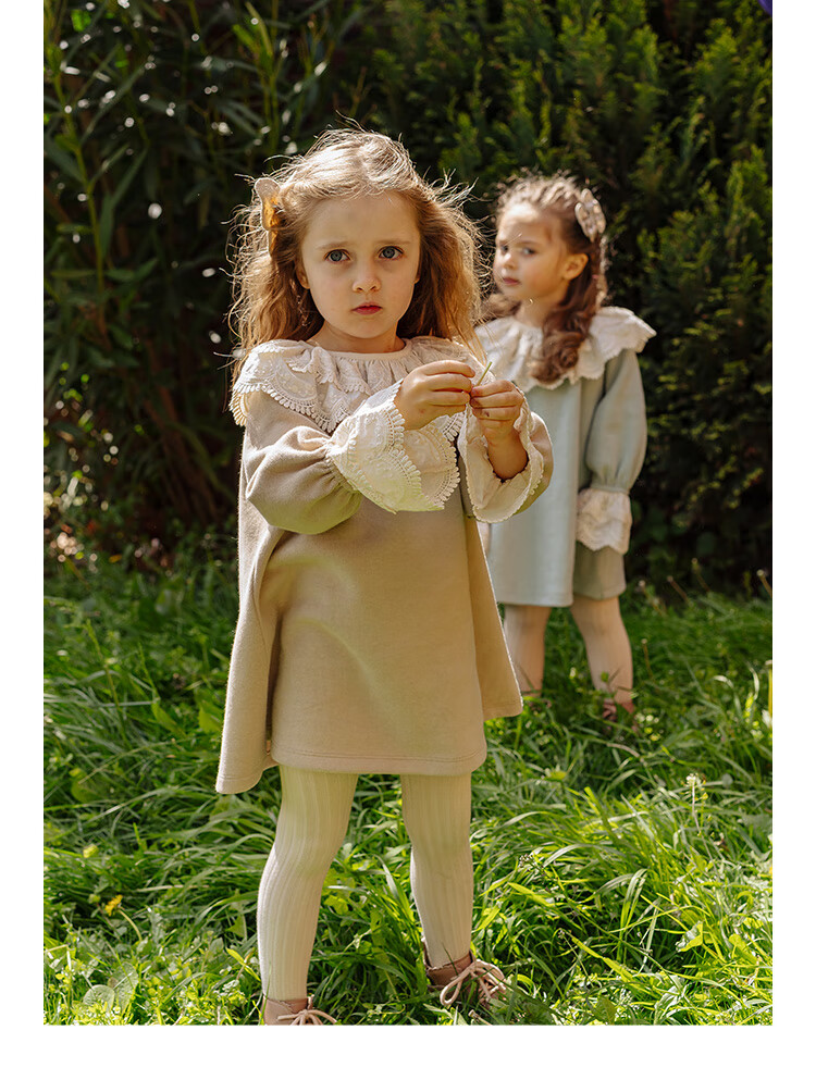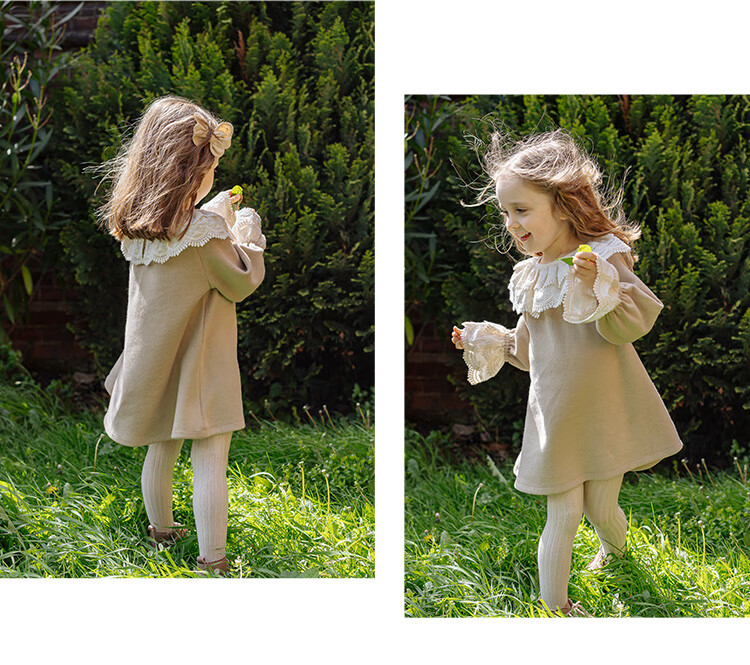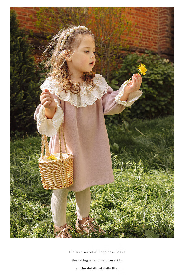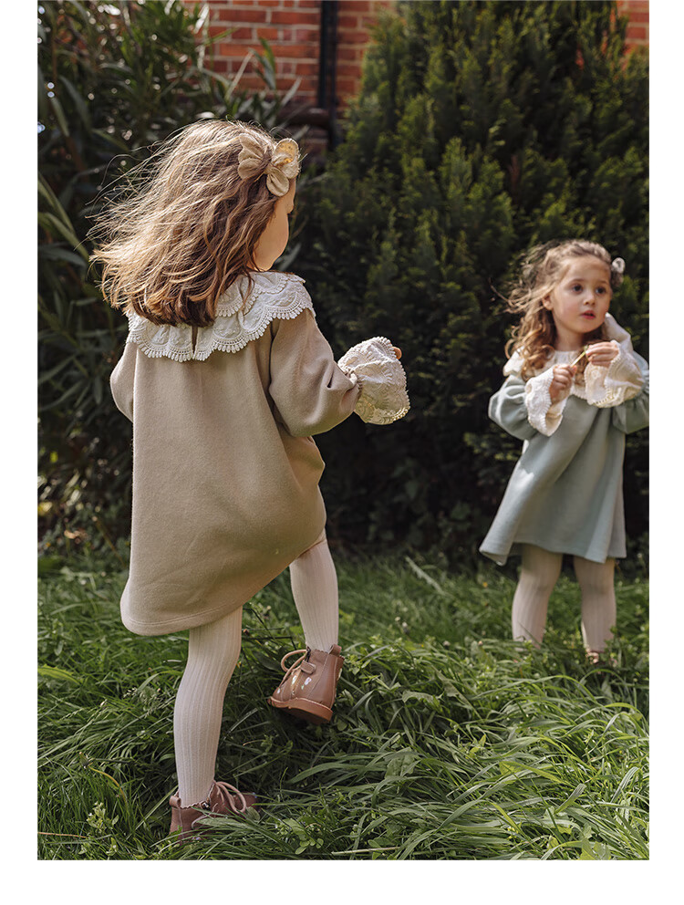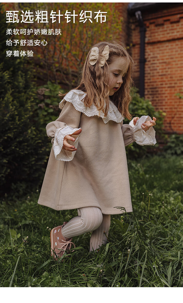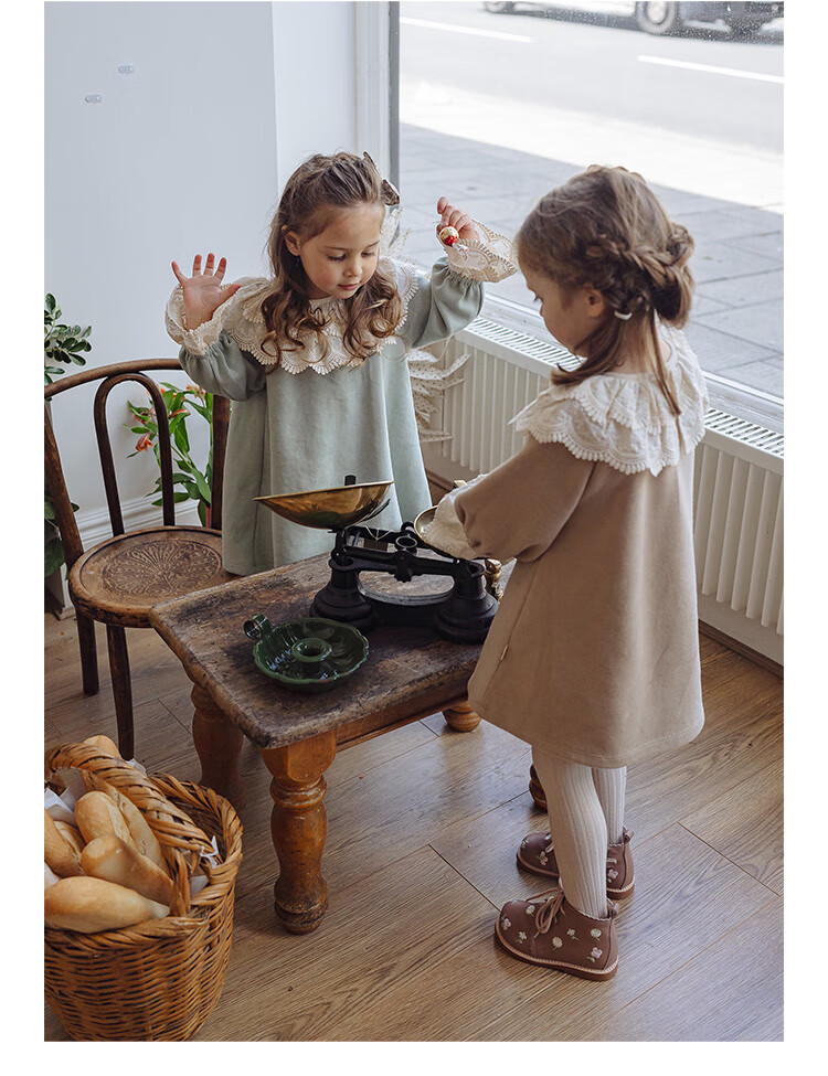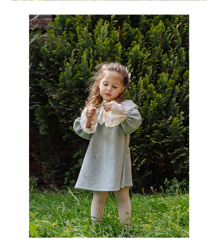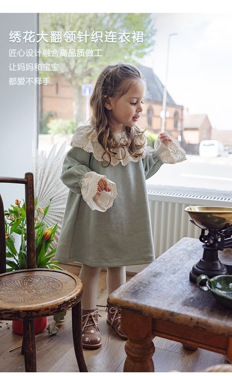 Happyology British children's spring and autumn embroidered skirt knitted large lapel girls' children's clothing dress