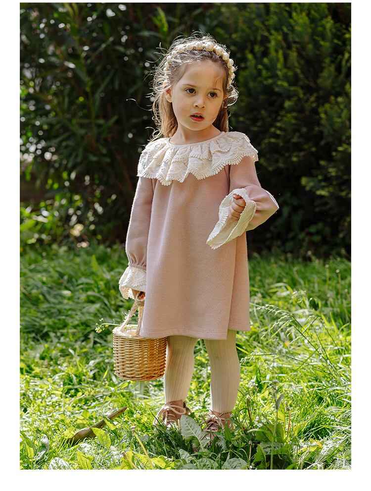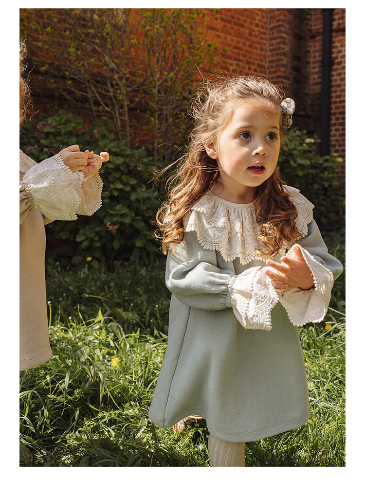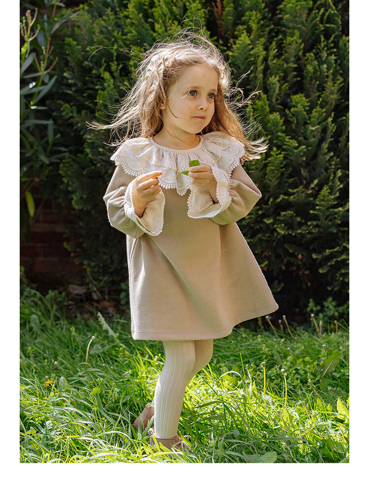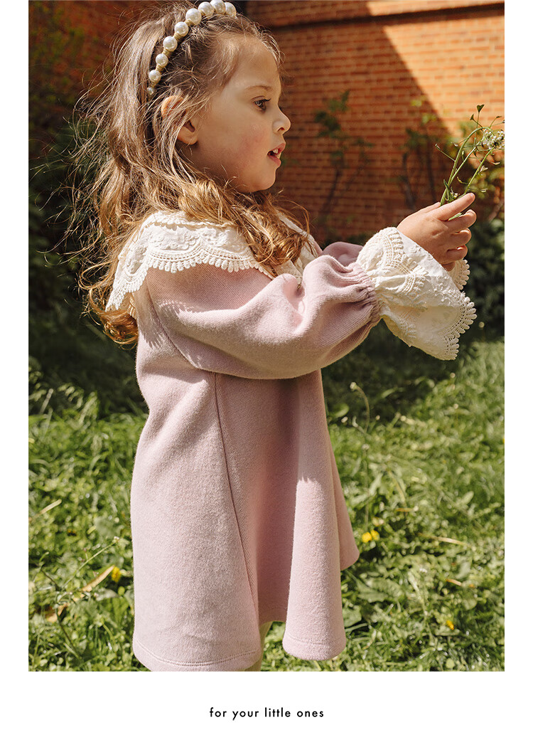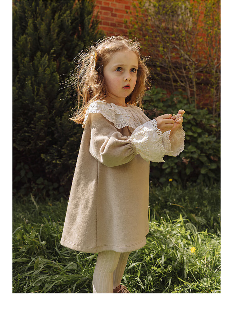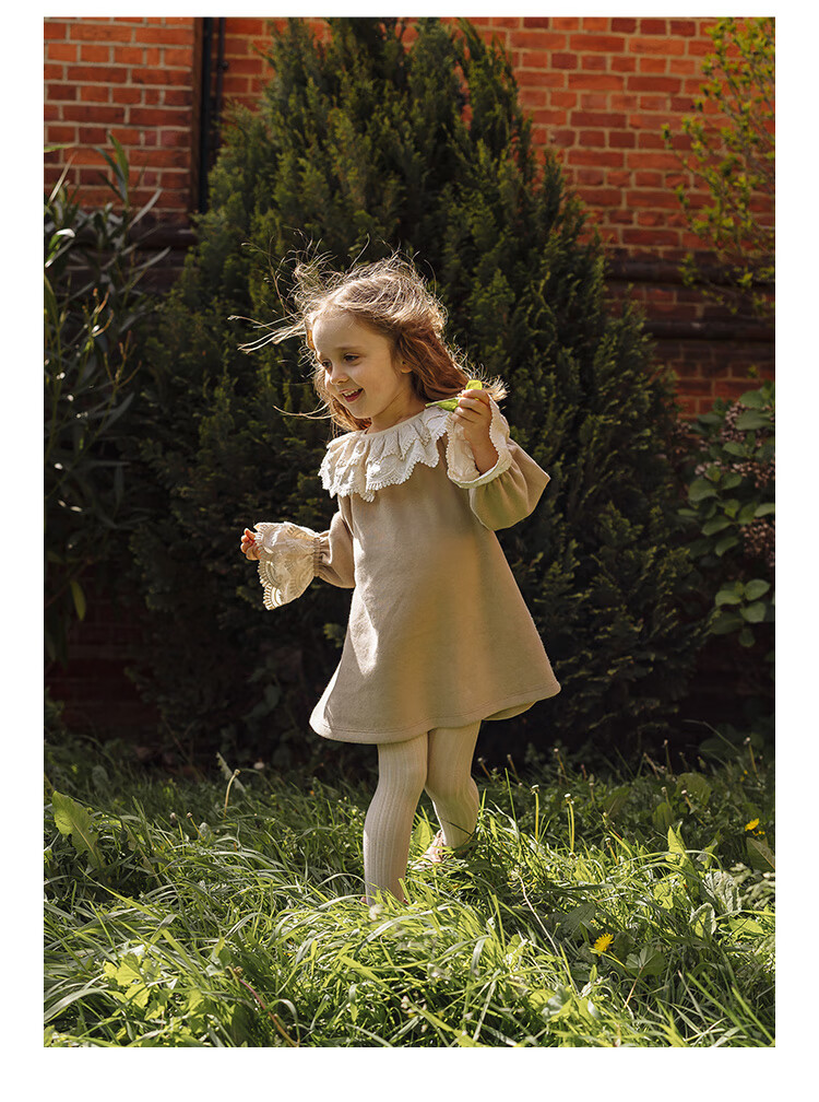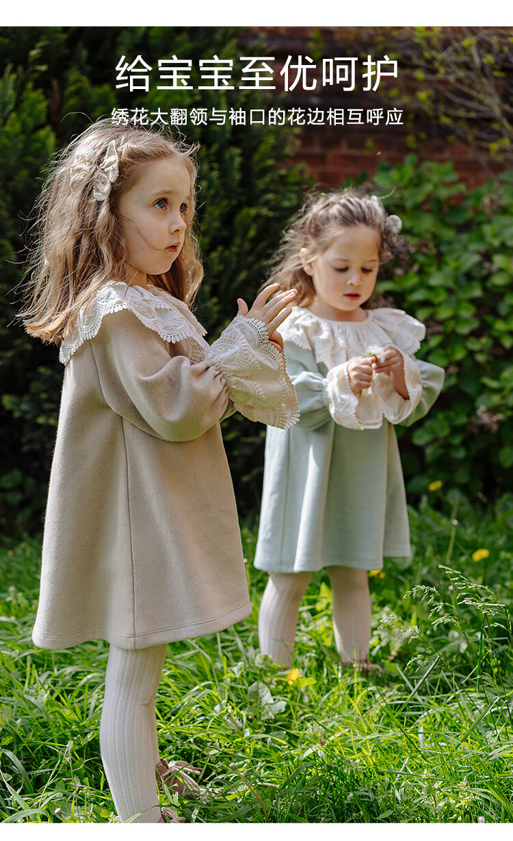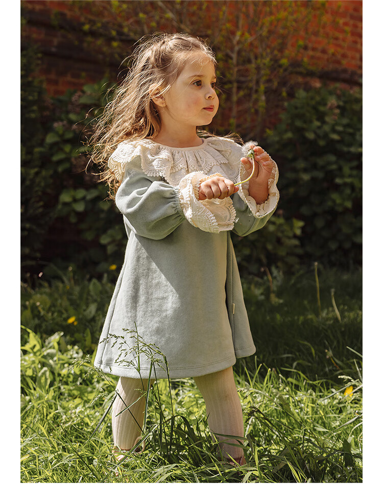 Happyology British children's spring and autumn embroidered skirt knitted large lapel girls' children's clothing dress