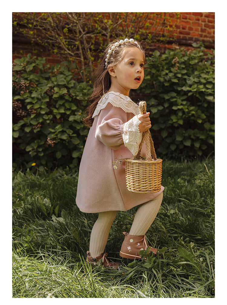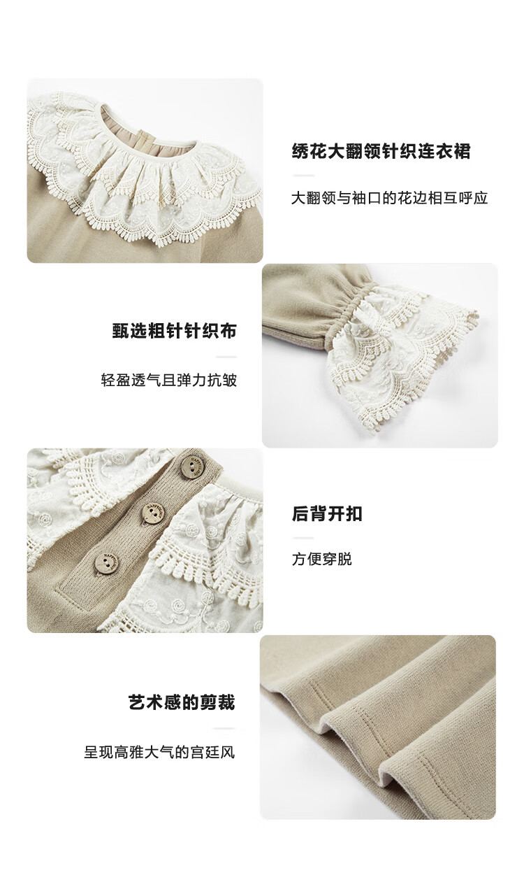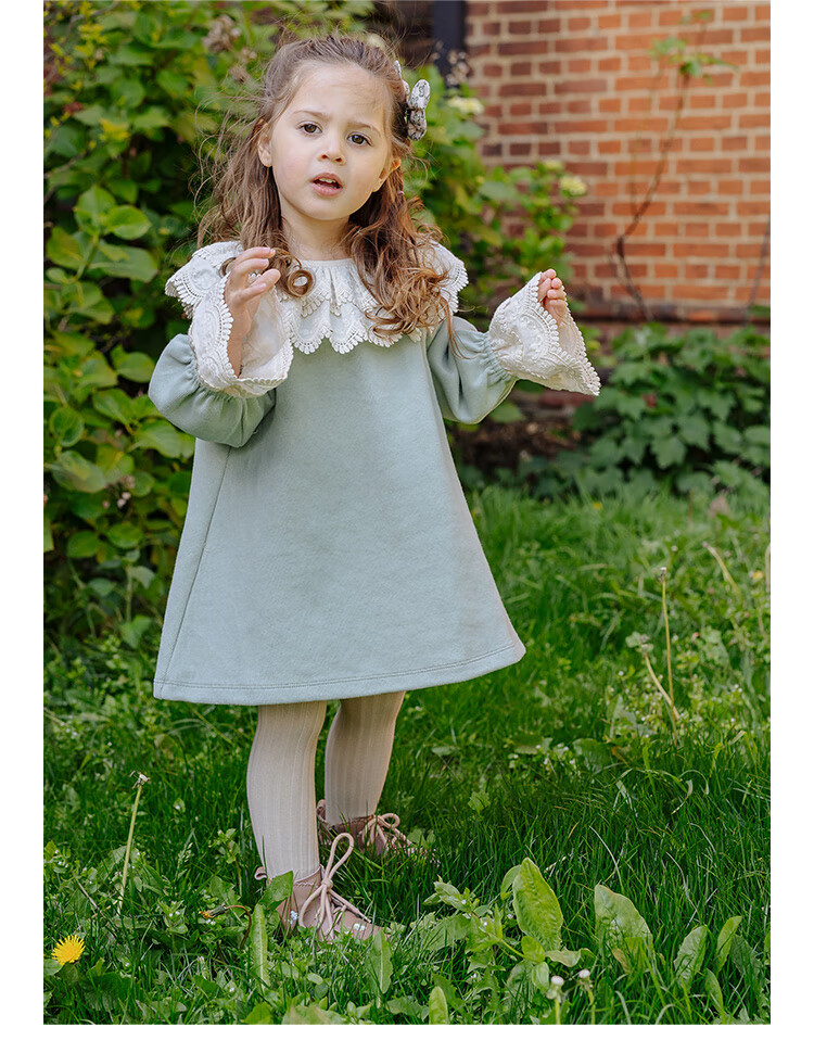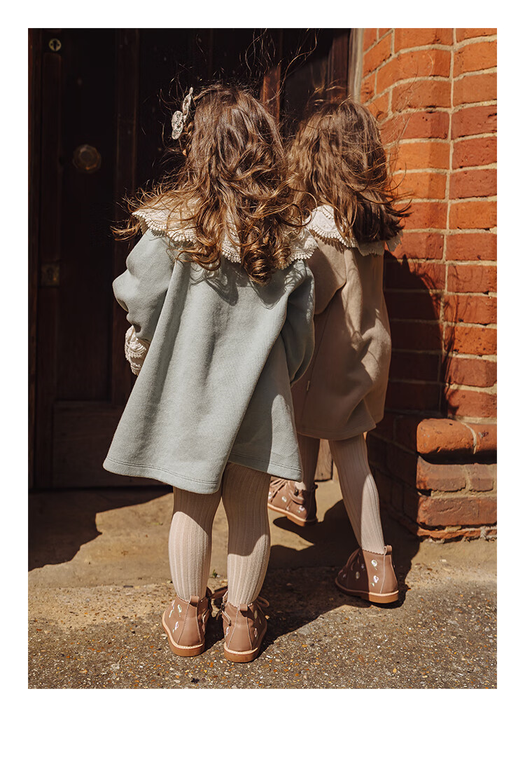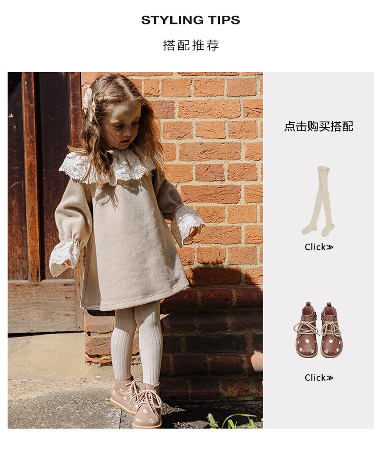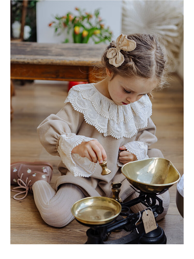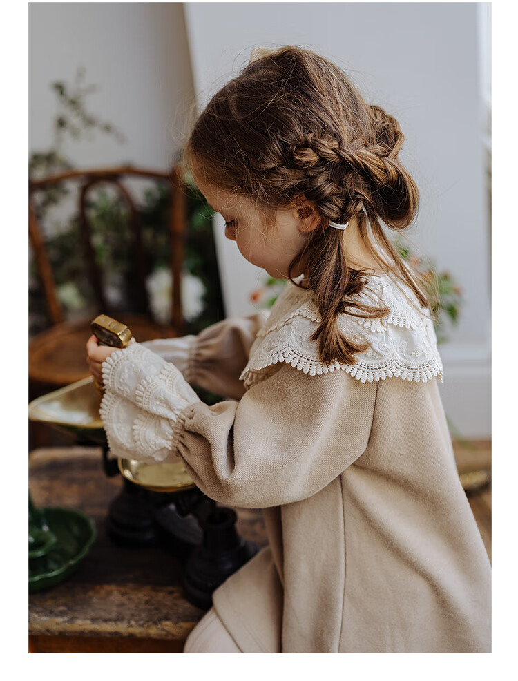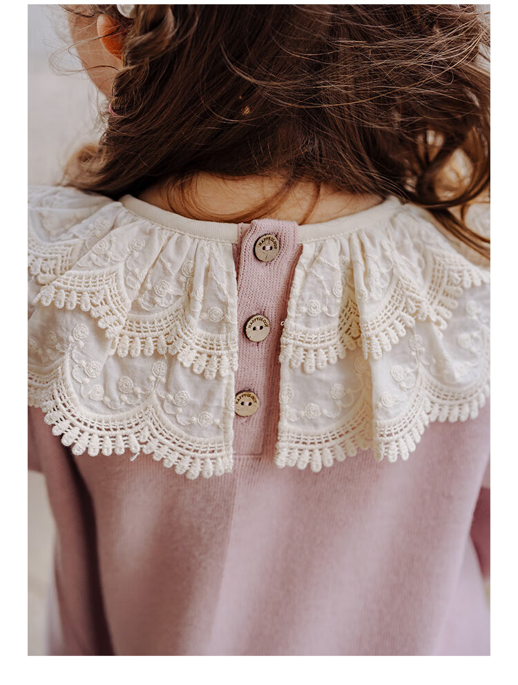 Happyology British children's spring and autumn embroidered skirt knitted large lapel girls' children's clothing dress