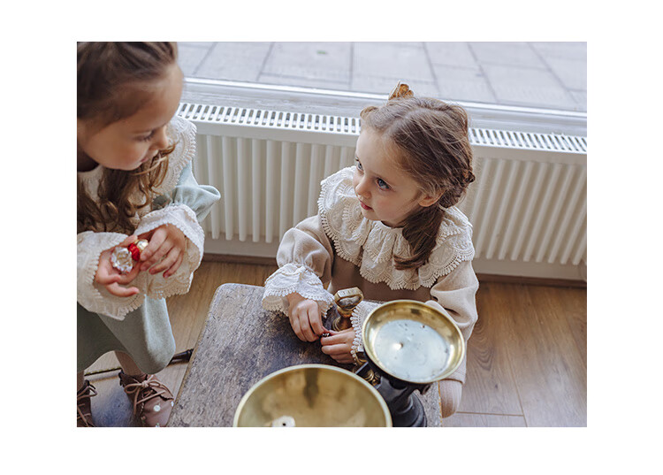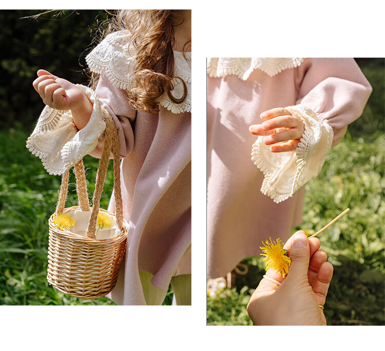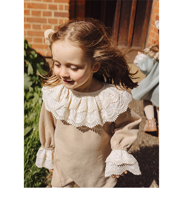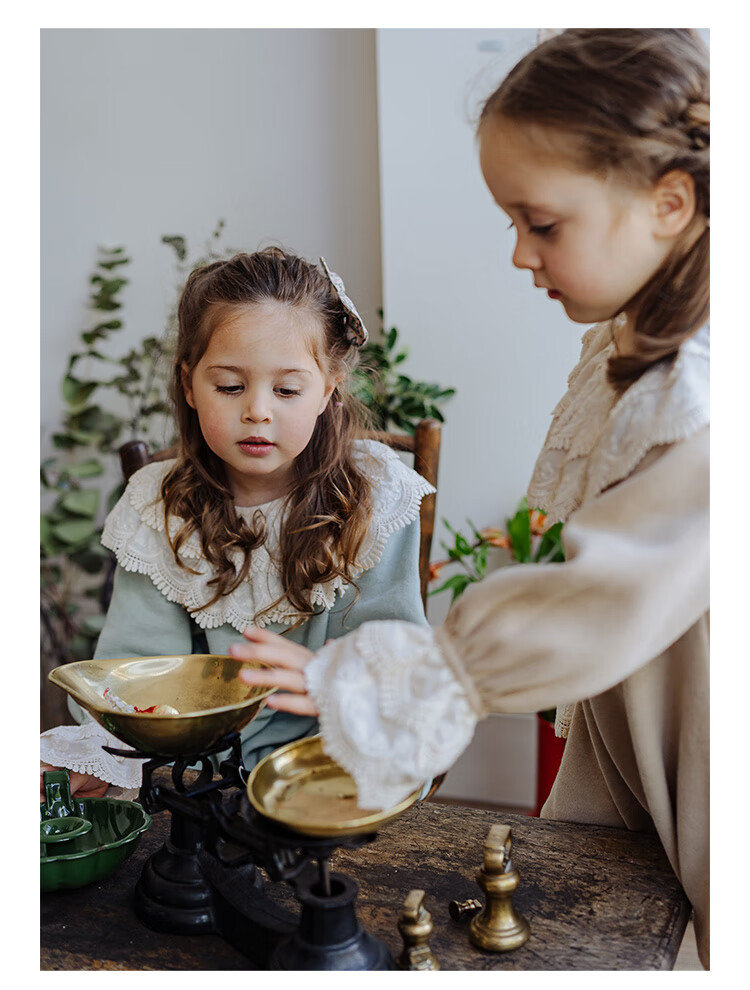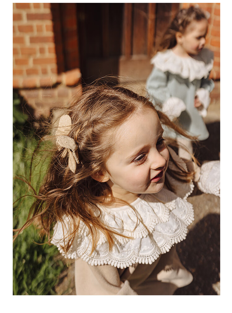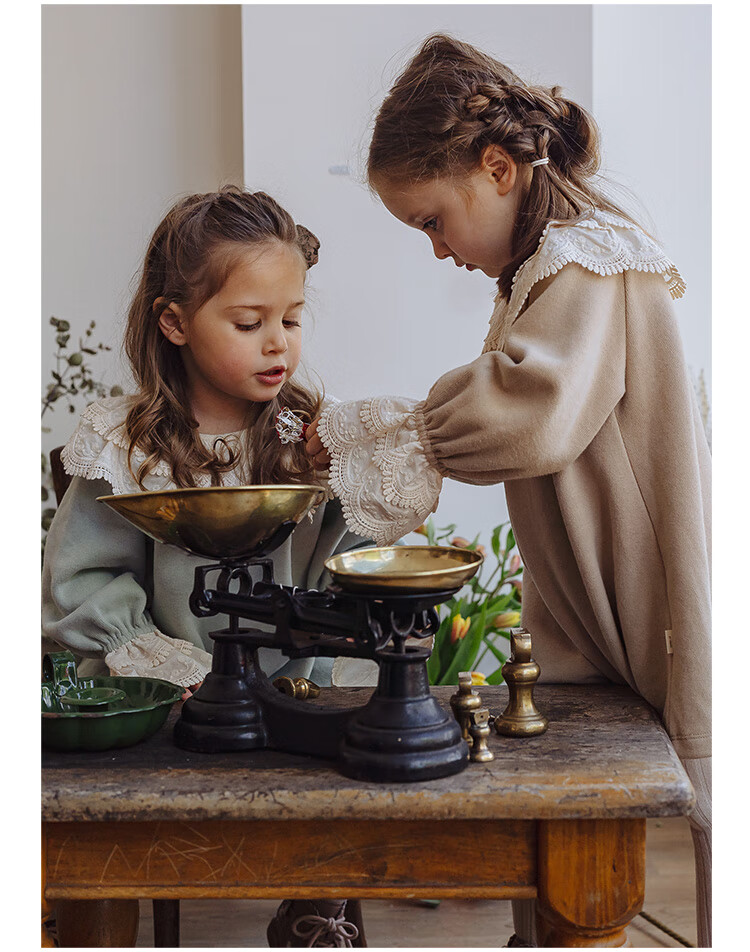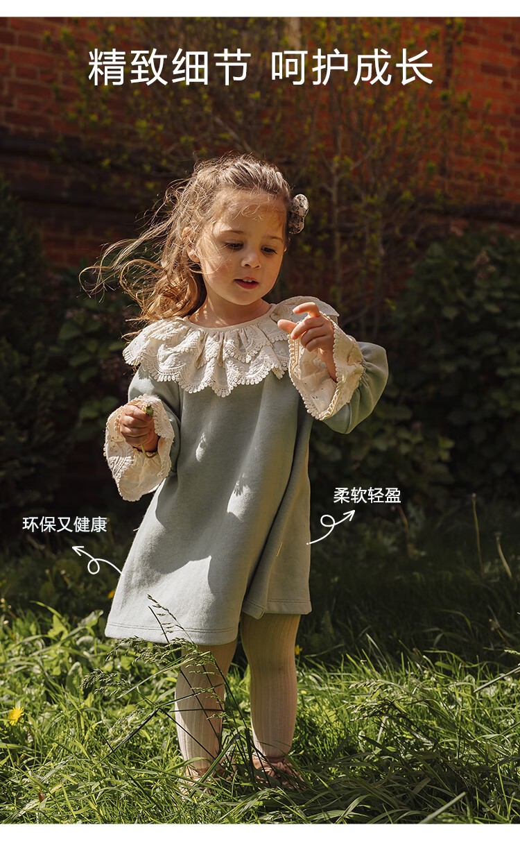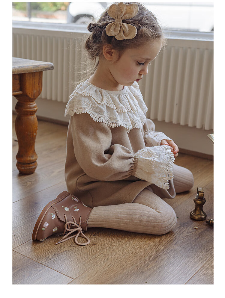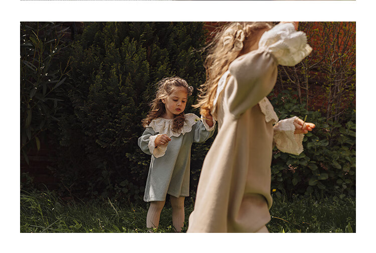 Happyology British children's spring and autumn embroidered skirt knitted large lapel girls' children's clothing dress