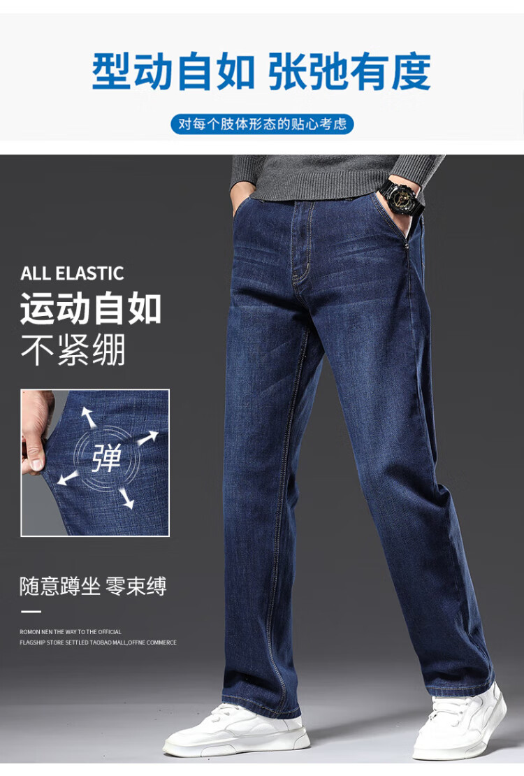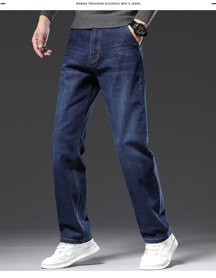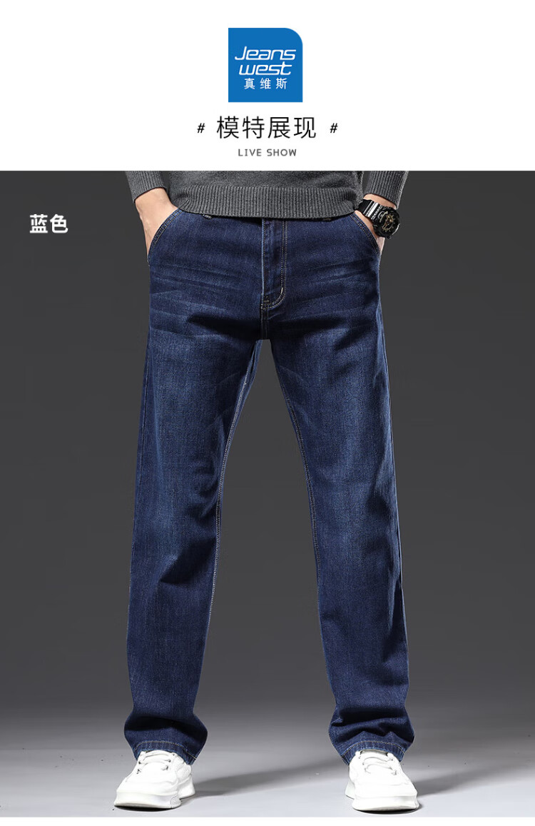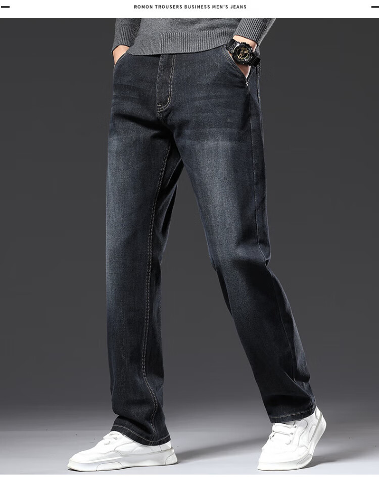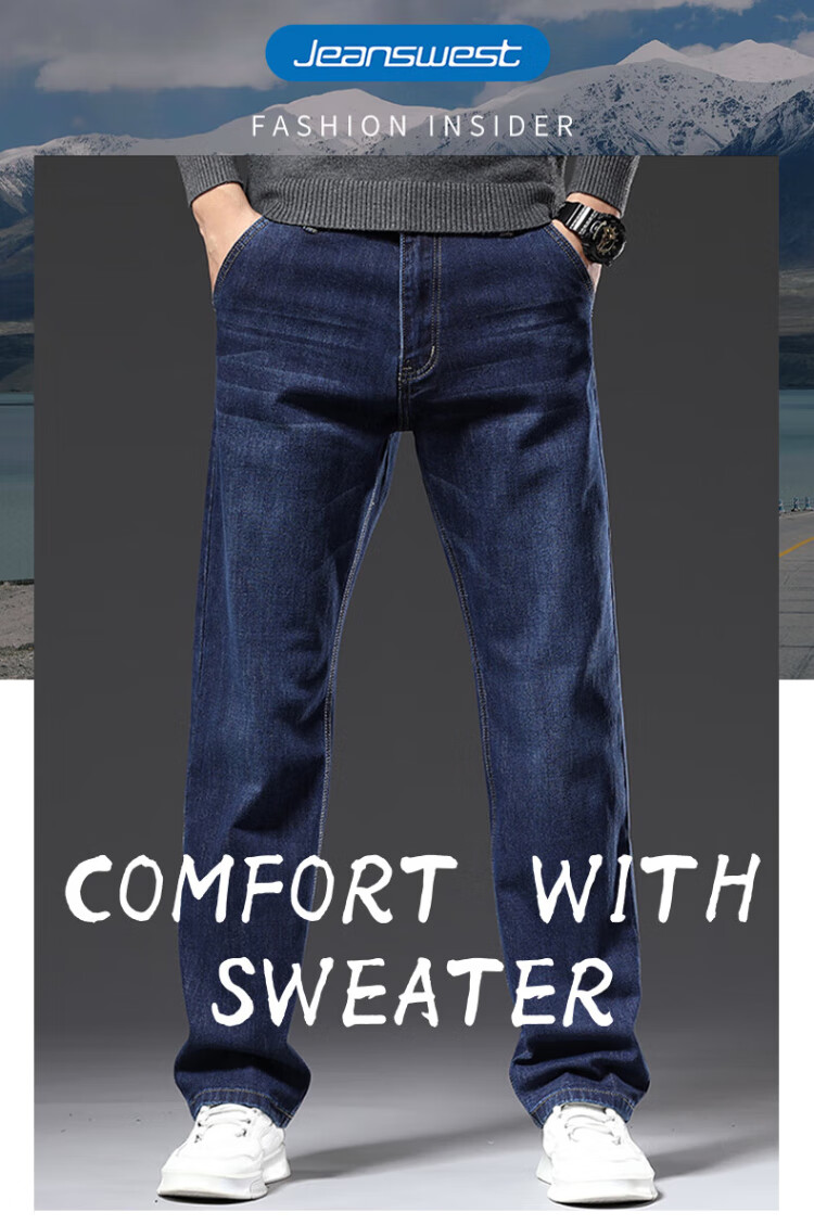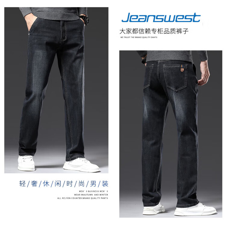 JEANSWEST Jeans Men's 2025 Winter Business Loose Straight Velvet Warm Pants Men's Black Velvet 36