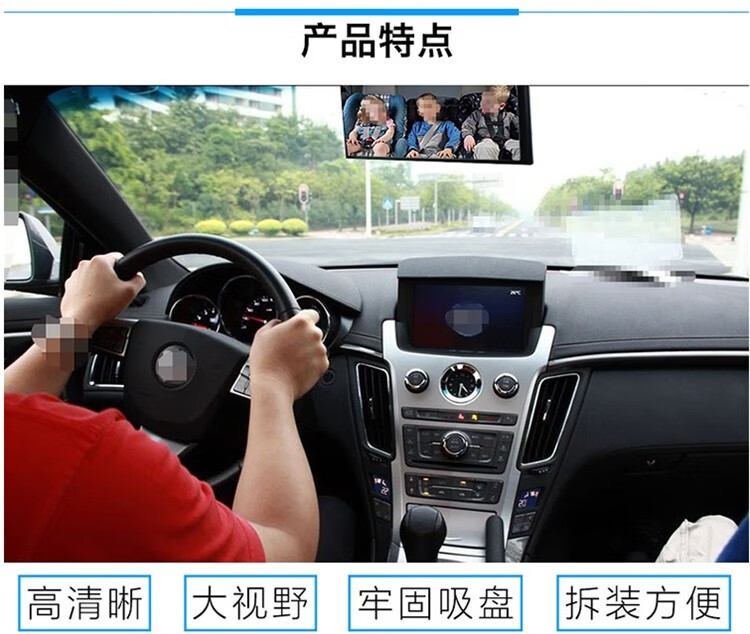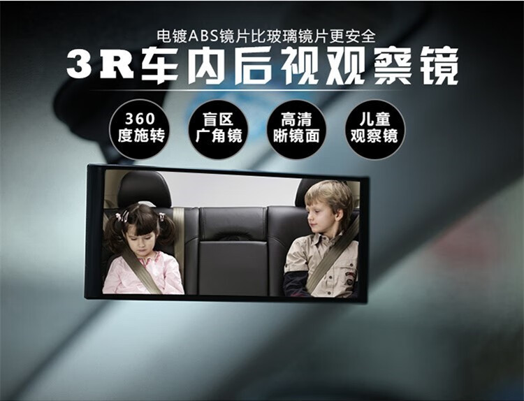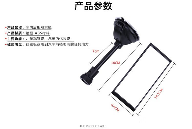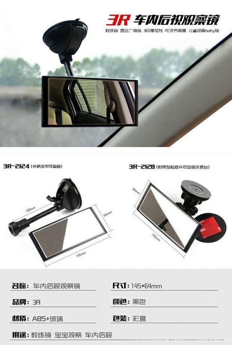 Jelle 3R car interior rearview mirror, children's observation mirror, baby car rearview mirror, auxiliary reflective suction cup mirror, suction cup wide-angle plane mirror, coach car indoor auxiliary rearview mirror 3R-2124 (long handle bracket, press to fix)