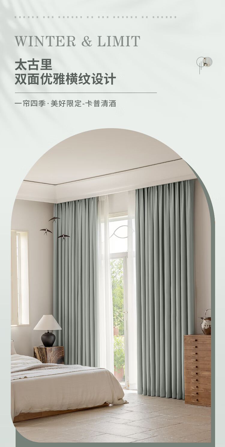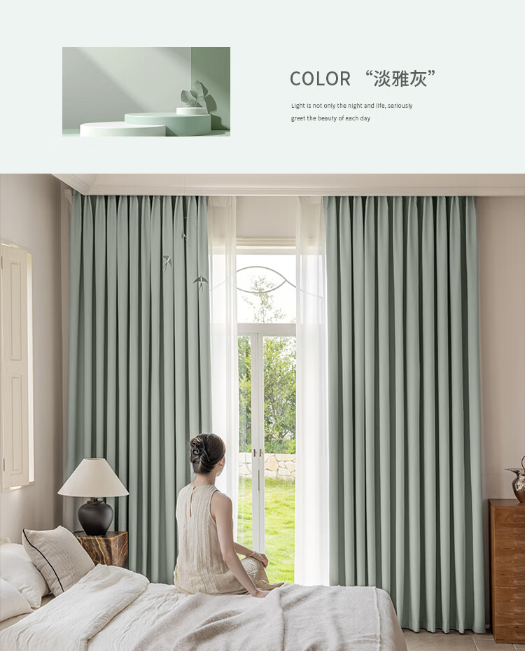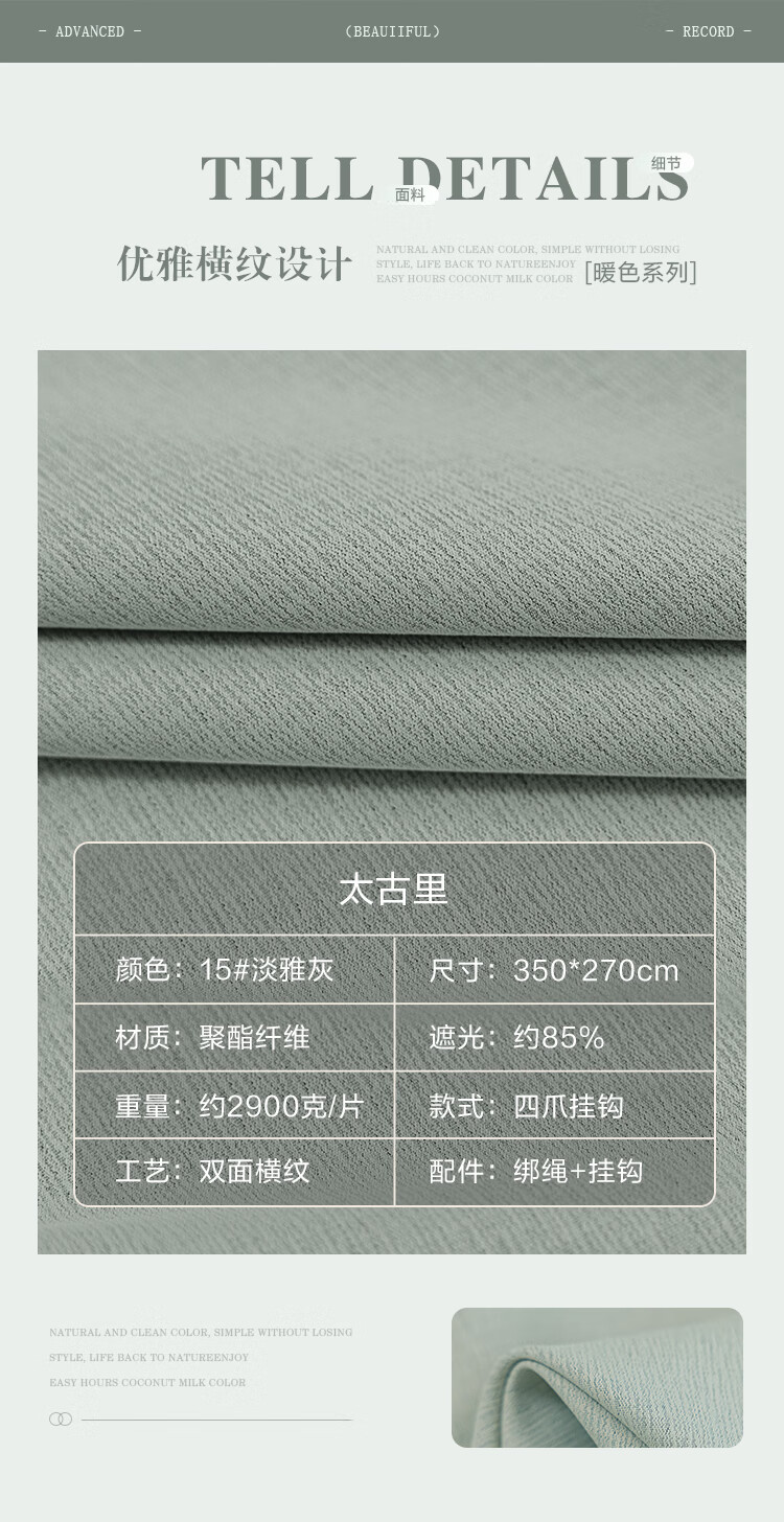 Jueming Elegant Textured Thickened Bedroom Blackout Curtains Taikoo Li 15# Elegant Gray 3.5 wide * 2.7 high 1 piece hook type