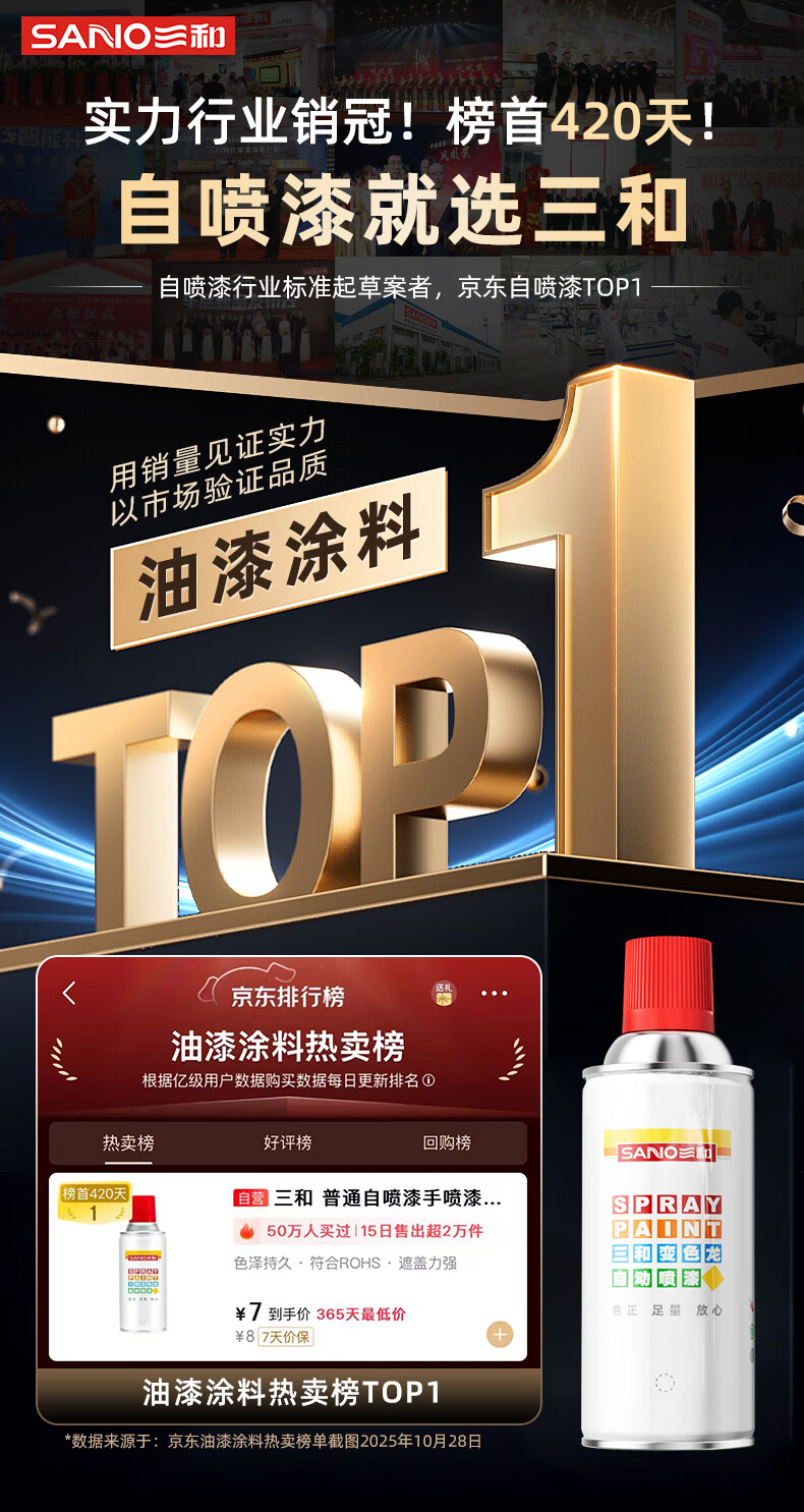 Sanhe (SANO) ordinary self-painting hand spray paint industrial anti-corrosion paint metal anti-rust paint car wheel color change scratch repair automatic spray paint 350ML ivory white