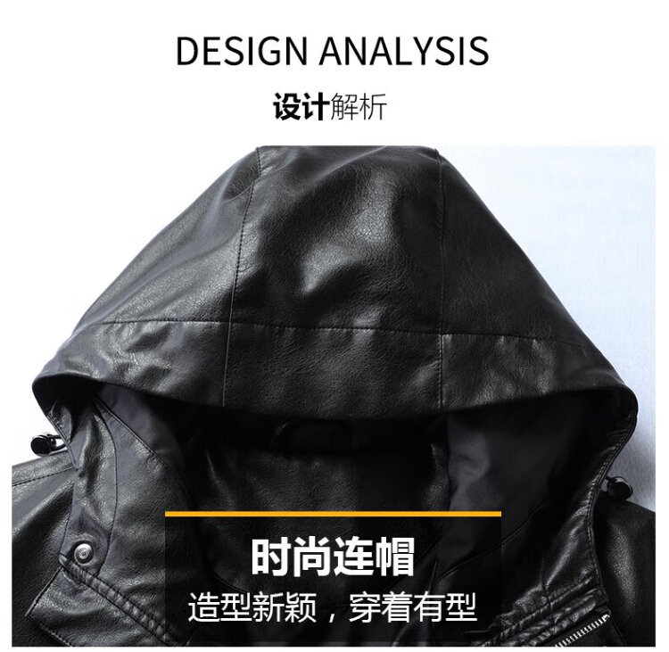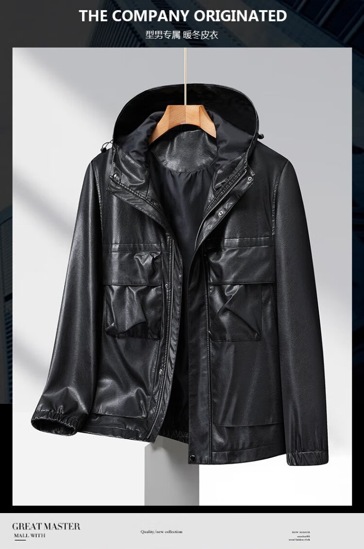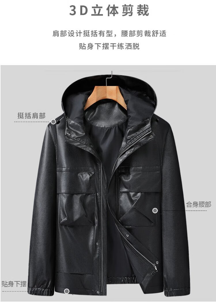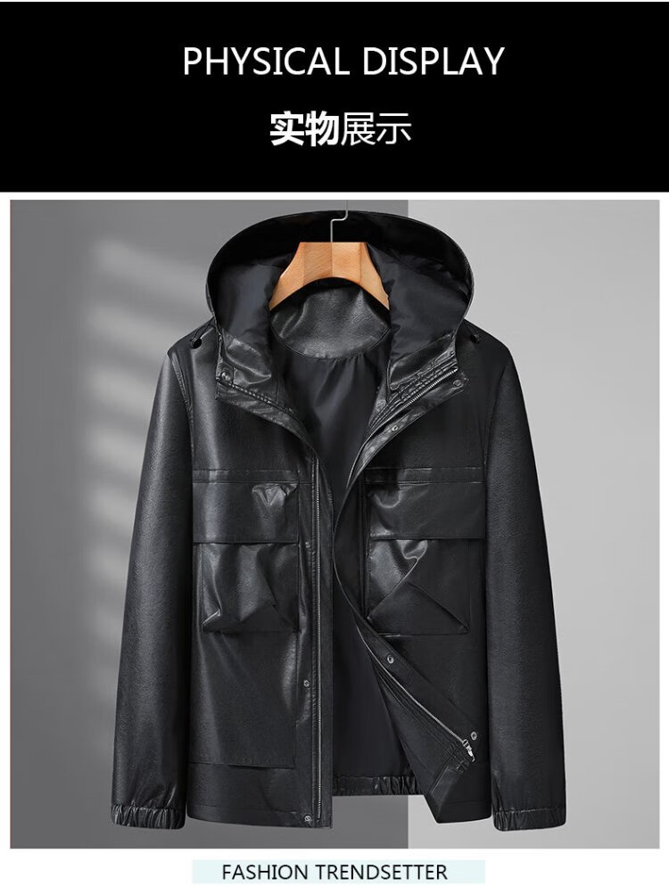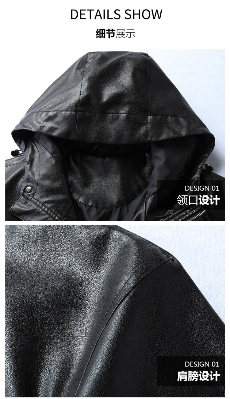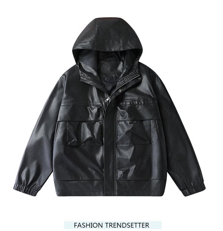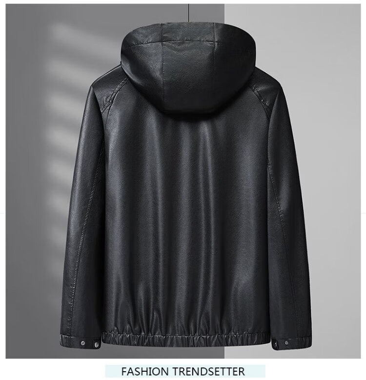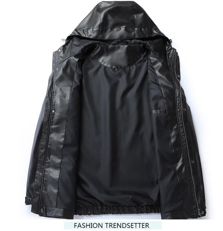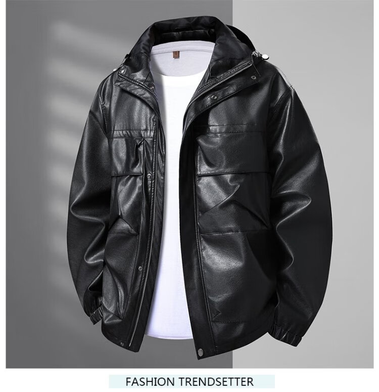 Dibinze plus size men's casual hooded leather jacket autumn fat man loose fashionable leather jacket black 5XL