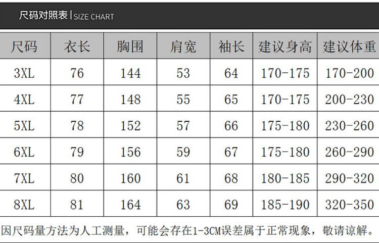 China (cm) 165 / 88-90 170 / 96-98 175 / 108-110 180 / 118-122 185 / 126-130