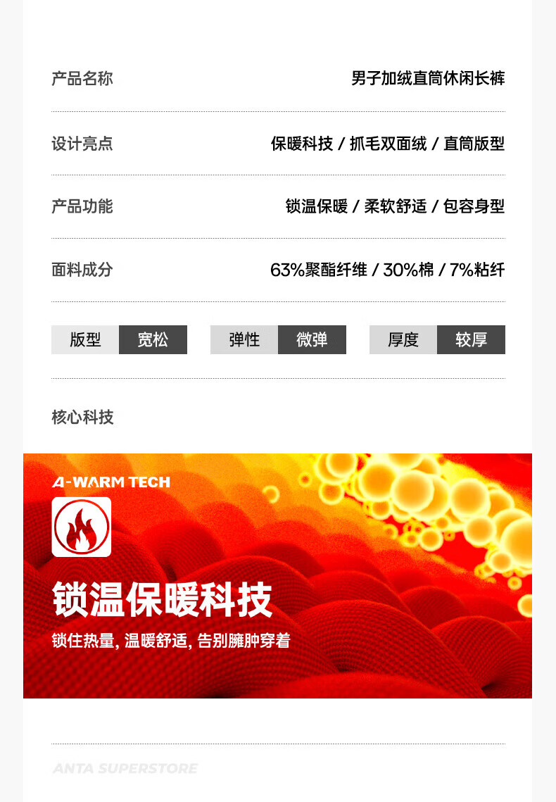 Super Anta velvet sweatpants men's autumn and winter warm and comfortable loose flat casual long pants men 152548306U